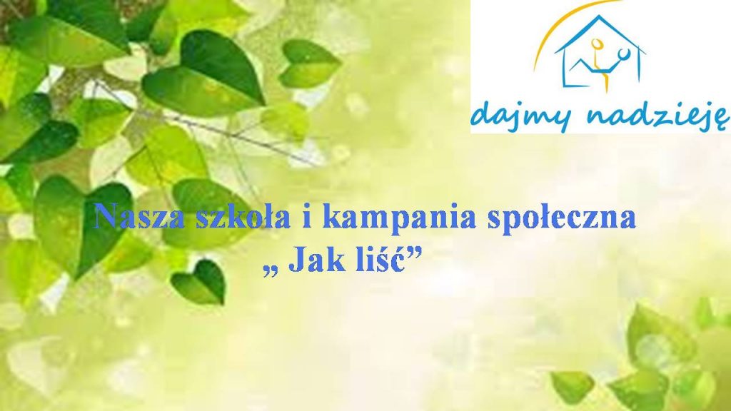 Zakończyliśmy akcję zatytułowaną „Jak Liść” prowadzoną w ramach kampanii „Motylowa Akademia” we współpracy z Kołem Żarskim Towarzystwa Pomocy Im. Św. Brata Alberta – Hospicjum a w szerszym kontekście z Fundacją Hospicyjną „Dajmy Nadzieję”. Dzięki działaniom wolontariuszy SKC zostało rozprowadzone 50 „Liści” , które są symbolem troski i ogromnej wrażliwości naszych uczniów, pracowników szkoły, nauczycieli i ofiarodawców.