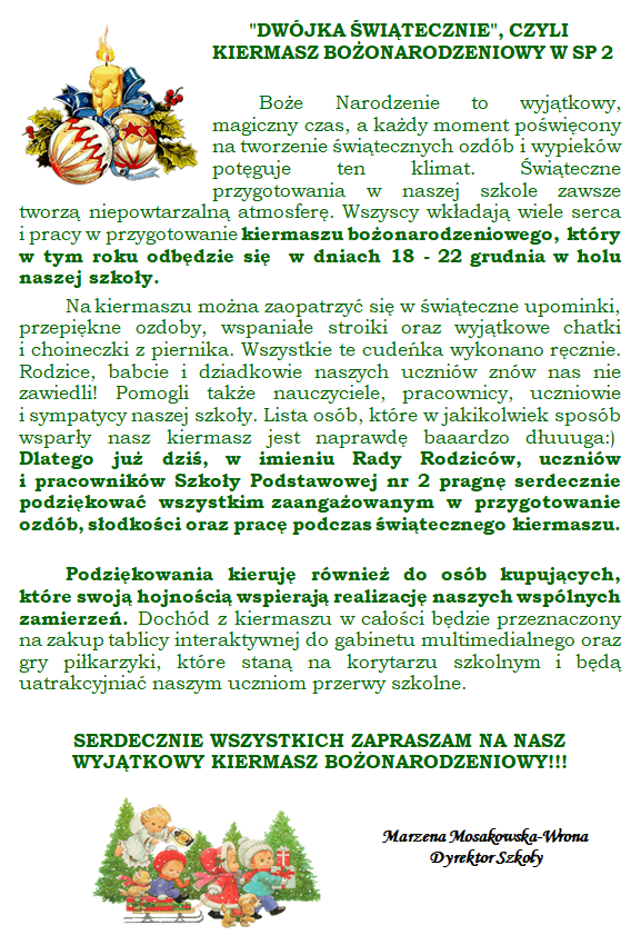Święta Bożego Narodzenia zbliżają się wielkimi krokami. W redakcji „Kuriera Dwójki” także świątecznie. Dziennikarze postanowili razem spędzić czas przy wigilijnym stole. Była to dobra okazja do złożenia sobie świątecznych życzeń, spożywania wspólnie przygotowanego poczęstunku oraz kolędowania przy dźwiękach muzyki.