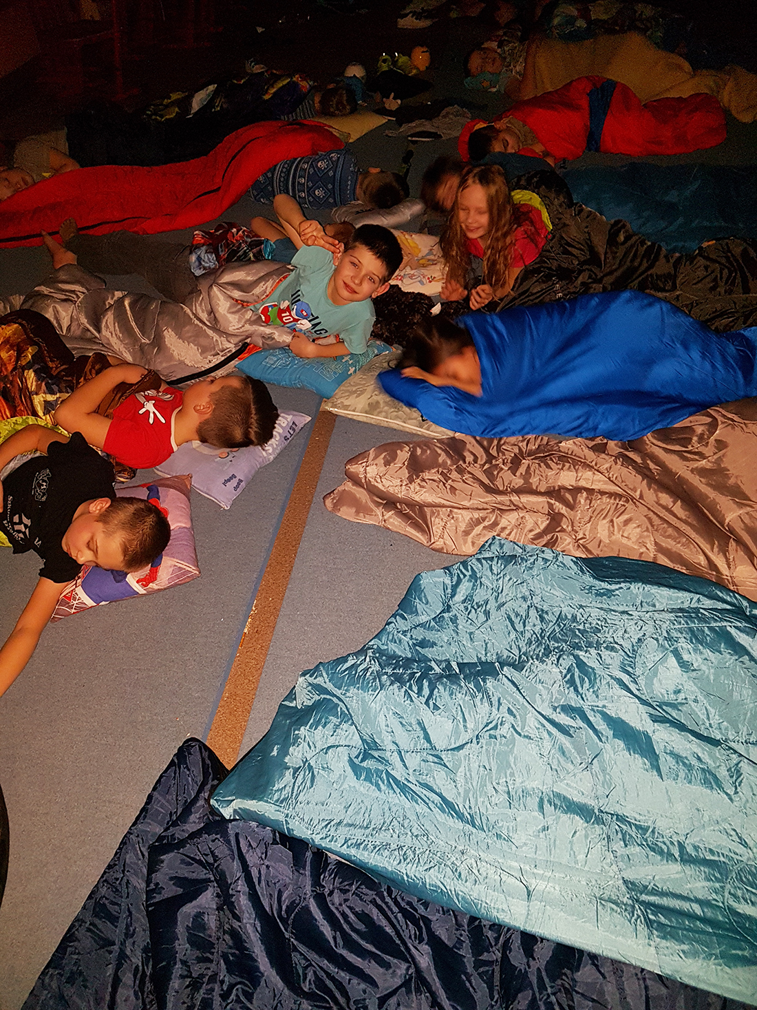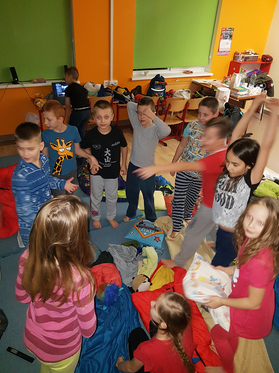 W piątek pierwszy raz w historii klasy 3a odbył się „biwak”na terenie szkoły. Uczniowie wraz z wychowawcą Moniką Sado i bibliotekarką Wiolettą Suchan miały cała szkołę dla siebie. Była pizza, kanapki, nocne czytanie, gry i zabawy, spacer z latarkami po szkole. Bawiliśmy się świetnie i już nie możemy doczekać się następnego nocowania.