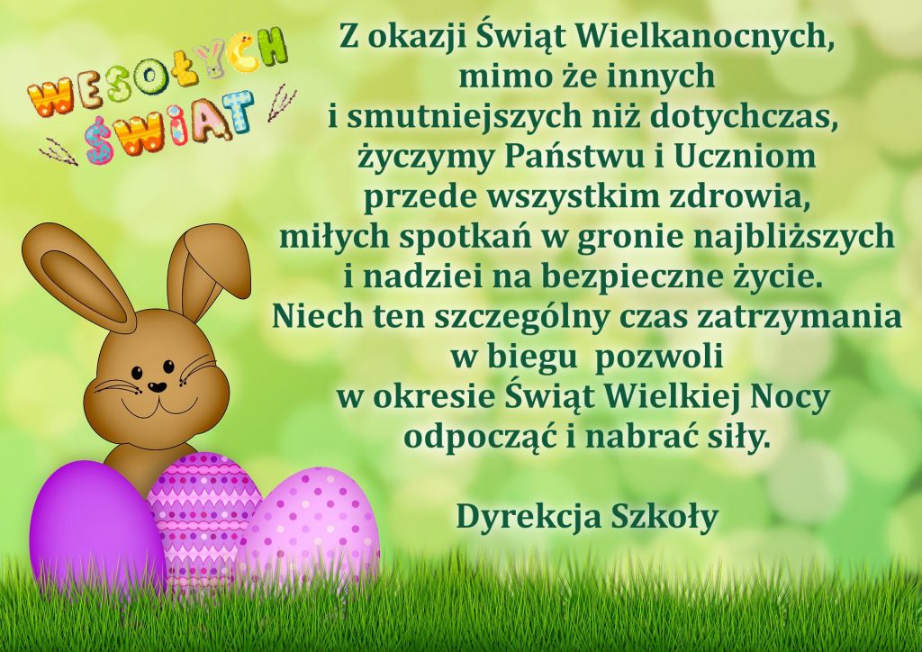 Przypominam, że zgodnie z przepisami w sprawie organizacji roku szkolnego i kalendarzem roku szkolnego 2019/2020 od 9 kwietnia 2020 r. do 14 kwietnia 2020 r. trwa wiosenna przerwa świąteczna, podczas której szkoła nie realizuje swoich zadań. Oznacza to, że w okresie wiosennej przerwy świątecznej nie będą realizowane zadania z wykorzystaniem metod i technik kształcenia na odległość.