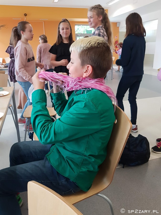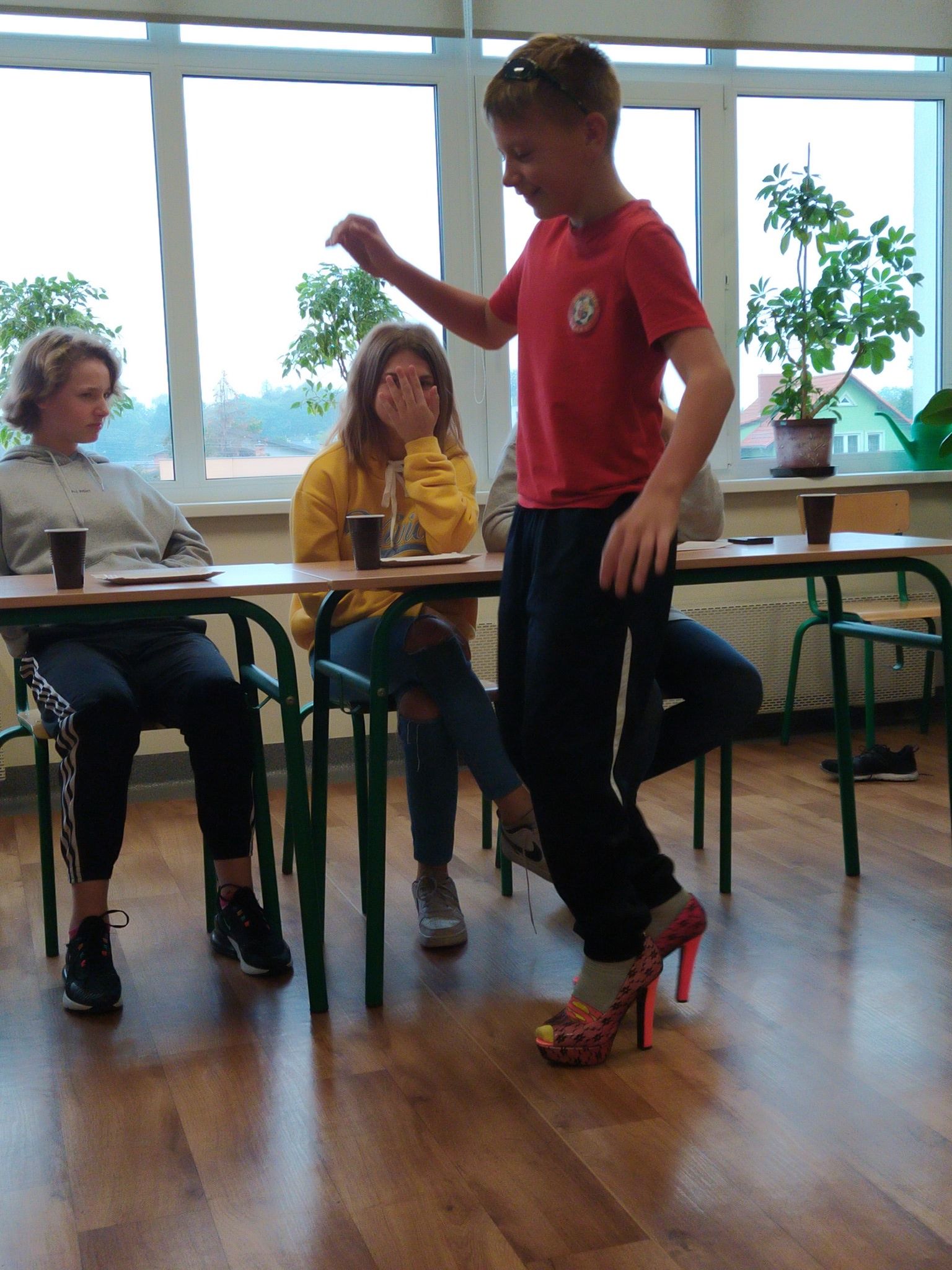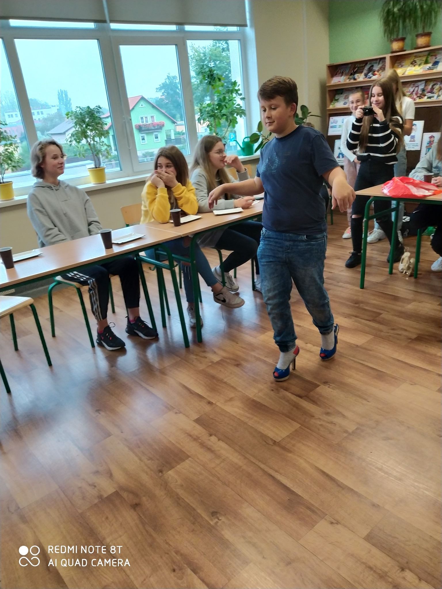 Tradycyjnie 30 września obchodzimy Dzień Chłopaka. W ten dzień dziewczęta z klasy VII a zgotowały nie lada niespodziankę swoim chłopakom przygotowując im wiele atrakcji. Śmiechu było co niemiara. Najpierw panowie musieli zmierzyć się z konkurencją „Zgadnij co to takiego?” i nie było to takie proste. Następnie przedstawiciele zespołów zaprezentowali się na wybiegu w butach na wysokich obcasach. Oj co się działo! Boki można było zrywać, ale przyznać należy, że chłopaki świetnie poradzili sobie z tym wyzwaniem i z gracją zaprezentowali się jury. Kolejną niespodzianką były wyzwania ukryte w balonach. Trzeba było m.in. zaśpiewać , ułożyć rymowankę, przytulić dziewczynę czy przyznać się w kim było się zakochanym. Były też tańce w wykonaniu chłopaków. Dziewczęta zadbały również o urodę swoich kolegów i zafundowały im darmowe maseczki pielęgnacyjne , które musieli nałożyć na twarz. Po takich emocjach trzeba było się nieco posilić pizzą z „De Facto”. Na koniec podsumowano wyniki rywalizacji i ogłoszono zwycięską drużynę w składzie: Dominik Szewc, Adrian Boguszewski i Wiktor Japin. Wszyscy chłopcy otrzymali upominki.