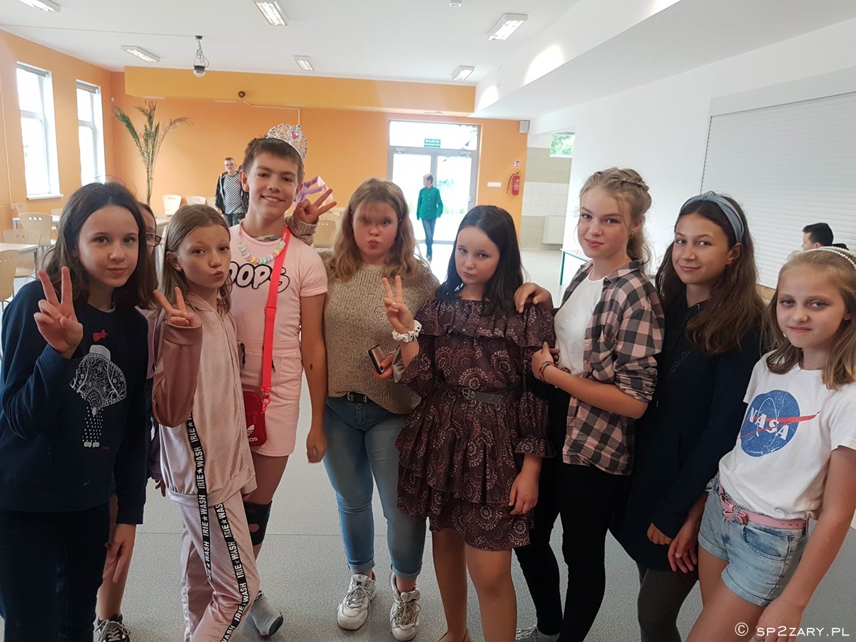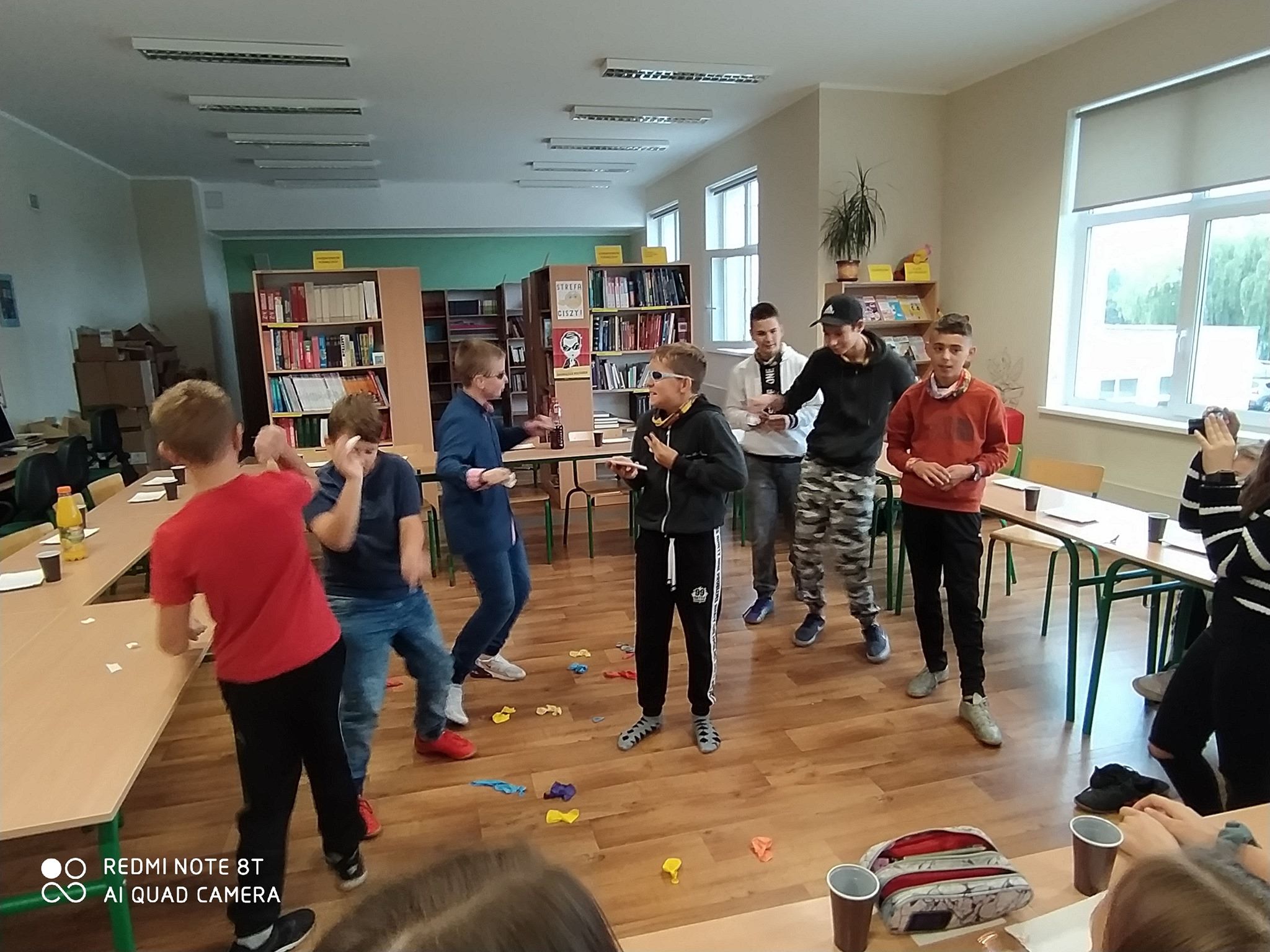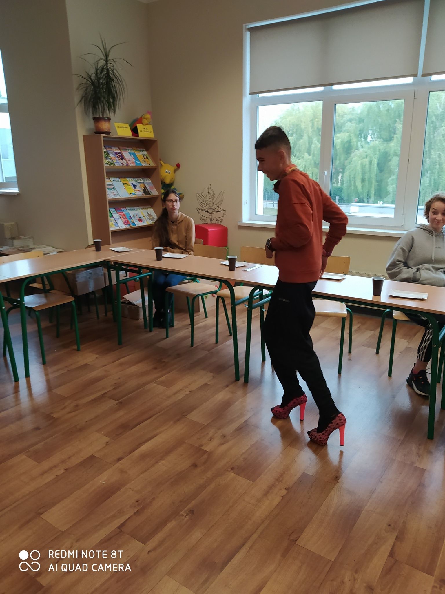 Tradycyjnie 30 września obchodzimy Dzień Chłopaka. W ten dzień dziewczęta z klasy VII a zgotowały nie lada niespodziankę swoim chłopakom przygotowując im wiele atrakcji. Śmiechu było co niemiara. Najpierw panowie musieli zmierzyć się z konkurencją „Zgadnij co to takiego?” i nie było to takie proste. Następnie przedstawiciele zespołów zaprezentowali się na wybiegu w butach na wysokich obcasach. Oj co się działo! Boki można było zrywać, ale przyznać należy, że chłopaki świetnie poradzili sobie z tym wyzwaniem i z gracją zaprezentowali się jury. Kolejną niespodzianką były wyzwania ukryte w balonach. Trzeba było m.in. zaśpiewać , ułożyć rymowankę, przytulić dziewczynę czy przyznać się w kim było się zakochanym. Były też tańce w wykonaniu chłopaków. Dziewczęta zadbały również o urodę swoich kolegów i zafundowały im darmowe maseczki pielęgnacyjne , które musieli nałożyć na twarz. Po takich emocjach trzeba było się nieco posilić pizzą z „De Facto”. Na koniec podsumowano wyniki rywalizacji i ogłoszono zwycięską drużynę w składzie: Dominik Szewc, Adrian Boguszewski i Wiktor Japin. Wszyscy chłopcy otrzymali upominki.