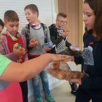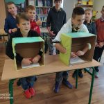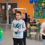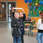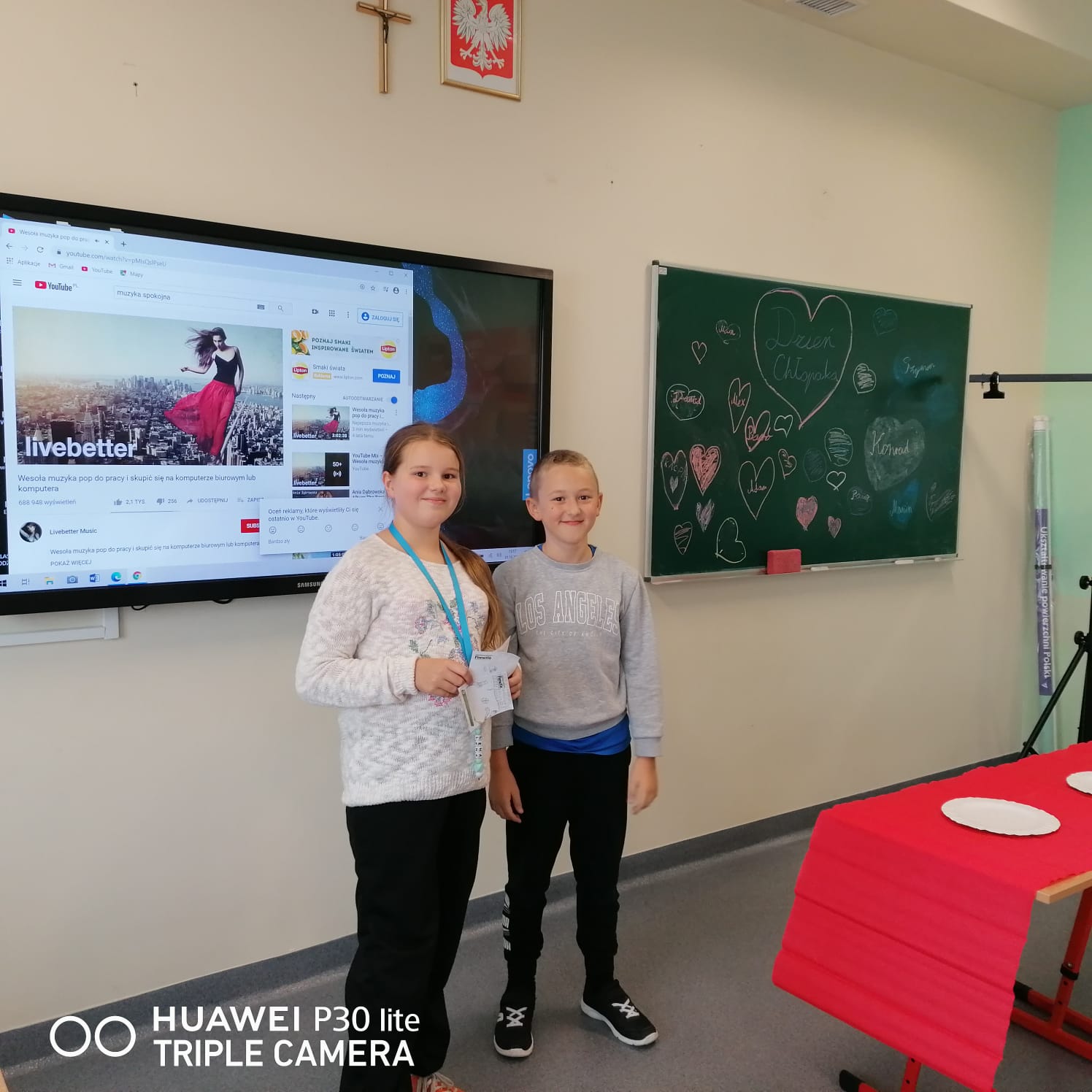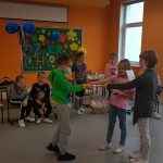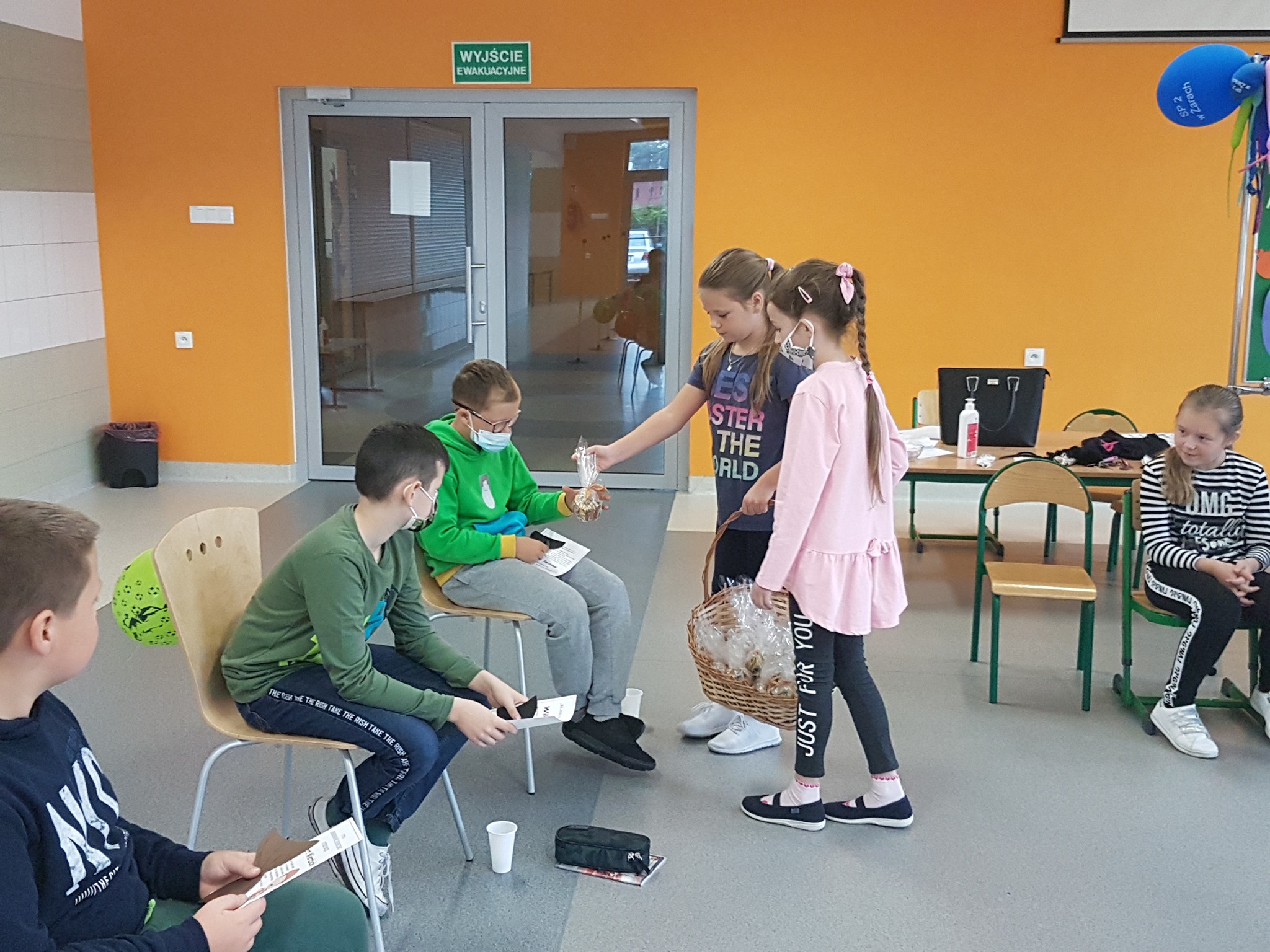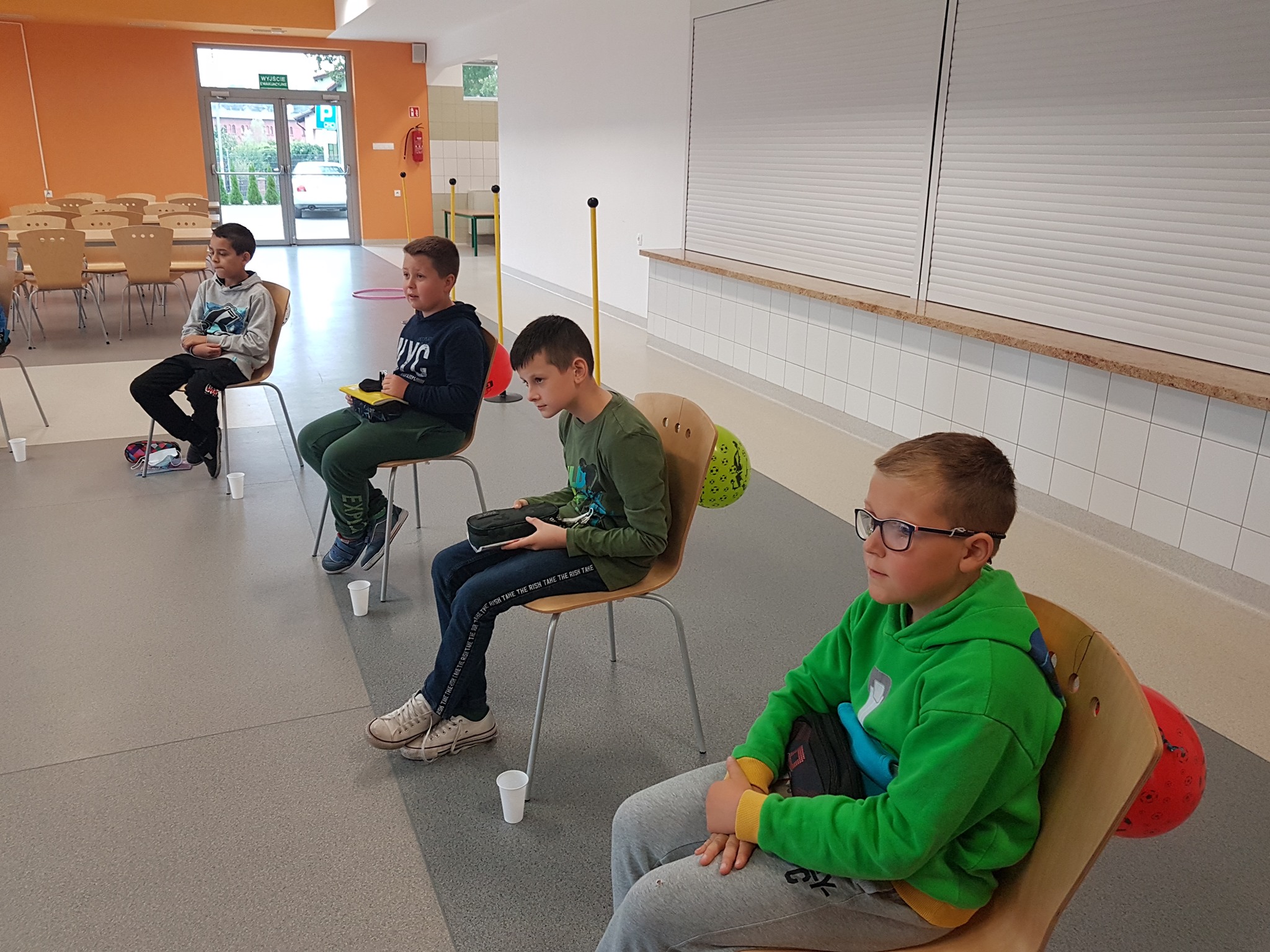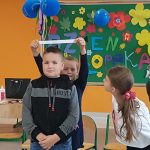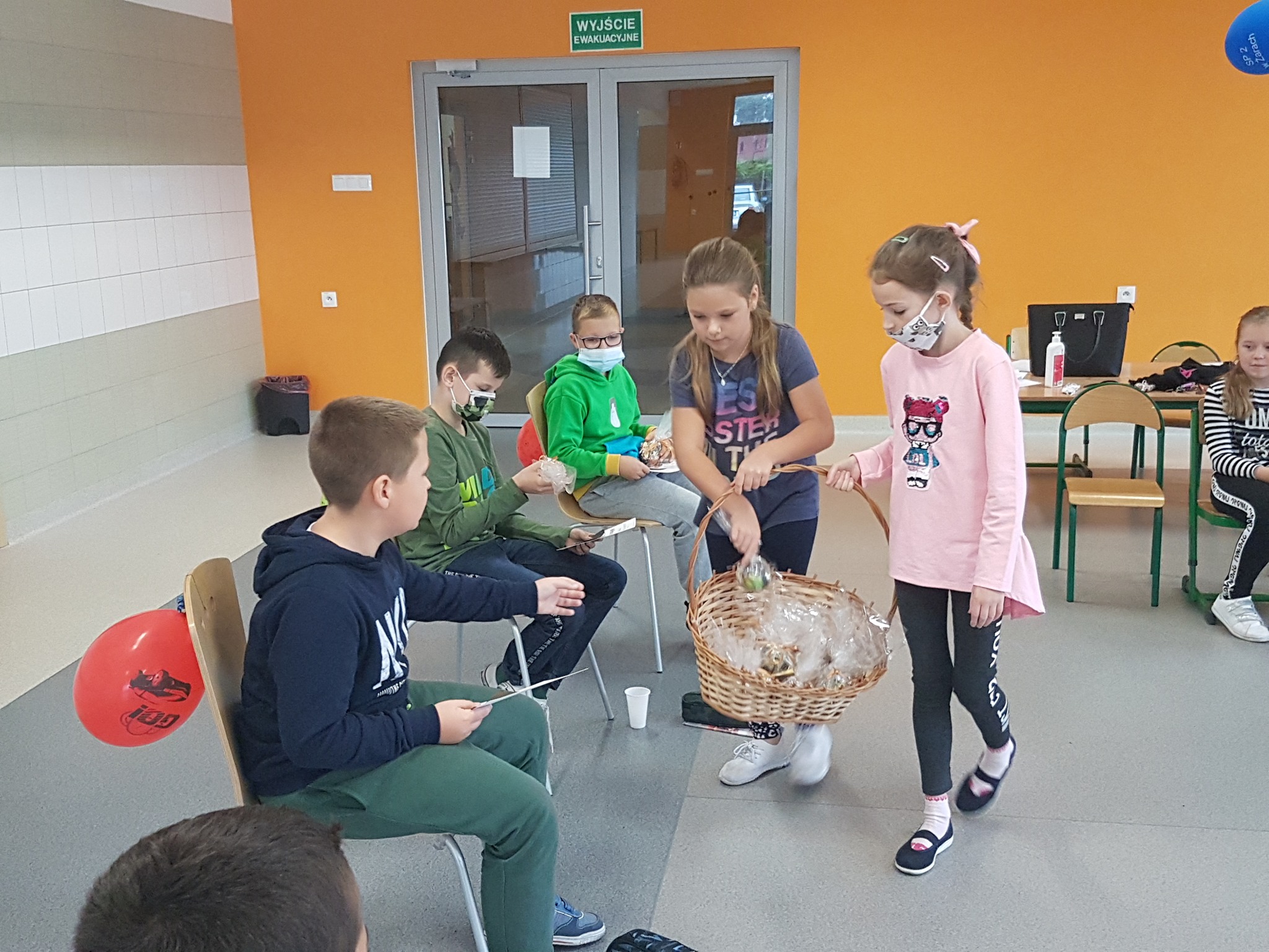 30 września chłopcy z 4b obchodzili swoje święto. Dziewczyny przygotowały swoim kolegom wspaniałą niespodziankę. Stołówka zamieniła się w salę zabaw. Impreza odbywała się pod hasłem: „Dżentelmen z klasą”. Chłopcy przeszli szereg ciekawych konkurencji, w których musieli wykazać się sprytem, wiedzą i pomysłowością. Pierwszą z nich były kalambury pt. „Znam te tytuły”, z którą świętujący poradzili sobie bez problemu. W kolejnej pod hasłem: „Bystre oko” musieli puścić wodze wyobraźni i wykorzystać swoje plastyczne umiejętności, by stworzyć portrety klasowych koleżanek. Dziewczyny z łatwością rozpoznały się na arcydziełach malarskich. Jak na czwartoklasistę przystało, każdy musi opanować umiejętności matematyczne, a te łatwo można było sprawdzić na fasolkach, które uczniowie policzyli błyskawicznie. Zadanie pod hasłem „Znawca aut” wymagało od chłopców skupienia, ponieważ sprawdzało ich wiedzę na temat marek samochodów. Rozpoznanie jak największej liczby emblematów marek samochodowych to nie lada zadanie. Tylko nielicznym się to udało. W konkurencji „Sportowiec na medal” chłopcy musieli przemierzyć przygotowany tor przeszkód. Marsz z książką na głowie, przysiady, pompki – jednym słowem gimnastyka na całego. Wszyscy byli dzielni i wytrwali. Wiele emocji wywołała zabawa „Zgadnij, kto to!”, gdzie uczestnik musiał odgadnąć imię koleżanki z klasy, o której wypowiadali się pozostali. Dziewczyny miały okazję dowiedzieć się o swoich zaletach, a było ich sporo. Na zakończenie chłopcy otrzymali upominki i słodkości. Dziewczyny uhonorowały ich także zabawnymi tytułami. „Historyczny umysł”, „Zawsze uśmiechnięty”, „Chłopak z poczuciem humoru”, „Klasowy przystojniak”, „Mistrz liczydła”, „Klasowy sportsman”, „Roztańczony Mister” – to tylko niektóre z nich. Śmiechu było co nie miara. Klasowa impreza była niezwykle udana, a humory tego dnia dopisywały wszystkim.