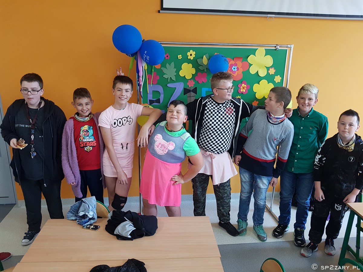 Dziewczęta z klasy VIC stanęły na wysokości zadania i zaplanowały obchody, które na pewno na długo pozostaną w pamięci chłopców z VIC. Nie mogło zabraknąć pizzy, życzeń i drobnych upominków w postaci słodkiego co nieco. Zabawa była przednia, biorąc pod uwagę hallenge dot. przymierzenia sukienek i oddania się w ręce klasowej makijażystce. Okazało się, że chłopcy mają ogromne poczucie humoru i oddawali się w ręce klasowych koleżanek.