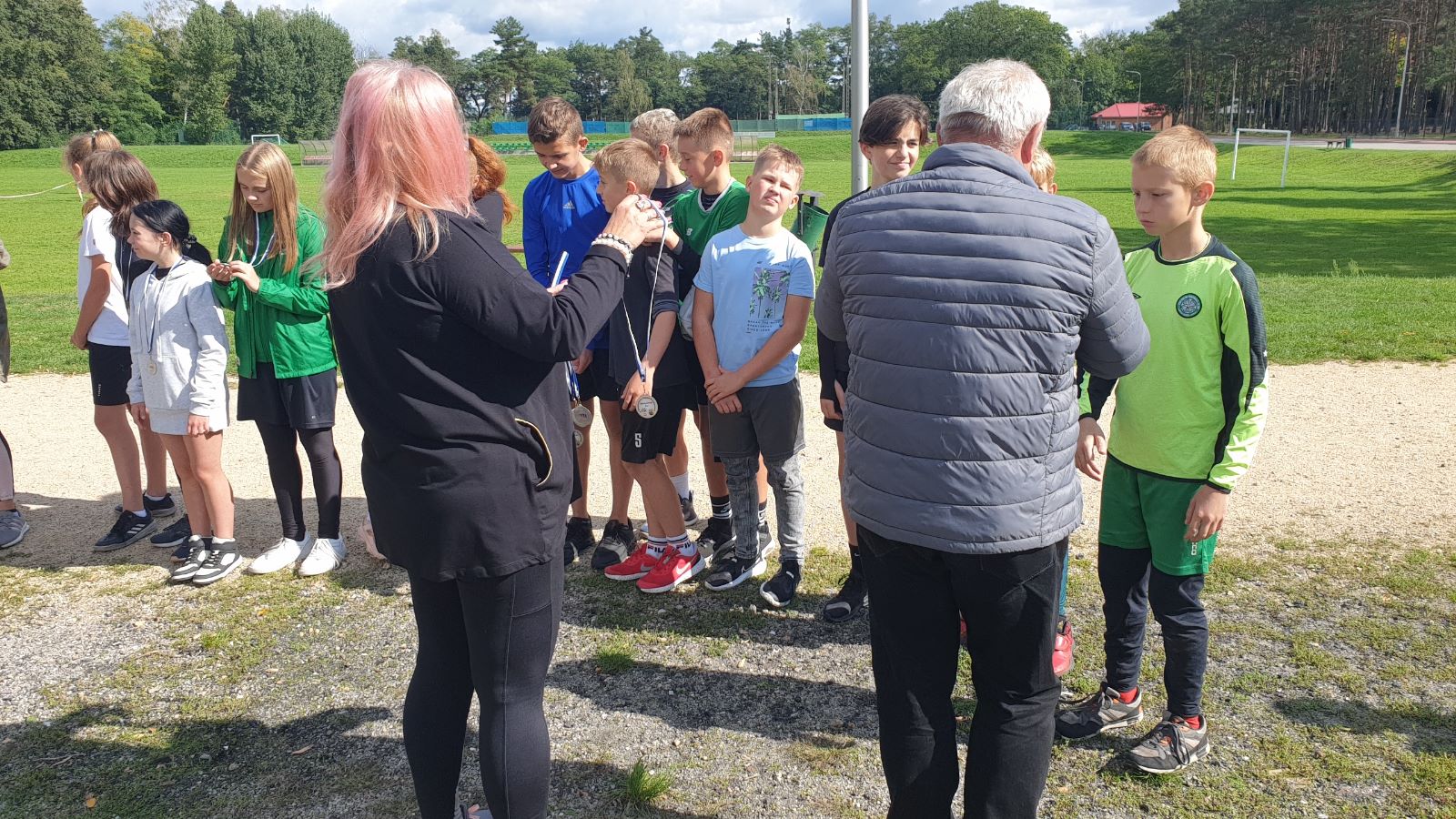 Bardzo udany start w zawodach sportowych odnotowali uczniowie naszej szkoły, którzy wzięli udział w Sztafetowych Biegach Przełajowych w kategorii dzieci starszych. Nasze reprezentacje, zarówno chłopców i dziewcząt zajęły 2 miejsca zdobywając srebrne medale i uzyskały prawo startu w zawodach powiatowych, które odbędą się w najbliższy czwartek w Lipinkach Łużyckich.