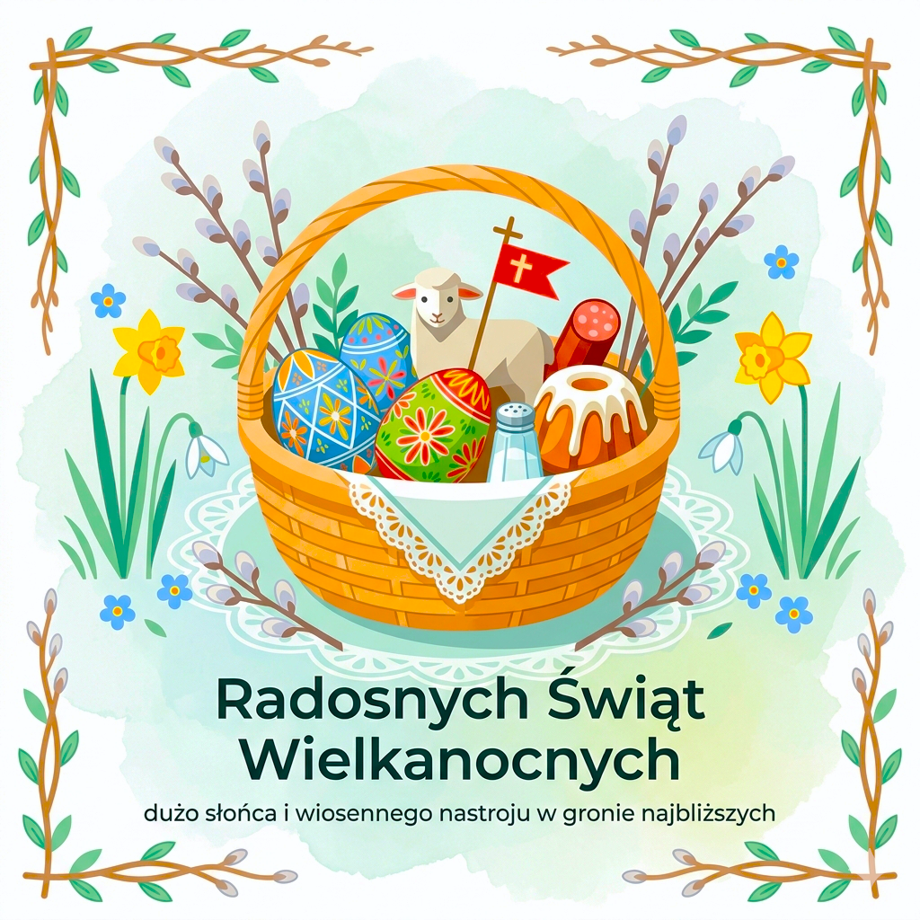 Z okazji zbliżających się Świąt Wielkanocnych życzymy wszystkim wiosennego optymizmu, rodzinnego spokoju oraz pięknych chwil spędzonych z bliskimi przy świątecznym stole.