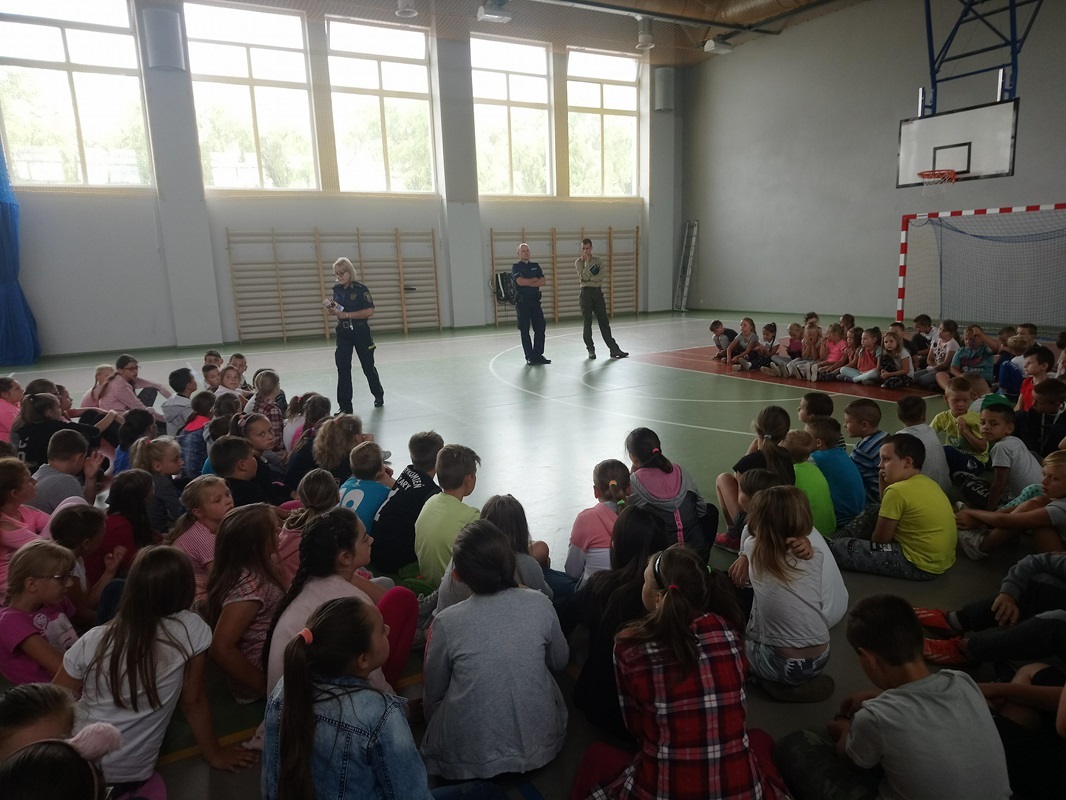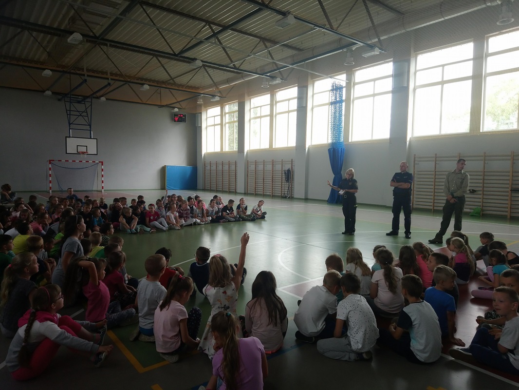 14 czerwca odbyło się spotkanie przedstawicieli Policji, Straży Miejskiej i Straż Leśnej z uczniami klas 1-4. Pogadanka dotyczyła bezpieczeństwa podczas zbliżających się wakacji.