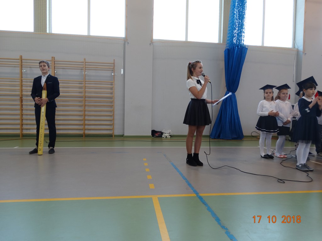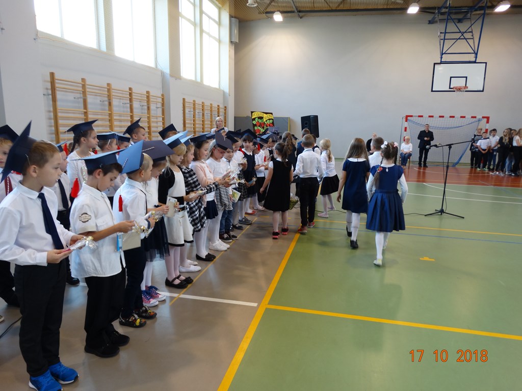 W środę 17.10. 2018 r. w Szkole Podstawowej Nr 2 w Żarach zebrała się cała społeczność szkolna oraz rodzice dzieci, aby wziąć udział w uroczystości pasowania nowych uczniów na pierwszoklasistów . Uczniowie zaśpiewali kilka piosenek oraz deklamowali krótkie – często wierszowane- przygotowane wcześniej wypowiedzi. Pani Dyrektor Marzena Mosakowska- Wrona serdecznie przywitała najmłodszych, a uczeń z ósmej klasy Albert Borek dokonał symbolicznego aktu pasowania.