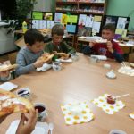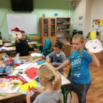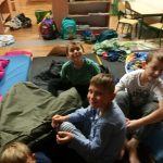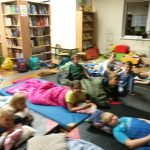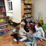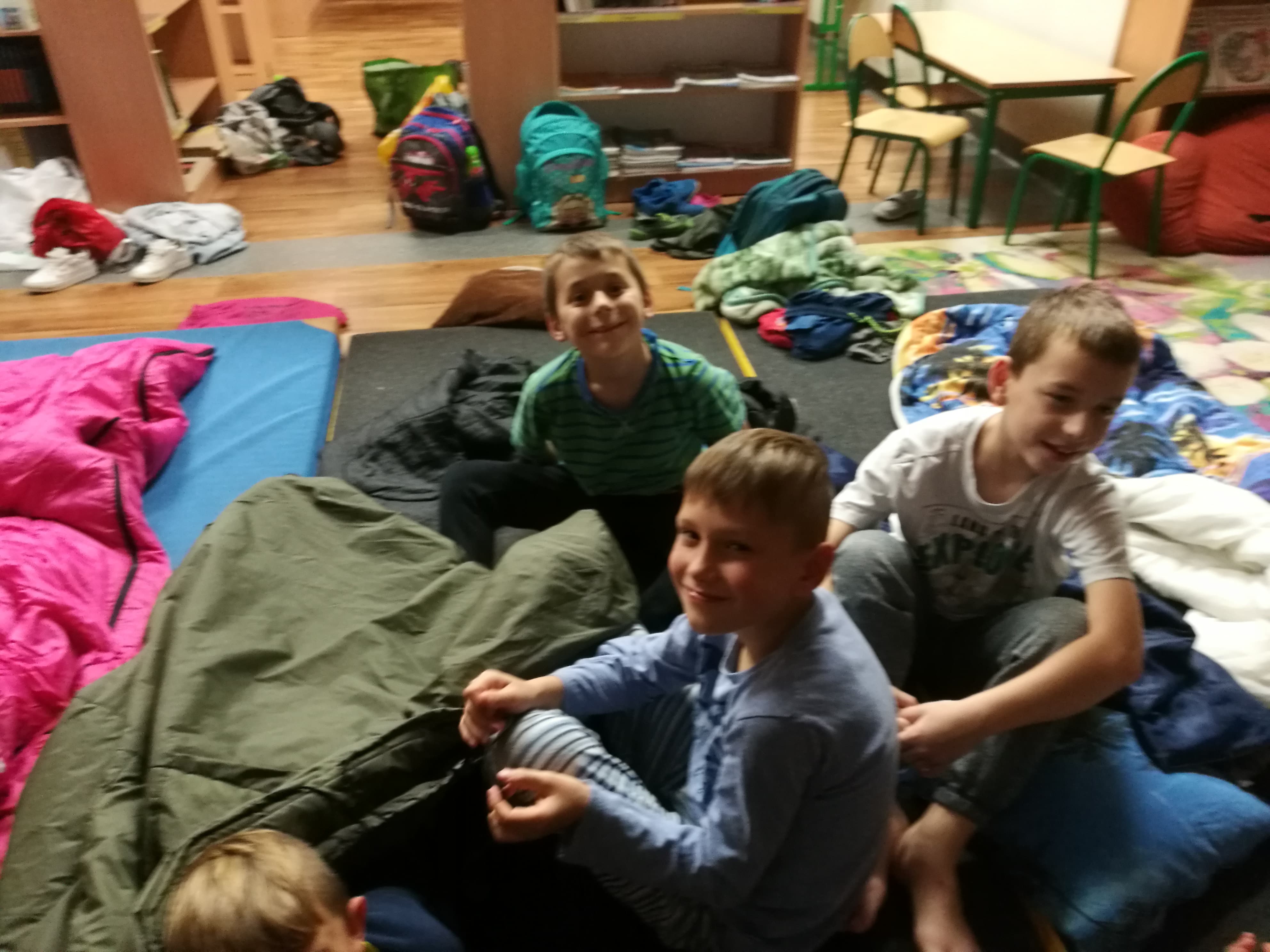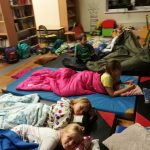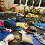 Z 19 na 20 października klasa III a spędziła noc w szkolnej bibliotece. Z Królową Śniegu, Kopciuszkiem oraz Jasiem i Małgosią zaprzyjaźniali się przez całą noc. Głośne czytanie baśni wprowadziło dzieci w atmosferę baśniowego świata. Poznali też utwory, które w przewrotny sposób pokazywały losy baśniowych bohaterów. Porównywały ich losy, określając różnice i podobieństwa. Wykonały piękne prace plastyczne przedstawiające bohaterów z baśni. Wielka pizza zaspokoiła ich głód. Gry planszowe dostarczyły ich wiele radości, choć jest w nich rywalizacja. Przed zaśnięciem wrócili do przeżywania losów bohaterów baśniowych oglądając ich ekranizację. Po zaśnięciu ich uśmiechnięte buzie były oznaką spokoju i zadowolenia. Rano, kiedy się pobudzili, wrócili do rzeczywistych wymiarów. To była wspaniała zabawa. Oczywiście padło pytanie: -Kiedy znowu będziemy spali w szkole?