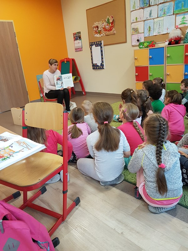 „Zamień Internet na książkę” pod takim hasłem spotkała się p. Izabela Pajdowska z uczniami klasy 1b w celu promowania nowości książkowych w bibliotece.