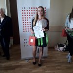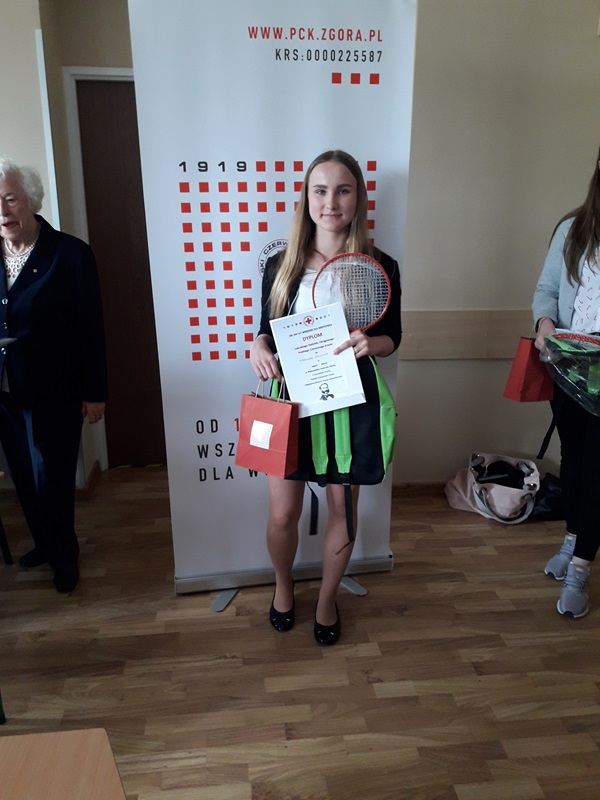 Dnia 8.05.2019 w Ośrodku Doskonalenia Nauczycieli w Zielonej Górze odbył się Wojewódzki Konkurs Wiedzy o Czerwonym Krzyżu, Polskim Czerwonym Krzyżu i Międzynarodowym Prawie Humanitarnym, w którym udział wzięła uczennica VIIIc Klaudia Szocik. W tym trudnym teście wiedzy nasza reprezentantka zajęła IV miejsce. Jest to najlepszy wynik w historii udziałów naszych uczniów w tym cyklicznym konkursie. Gratulujemy!!! Warto wspomnieć, że Klaudii niewiele zabrakło do I miejsca, bo tylko 3 pkt, a od III miejsca dzielił ją tylko 1 pkt.