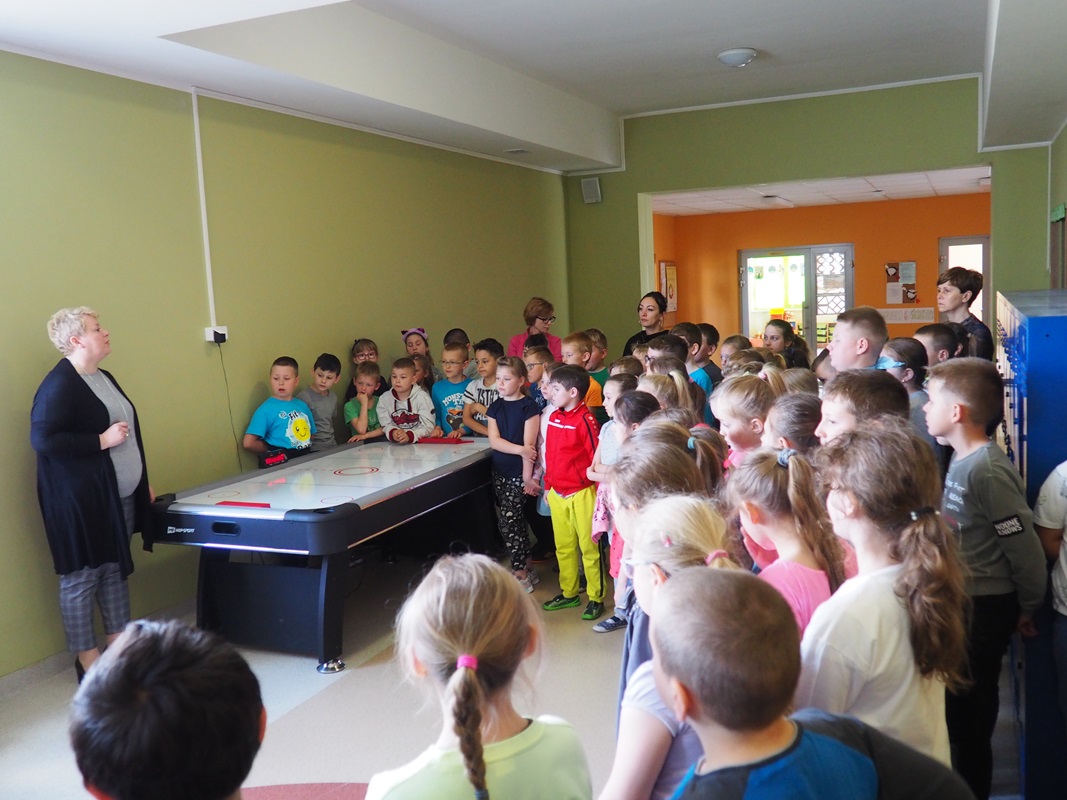 W ubiegłym tygodniu w naszej szkole odbyło się oficjalne przekazanie cymbergaja dla uczniów klas I-III. Przewodnicząca Samorządu Uczniowskiego odczytała zasady korzystania z gry, a Pani wicedyrektor jeszcze raz podkreśliła jak ważne jest stosowanie się do regulaminu ze względu na bezpieczeństwo maluchów. Gra została zakupiona przez Samorząd Uczniowski, a pieniążki pozyskano podczas odbywających się w naszej szkole Dni Łasucha. Mamy nadzieję, że nowa gra umili czas na przerwach naszym najmłodszym uczniom. Gra już cieszy się ogromnym powodzeniem wśród dzieci.