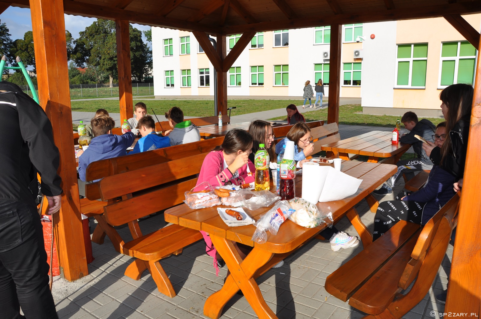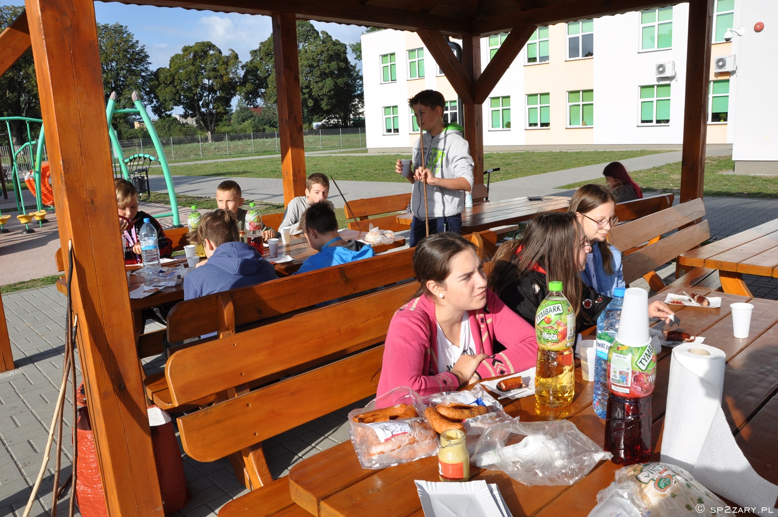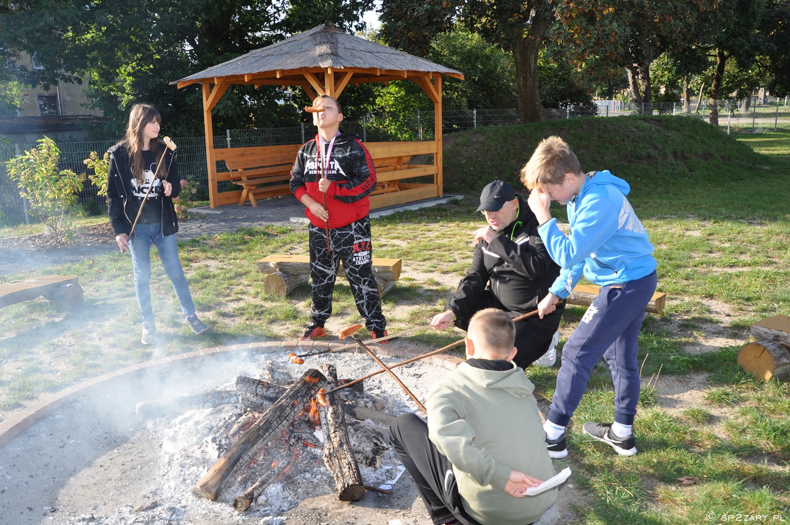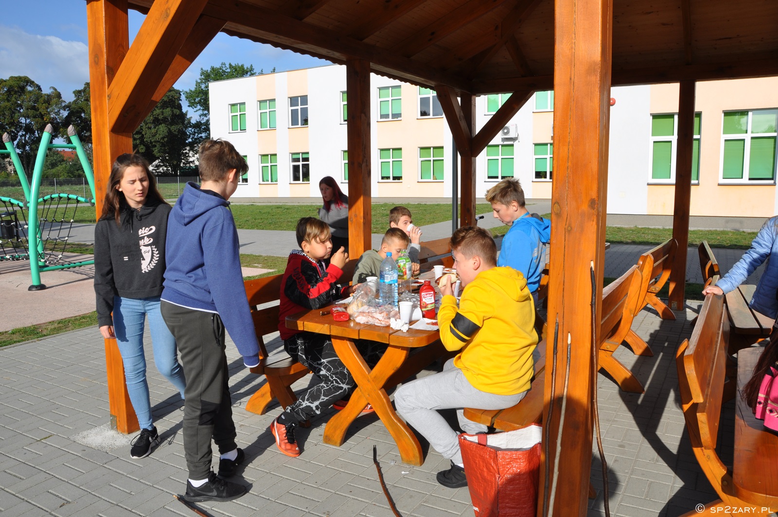 W piątkowy poranek klasa 6b wraz z wychowawcą Panem Tomaszem Chmielewskim postanowiła wspólnie zjeść śniadanko przy ognisku. Tradycyjnie, największą popularnością cieszyły się pyszne pieczone kiełbaski i grzanki prosto z ogniska. Serdecznie dziękujemy rodzicom i panom konserwatorom za pomoc w organizacji i przygotowaniu tej miłej, wspólnej chwili.