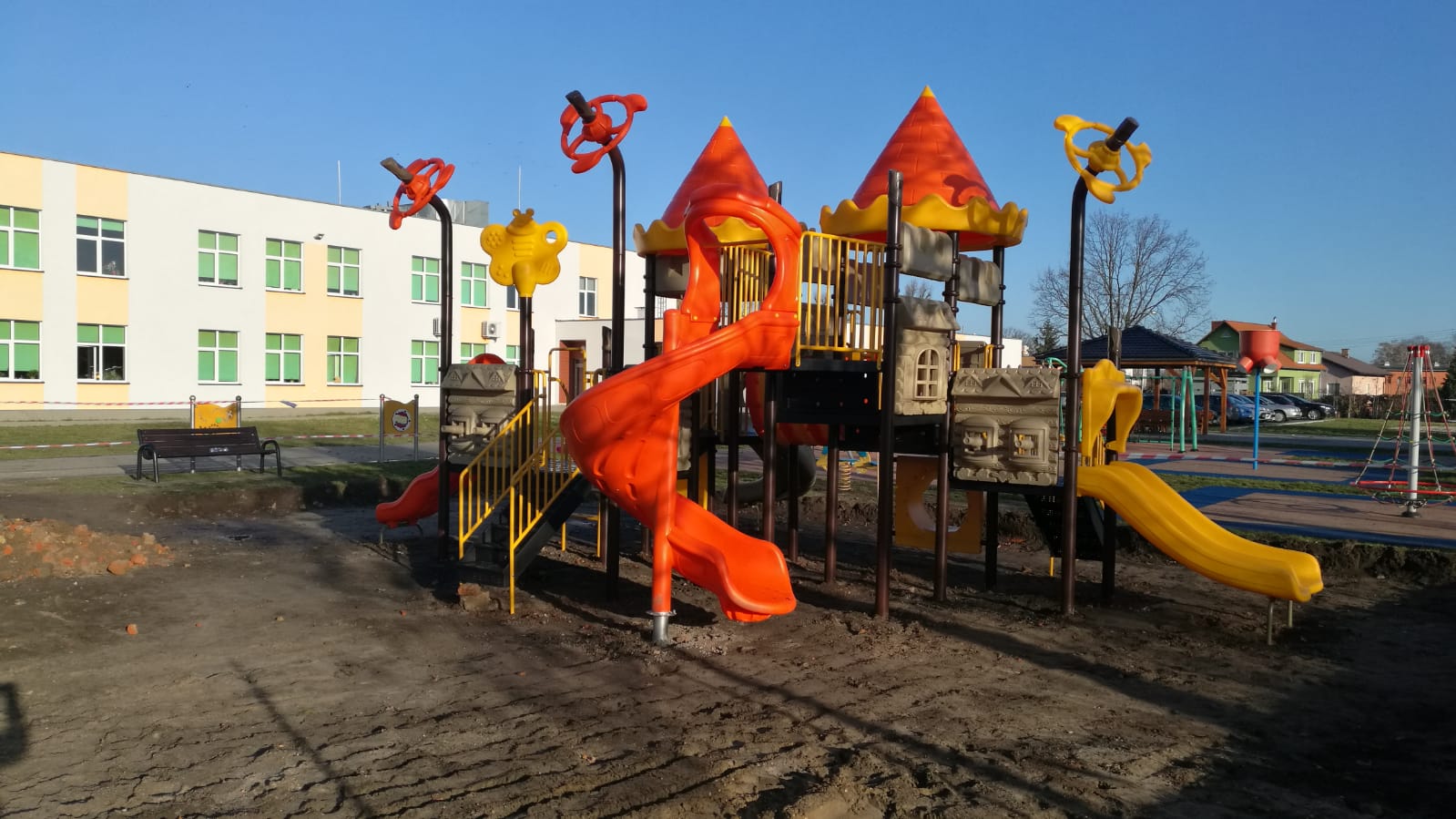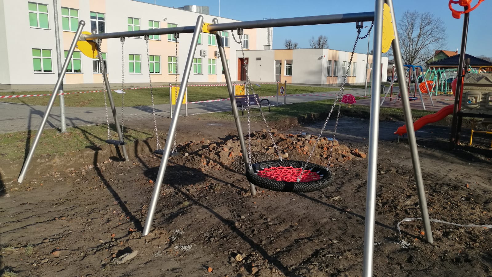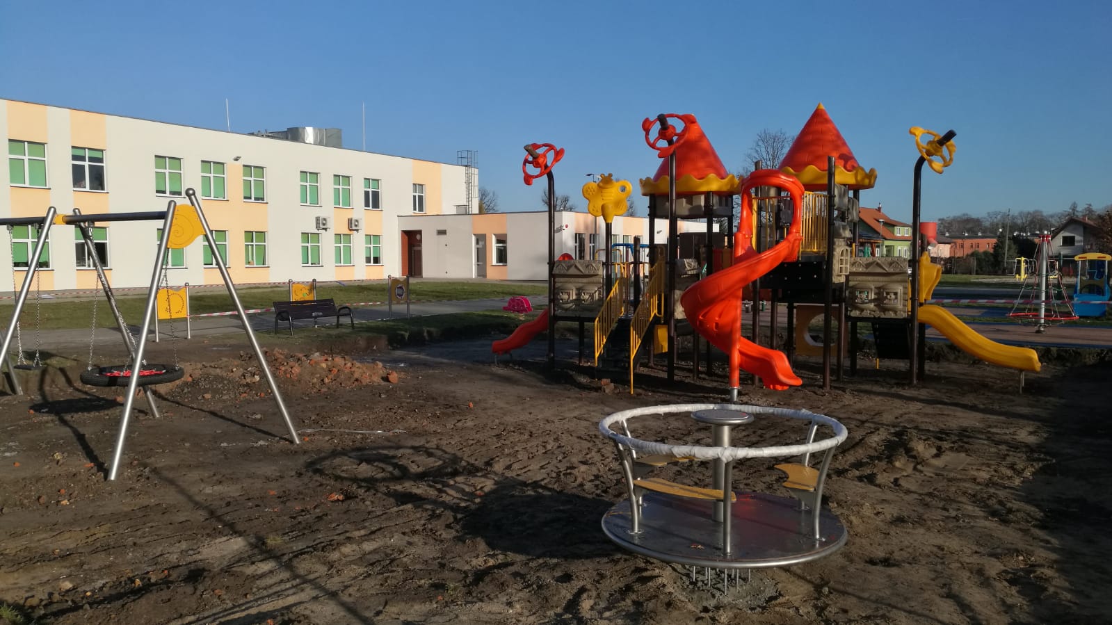 Dobiega końca budowa placu zabaw w naszej szkole w ramach Budżetu Obywatelskiego 2019. Z dnia na dzień jest coraz piękniej.