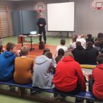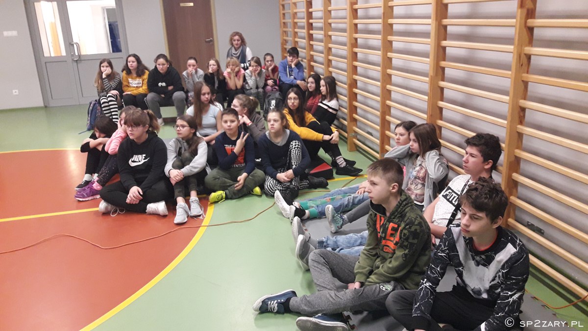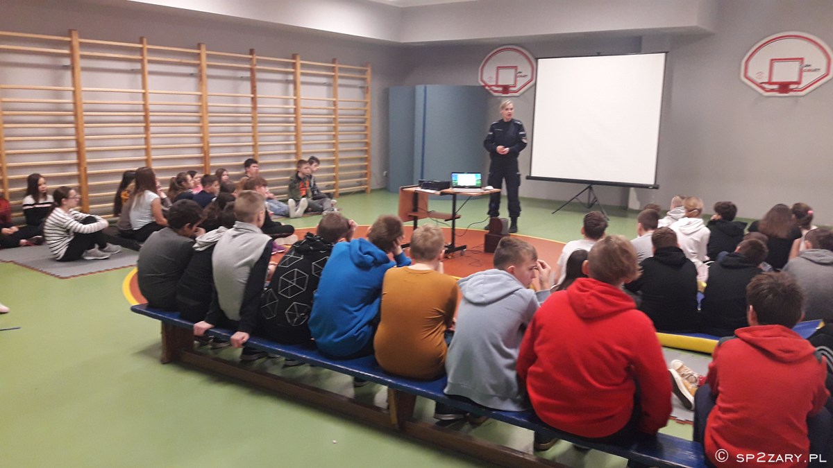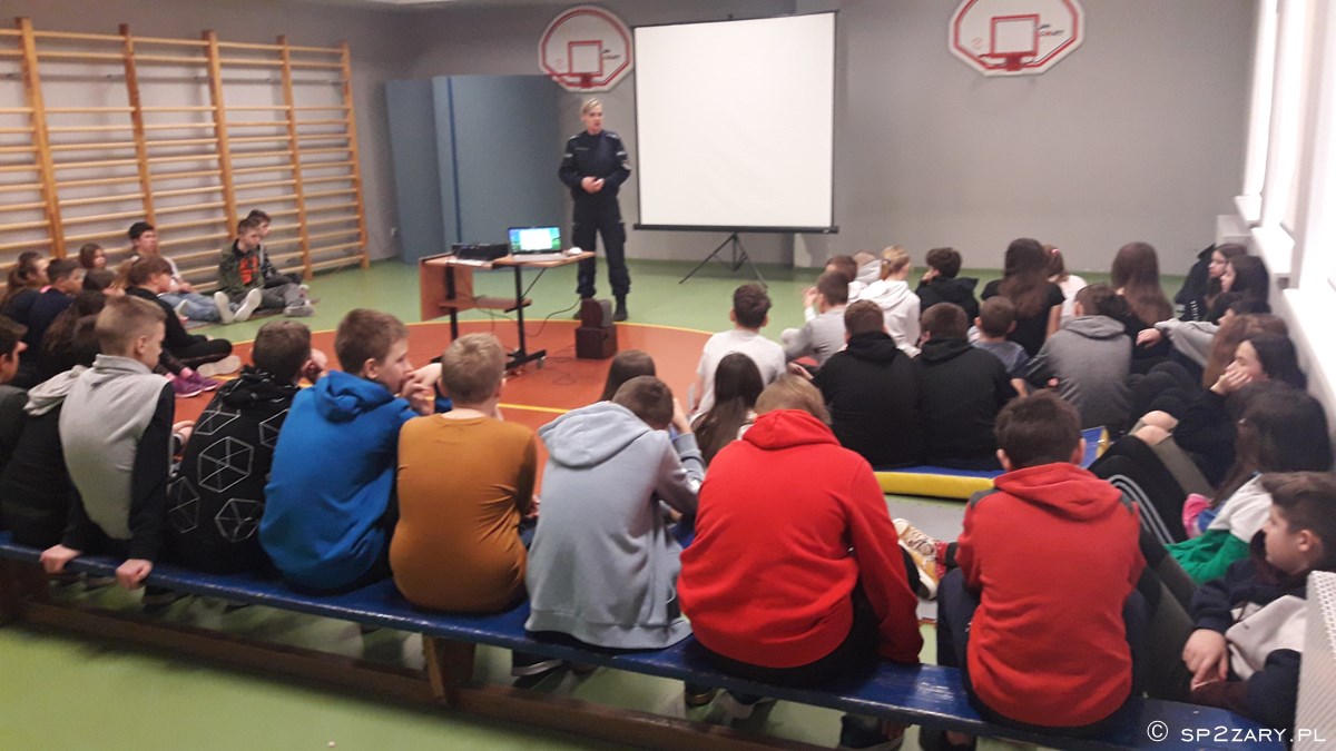 Dnia 13.02.2020 roku klasy szóste uczestniczyły w spotkaniu o cyberprzemocy, które głównie poświęcone było hejtowi w sieci. Najpierw uczniowie obejrzeli film, który miał uzmysłowić, że nie jesteśmy w sieci anonimowi, a wszystko co w Internecie zamieszczamy pozostawia swój trwały ślad. Następnie pani policjantka wyjaśniała jakie kary mogą spotkać kogoś kto posługuje się w Internecie mową nienawiści.