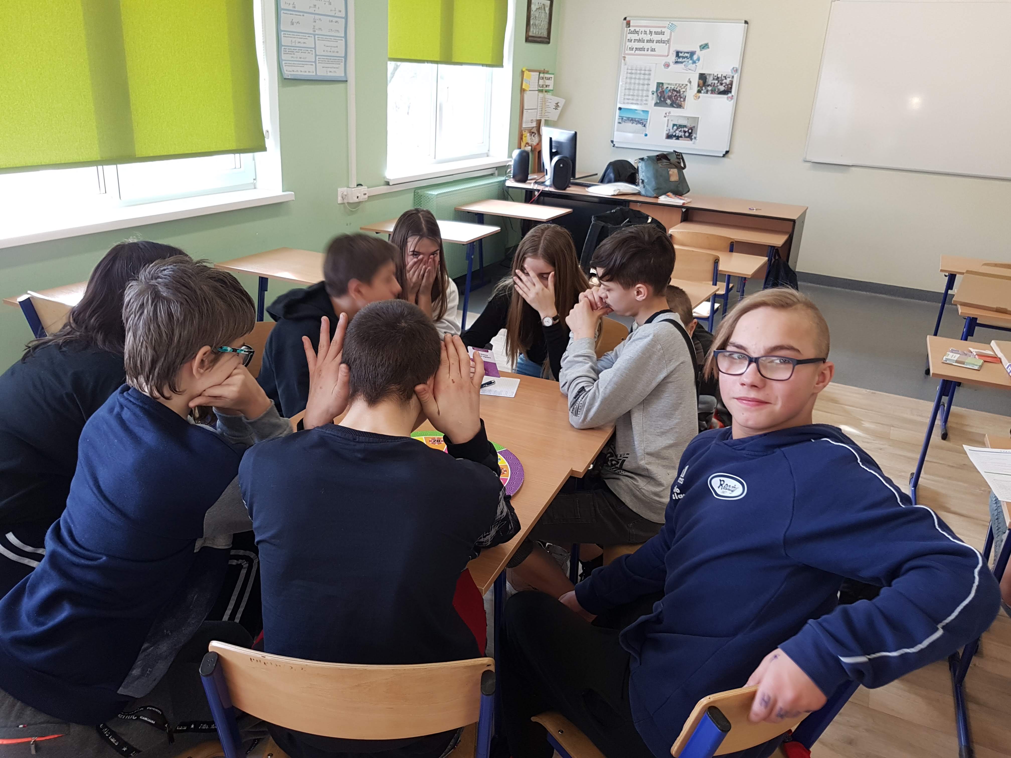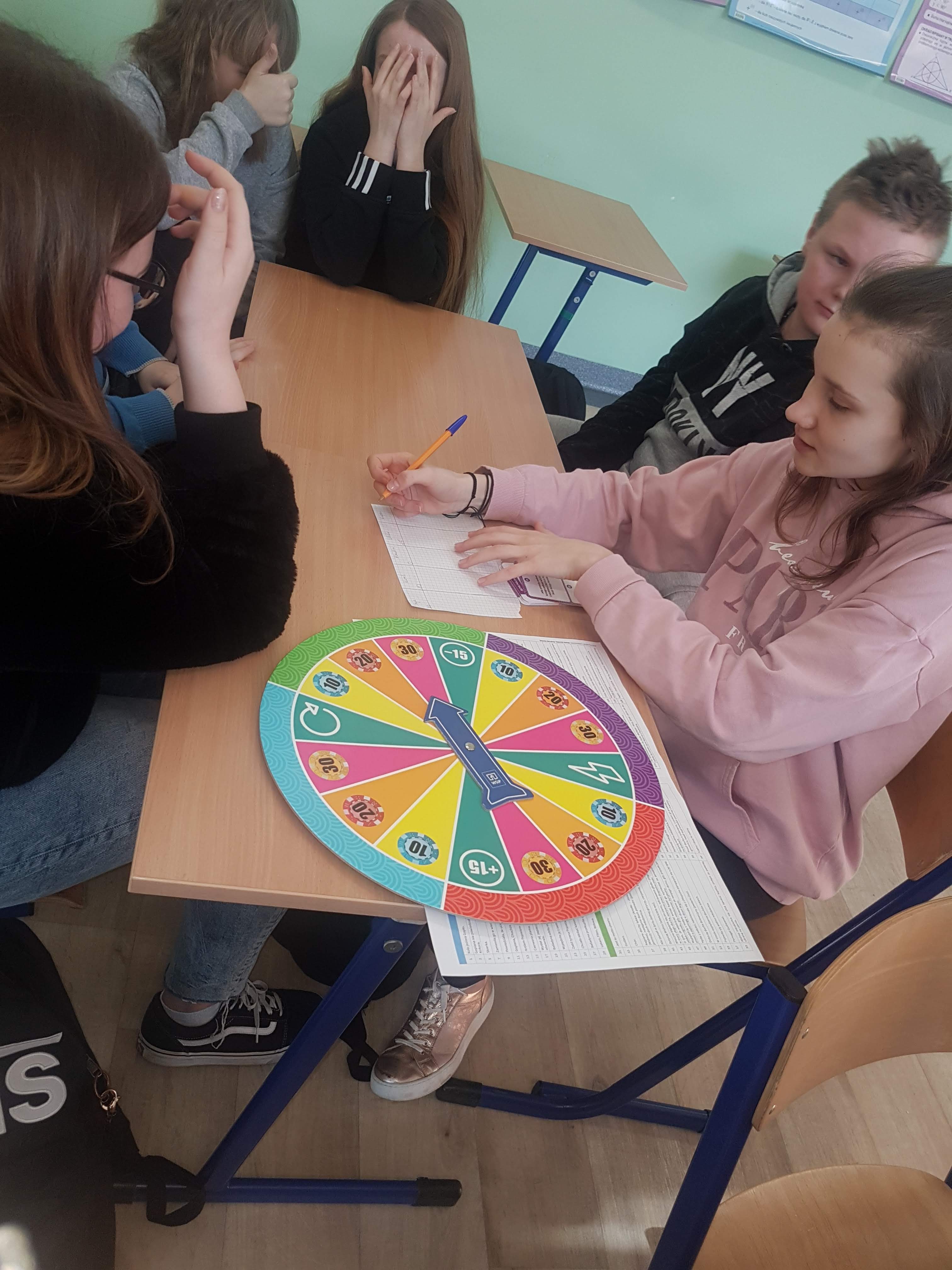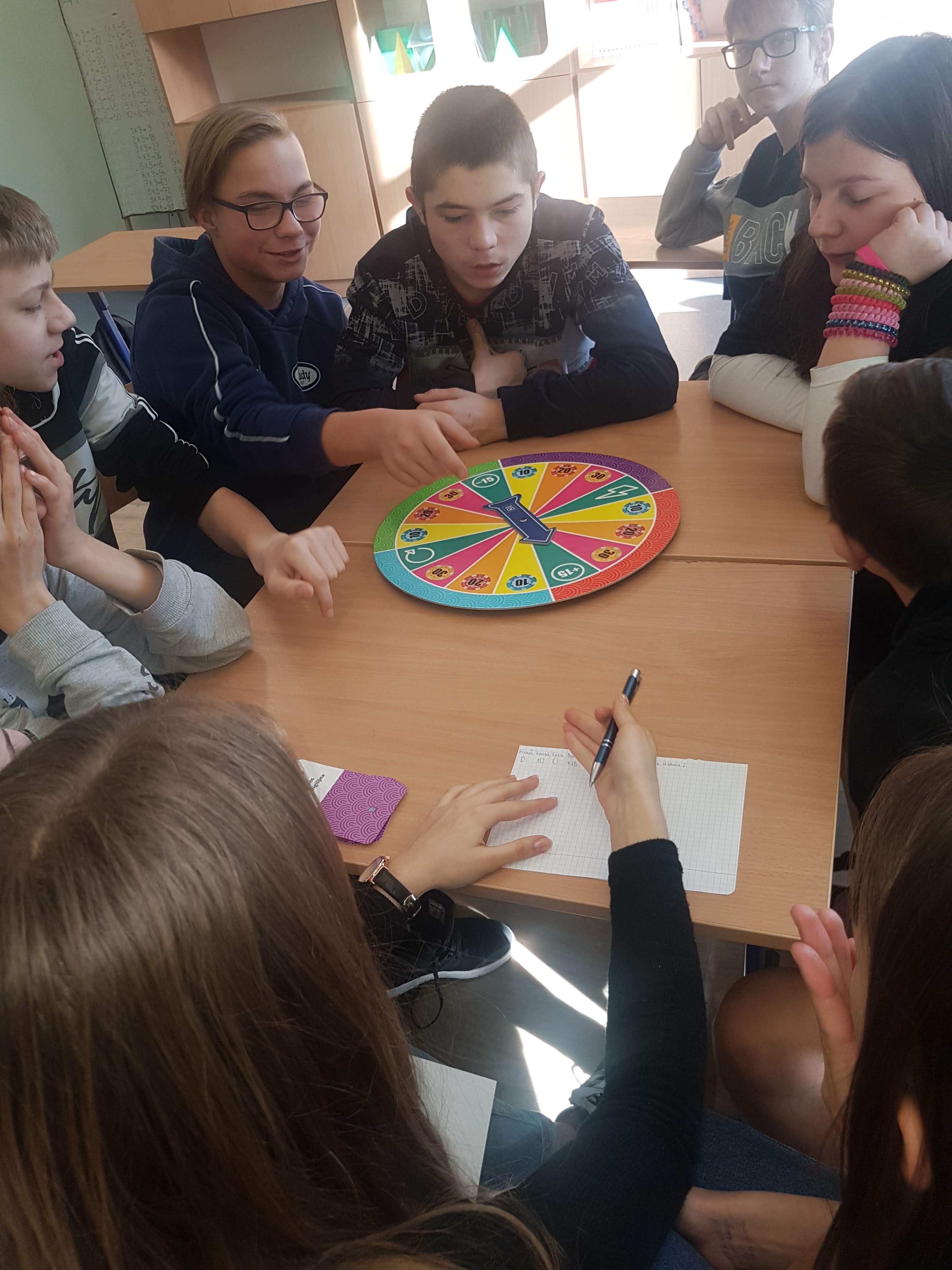 Uczniowie klasy VIIb, na zastępstwie z panią Martą Mazur, grając w gry polonistyczne przypominali i utrwalali wiadomości z lektury „Opowieść wigilijna”. Ćwiczyli również sprawne komunikowanie się ze sobą, a także pracę w zespole. Uczniowie byli bardzo zaangażowani w taką formę zabaw z lekturą.