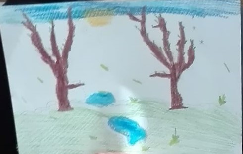 Uczniowie plastycznie przedstawili obrazy pojawiające się w wierszu. Oto efekty:
