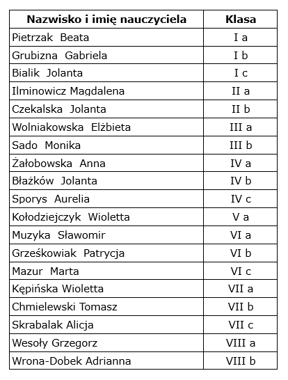 Wychowawcy klas w roku szkolnym 2020/2021: