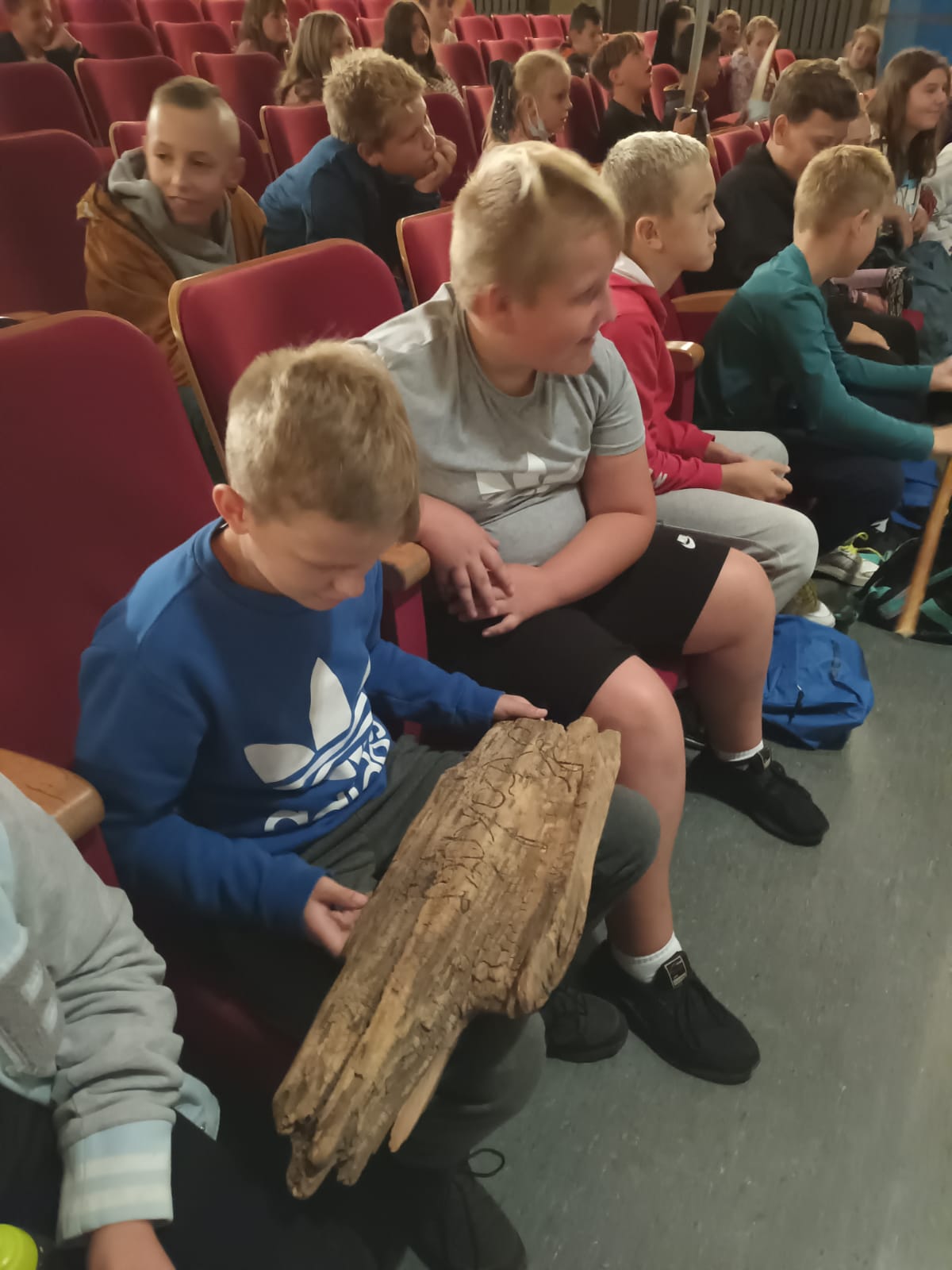 Uczniowie klas piątych Szkoły Podstawowej nr 2 po projekcji filmu „W pustyni i w puszczy” spotkali się z odtwórcą głównej roli, Adamem Fidusiewiczem. Mieli do filmowego Stasia mnóstwo pytań dotyczących powstawania niektórych scen, innych aktorów grających w tym filmie oraz życia prywatnego. Mogli także obejrzeć kilka rekwizytów z filmu, wziąć autograf i zrobić sobie zdjęcie z Panem Adamem, który okazał się bardzo sympatyczny i kontaktowy.