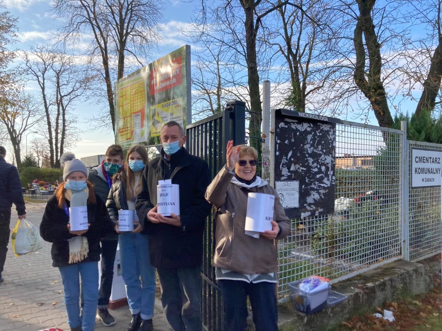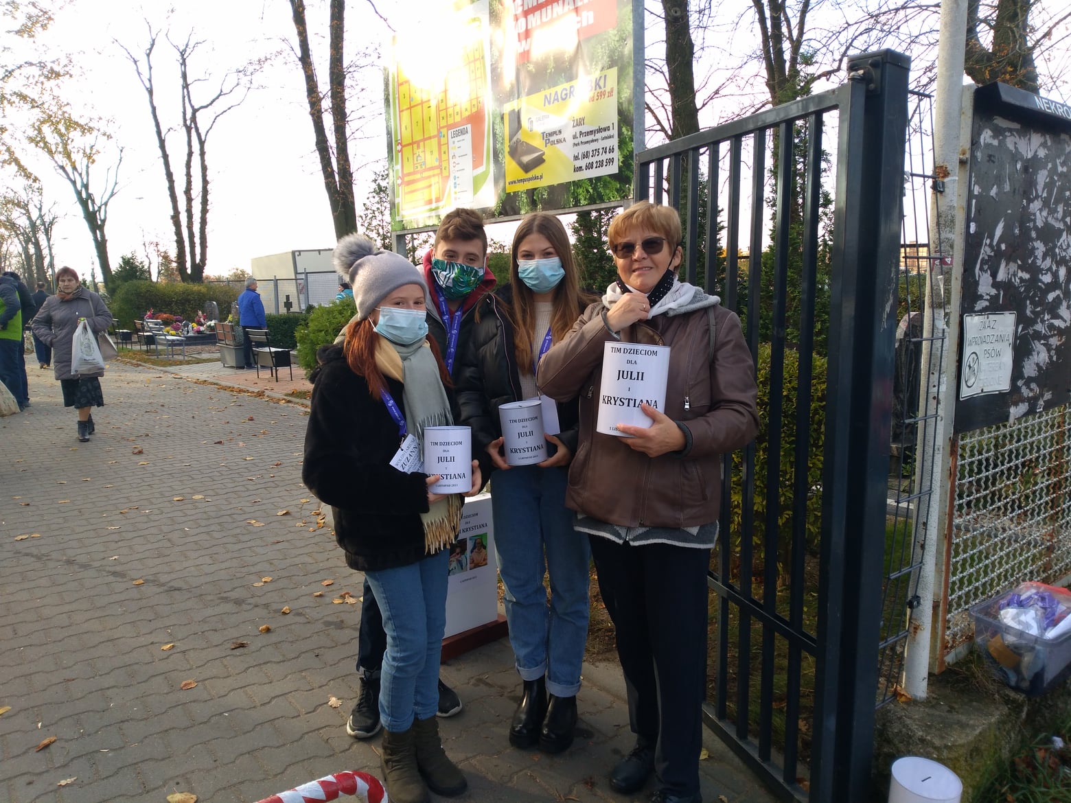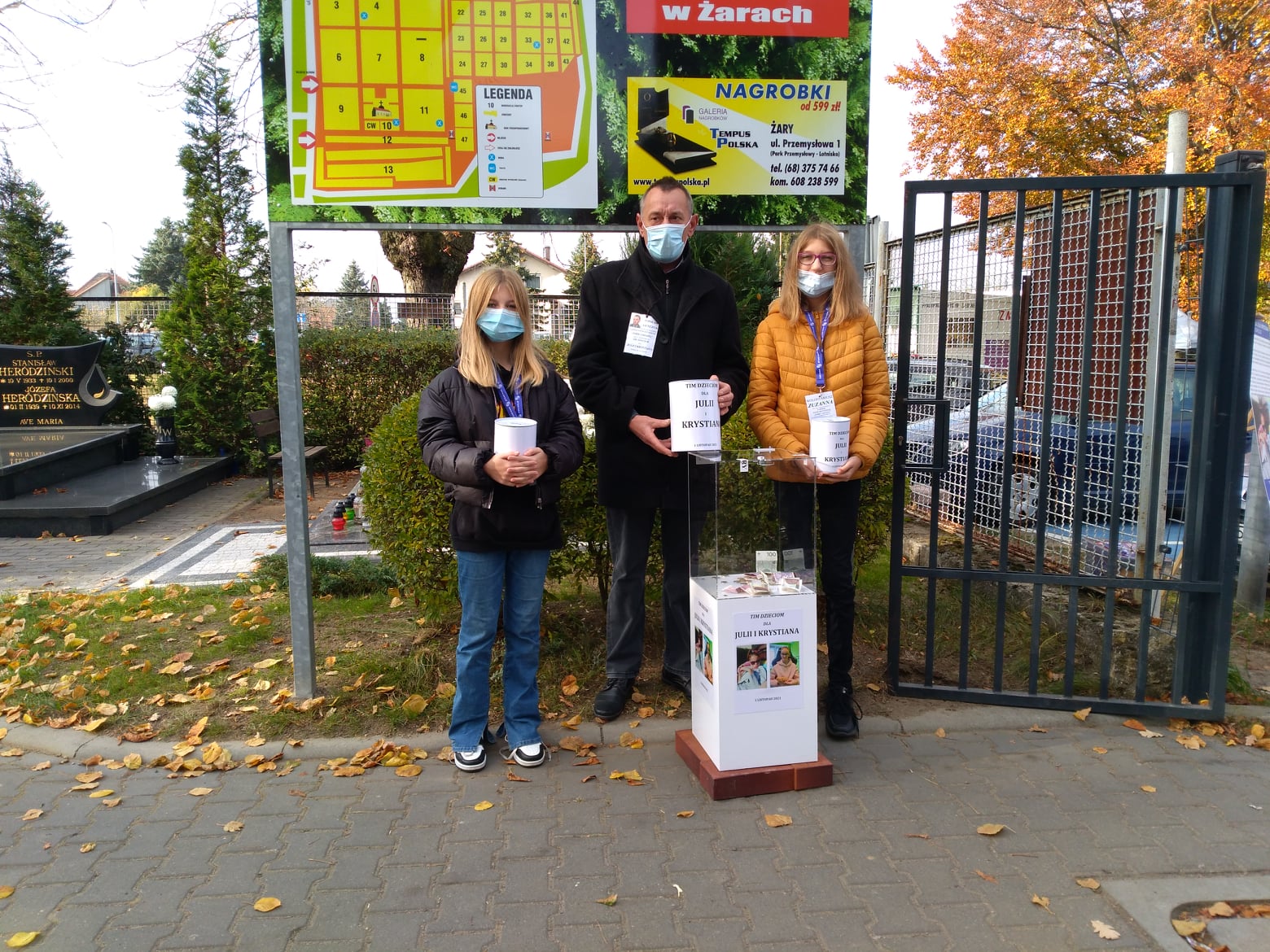 Jej celem jest niesienie pomocy chorym dzieciom z naszego miasta. W akcję włączyła się także pani Adrianna Dobek-Wrona, wychowawczyni z naszej szkoły. Uczniowie pod opieką wolontariuszy ze stowarzyszenia TiMU i nauczycieli zachęcali do udziału w kweście i promowali cele akcji. Pomimo rygorów sanitarnych gotowość do akcji zgłosiło prawie 60 wolontariuszy. Młodzież kwestowała w jednogodzinnych zmianach, przed cmentarzem w Żarach, zachowując przy tym wszystkie zalecenia sanitarne. Dzięki takim postawom młodsi uczą się od starszych a starsi od dorosłych wolontariuszy ze Stowarzyszenia. Uczymy się, że nie wolno przechodzić obojętnie obok ludzkiego cierpienia, że mogą nas różnić światopoglądy ale jednoczy nas zawsze to, że wszyscy tworzymy jedną rodzinę ludzką. Bezinteresowność życzliwość i niesienie pomocy wskazuje na jakość naszego życia. Jakość naszego człowieczeństwa. Serdecznie dziękuję wszystkim zaangażowanym wolontariuszom, nauczycielom i rodzicom za liczny udział w tym wydarzeniu.