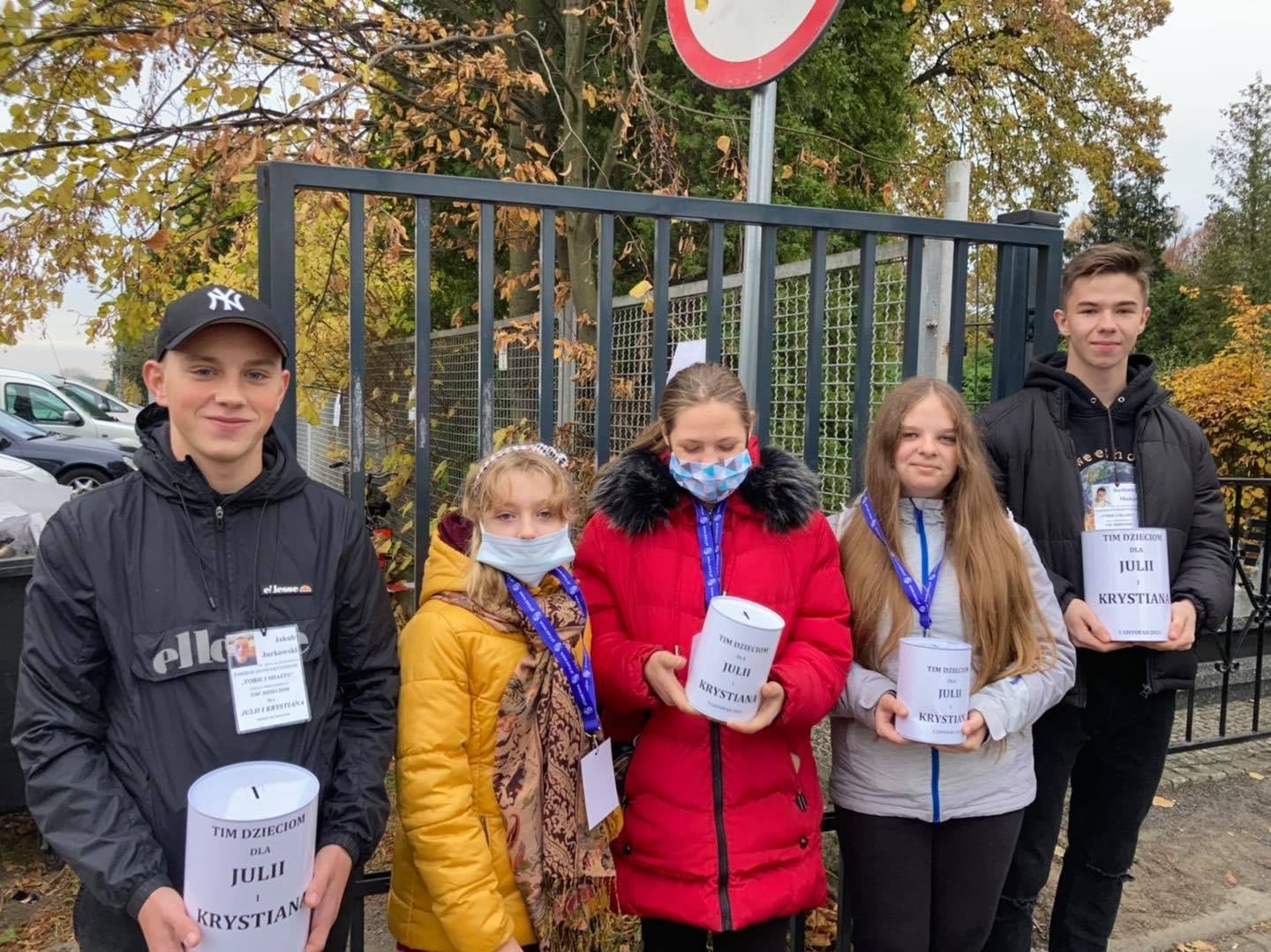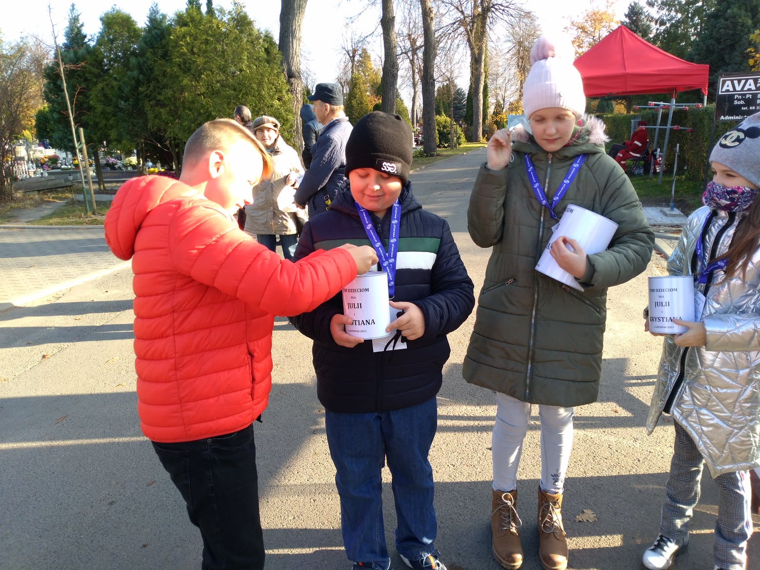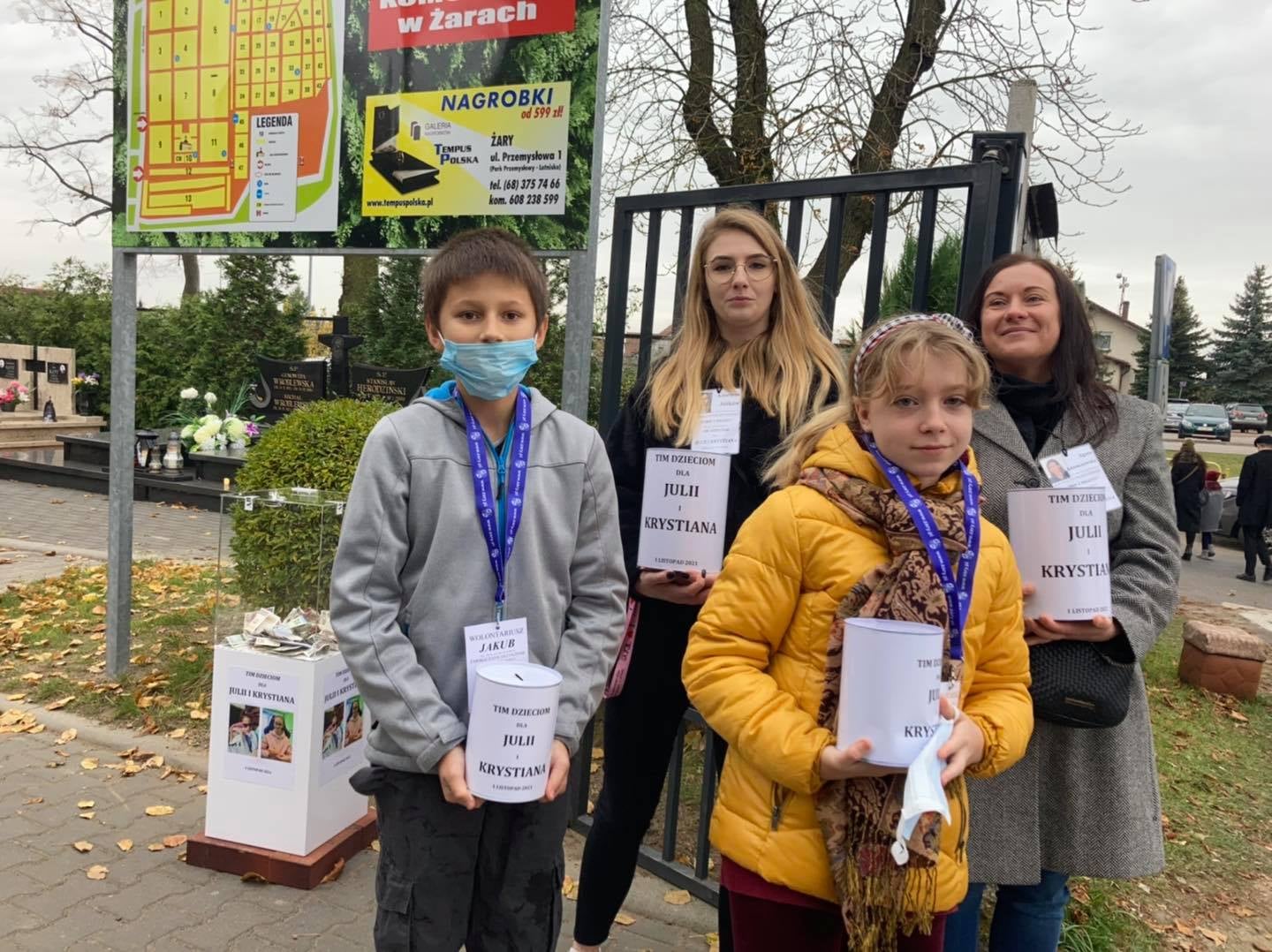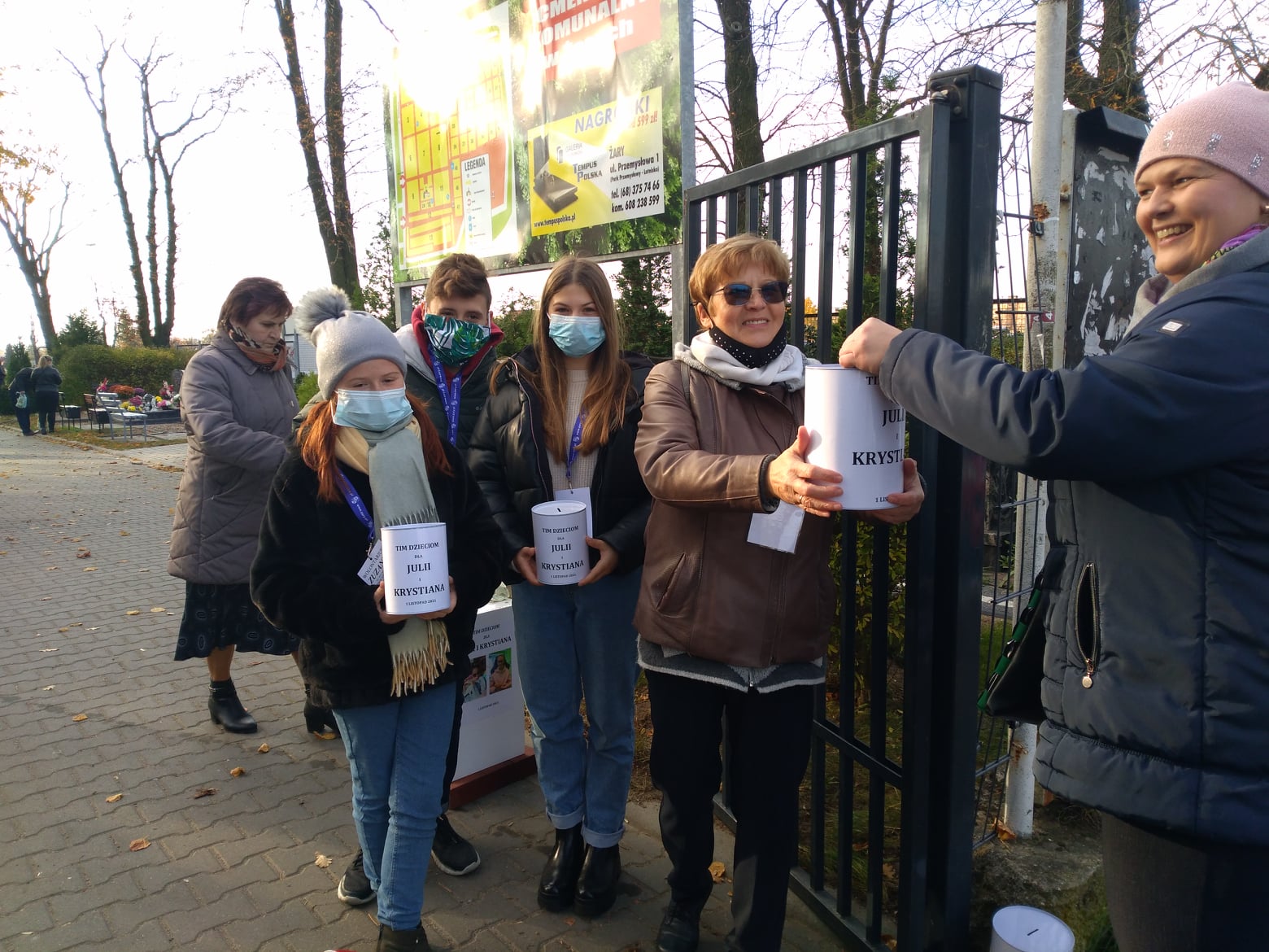 Jej celem jest niesienie pomocy chorym dzieciom z naszego miasta. W akcję włączyła się także pani Adrianna Dobek-Wrona, wychowawczyni z naszej szkoły. Uczniowie pod opieką wolontariuszy ze stowarzyszenia TiMU i nauczycieli zachęcali do udziału w kweście i promowali cele akcji. Pomimo rygorów sanitarnych gotowość do akcji zgłosiło prawie 60 wolontariuszy. Młodzież kwestowała w jednogodzinnych zmianach, przed cmentarzem w Żarach, zachowując przy tym wszystkie zalecenia sanitarne. Dzięki takim postawom młodsi uczą się od starszych a starsi od dorosłych wolontariuszy ze Stowarzyszenia. Uczymy się, że nie wolno przechodzić obojętnie obok ludzkiego cierpienia, że mogą nas różnić światopoglądy ale jednoczy nas zawsze to, że wszyscy tworzymy jedną rodzinę ludzką. Bezinteresowność życzliwość i niesienie pomocy wskazuje na jakość naszego życia. Jakość naszego człowieczeństwa. Serdecznie dziękuję wszystkim zaangażowanym wolontariuszom, nauczycielom i rodzicom za liczny udział w tym wydarzeniu.