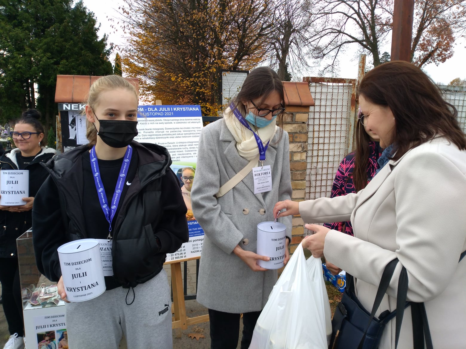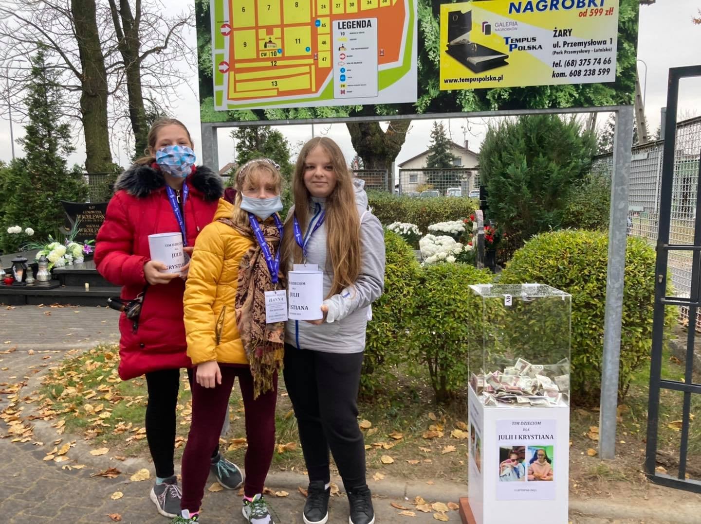 Po zawirowaniach spowodowanych pandemią, – 1 listopada w Dniu Wszystkich Świętych, wolontariusze z naszego Szkolnego Koła Caritas po raz kolejny wyruszyli na kwestę. Aby pomóc byłym uczniom naszej szkoły w walce o zdrowie i godne warunki rehabilitacji. W tym roku to: Julia i Krystian. Jest to cykliczna akcja odbywająca się pod patronatem Żarskiego Stowarzyszenia „Tobie i Miastu”.