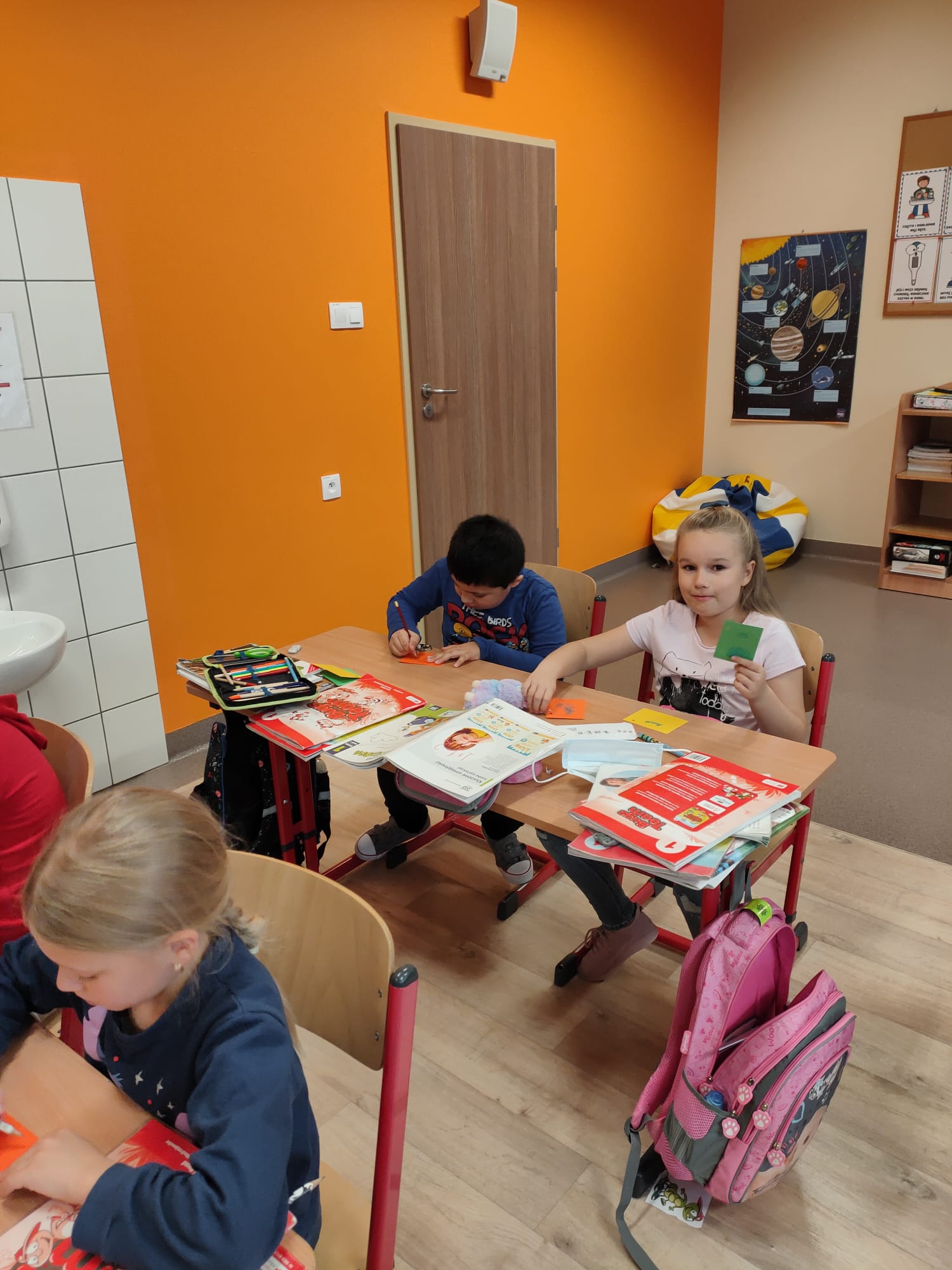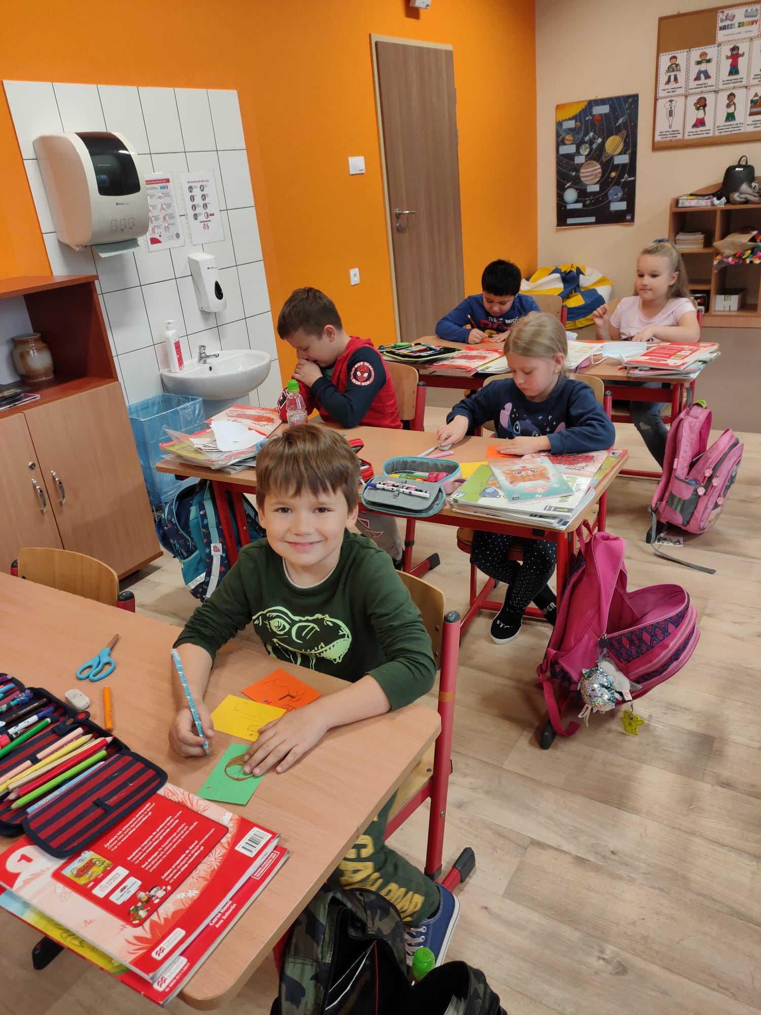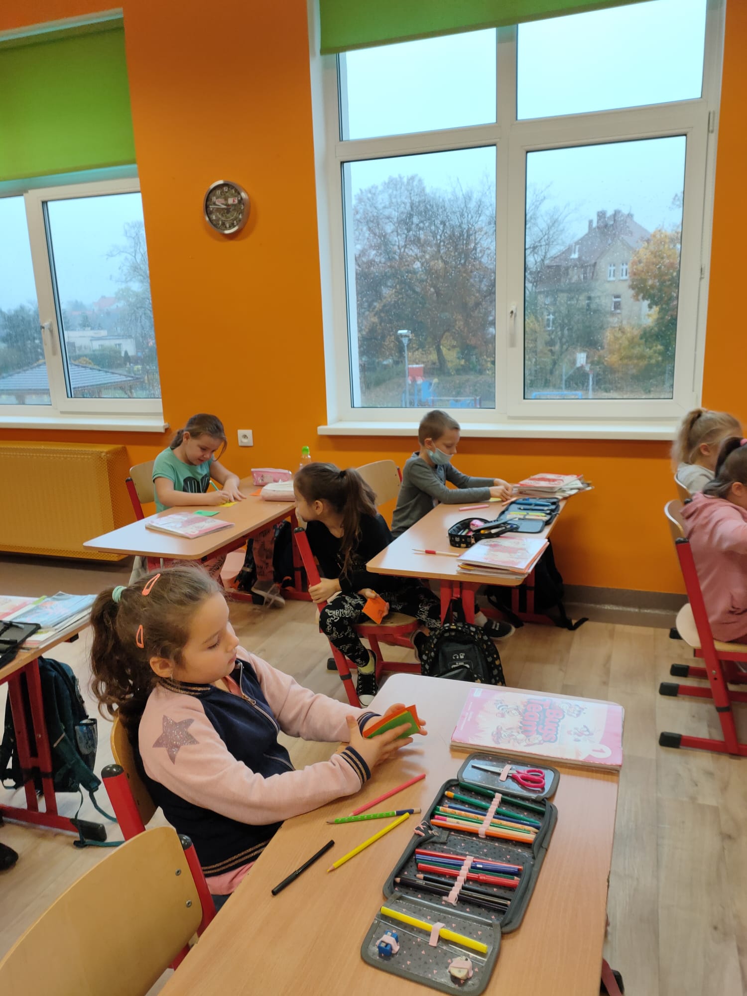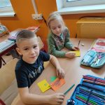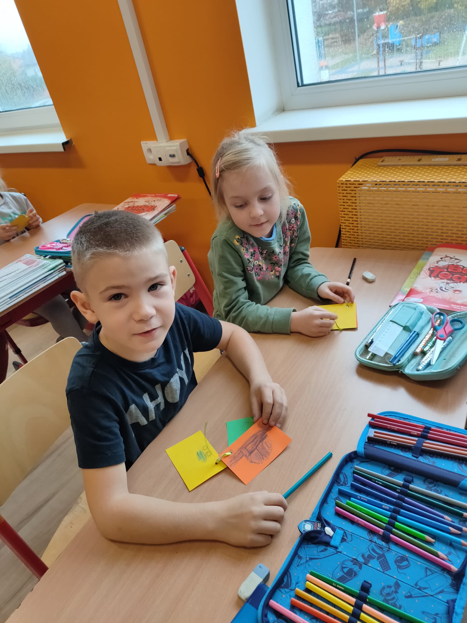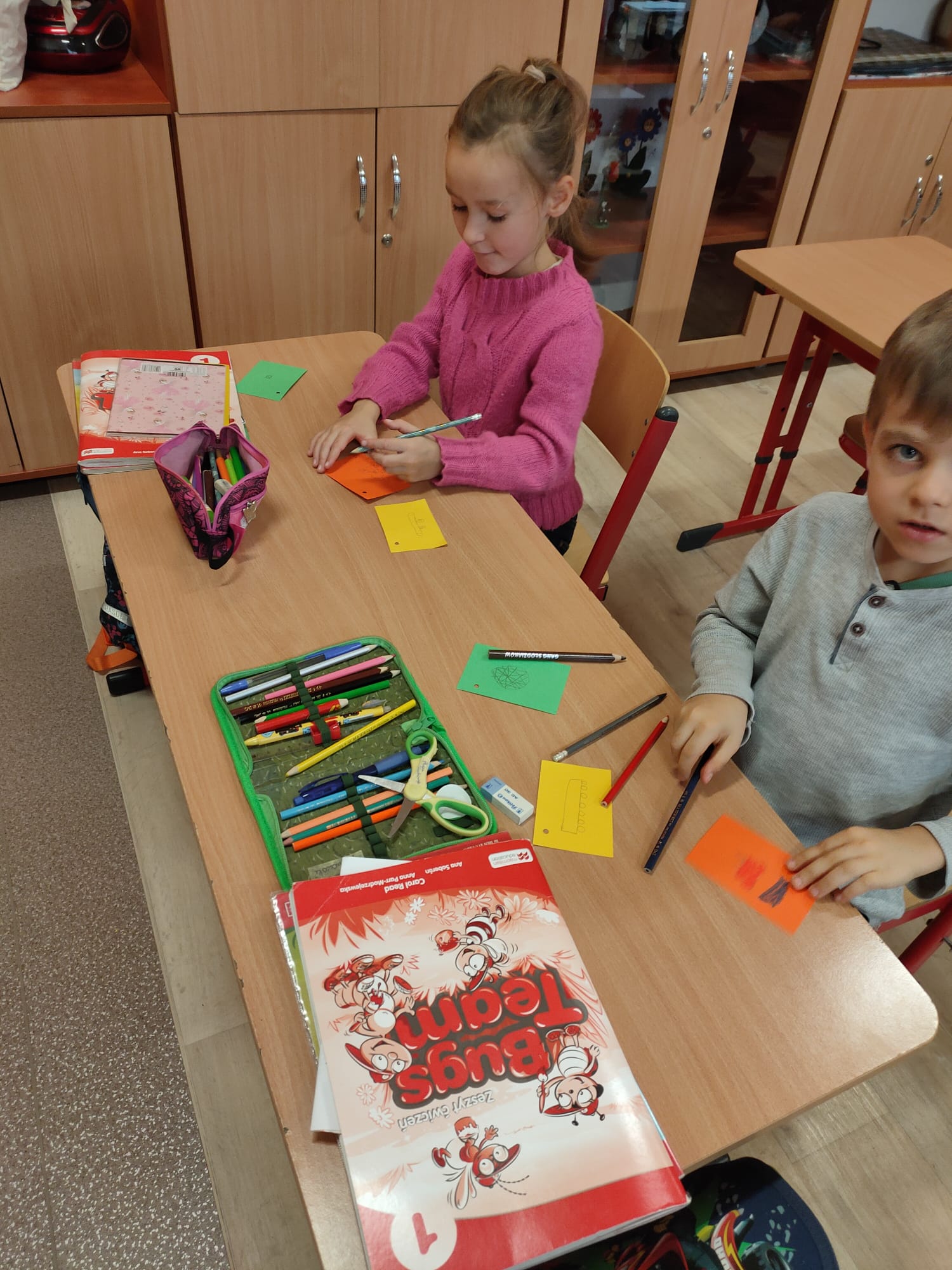 W ten deszczowy dzień klasa 1c wniosła trochę kolorów – uczniowie przygotowali swoje pierwsze słowniczki z j. angielskiego. Pięknie pracowali, słówka na pewno zostaną w głowach ?