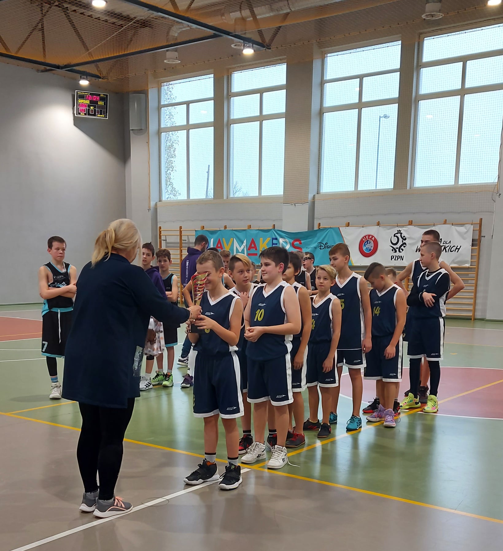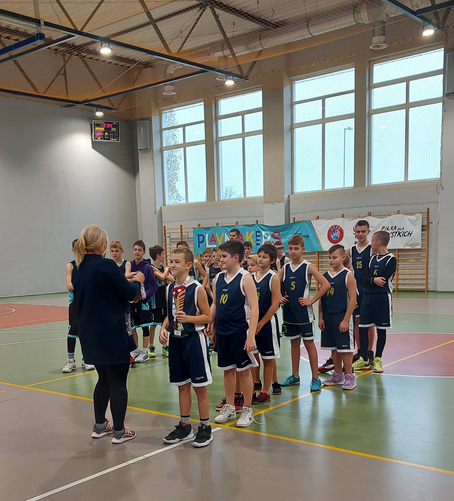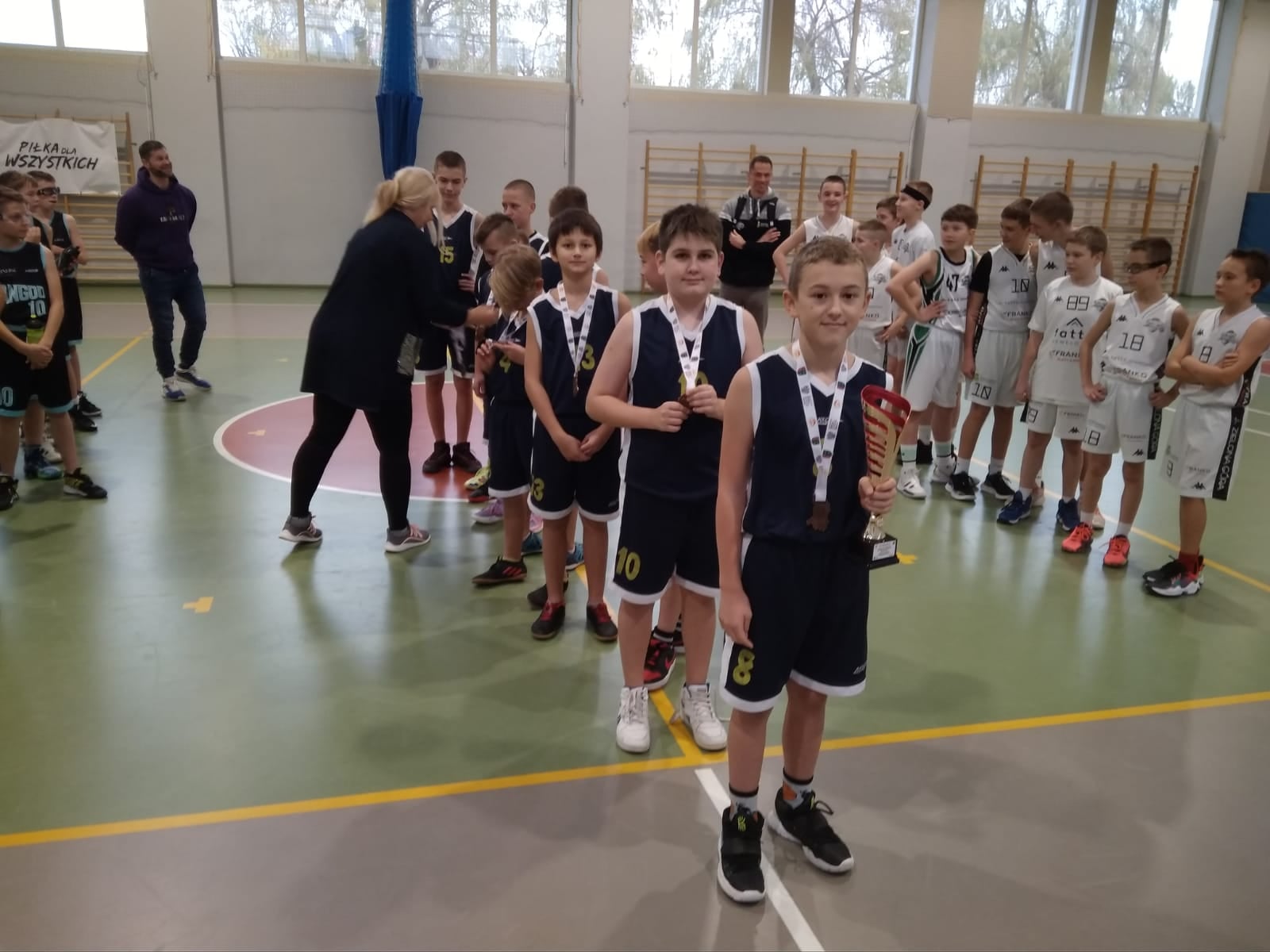 W dniu 25.11.2021 nasza szkoła gościła finalistów Lubuskiej Olimpiady Młodzieży w mini koszykówce chłopców. W rywalizacji wzięły udział zespoły z SP nr 10 z Zielonej Góry, SP nr 13 z Gorzowa Wielkopolskiego, SP nr 7 ze Świebodzina i reprezentacja naszej szkoły. Turniej rozegrano systemem pucharowym. Nasza drużyna w pierwszym meczu przegrała niestety z zespołem z Gorzowa Wielkopolskiego, ale w walce o brąz nie dała szans kolegom ze Świebodzina, spokojnie wygrywając mecz i zdobywając brązowe medale w finale wojewódzkim. Podopieczni pani Violetty Kępińskiej wystąpili w składzie: Alan Więckiewicz, Adam Broniecki, Aleksander Bielawski, Paweł Janosz, Igor Głuchowski, Bartosz Boguszewski, Michał Urbanowicz, Igor Rubczyński, Michał Kalemba i Jania Jakub.