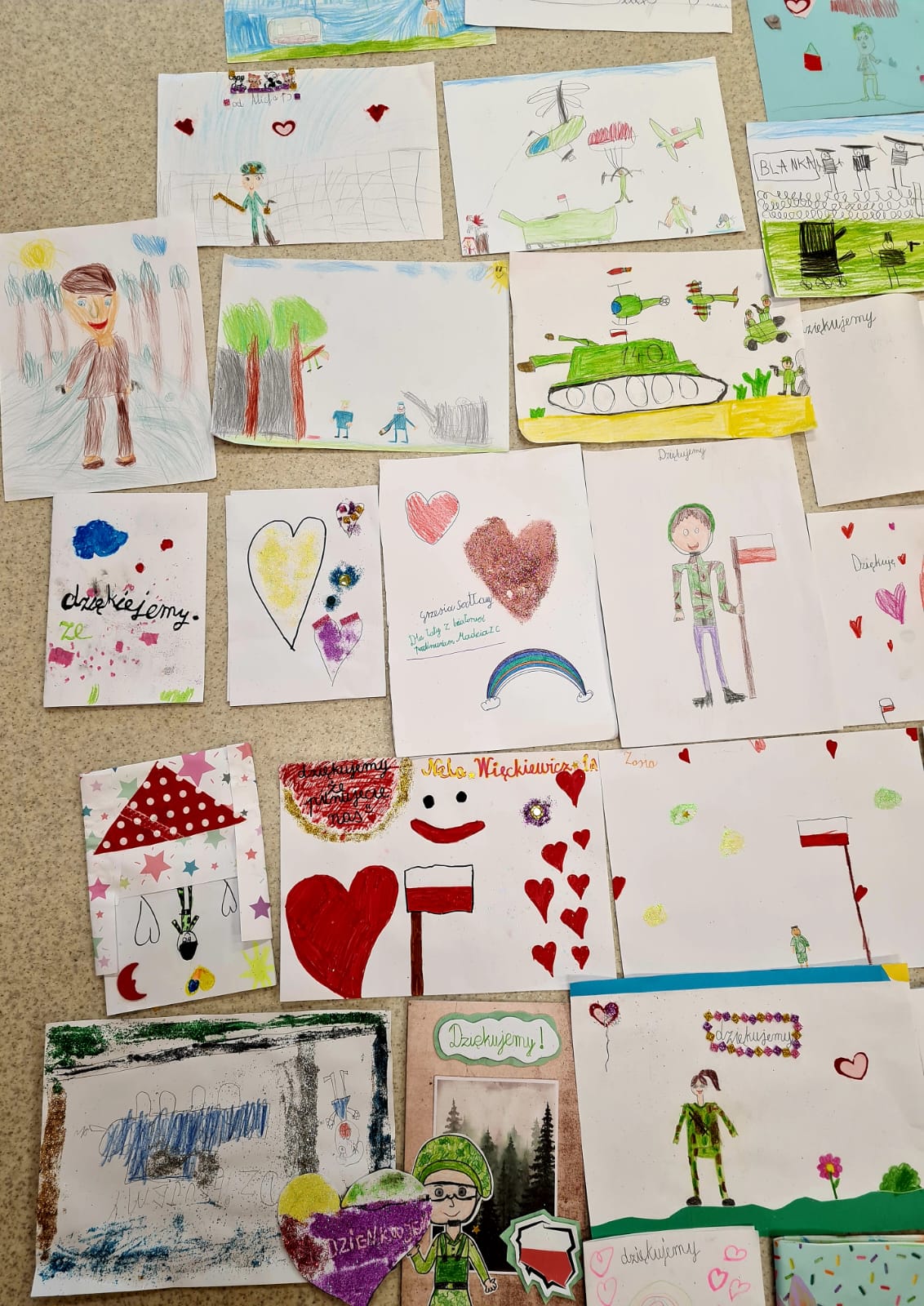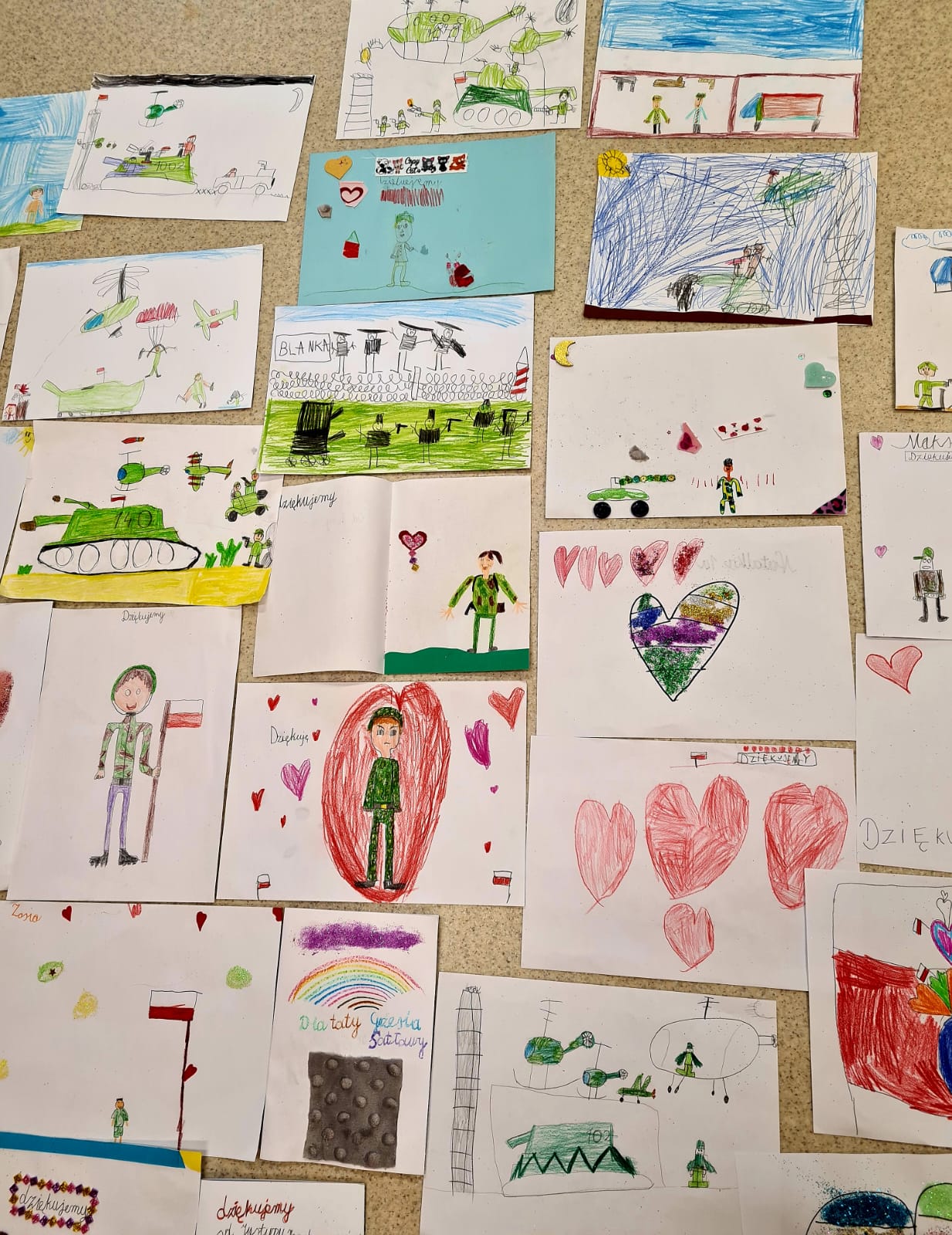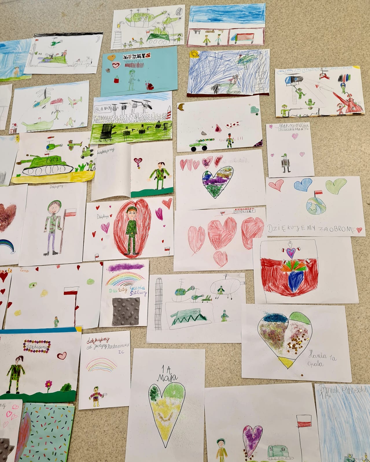 W ramach akcji Murem za Polskim Mundurem dzieci ze świetlicy szkolnej oraz uczniowie z klasy 1c przygotowali dla żołnierzy prace plastyczne i kartki z podziękowaniami. Prace zostaną wysłane w piątek do żołnierzy, którzy pilnują wschodnich granic naszego kraju.