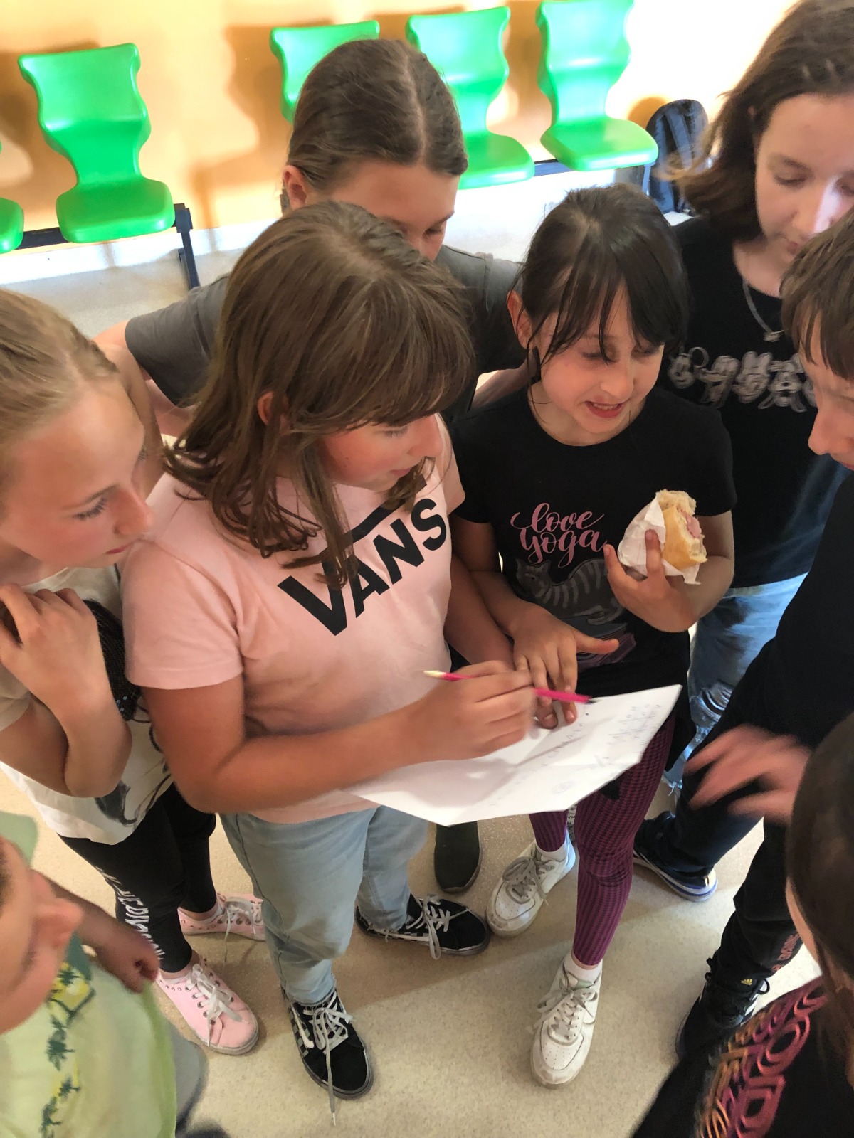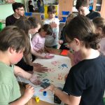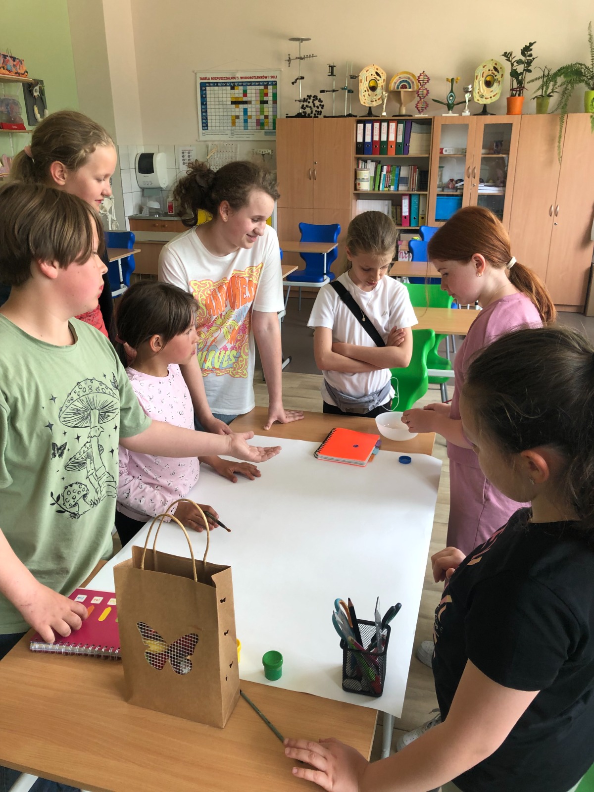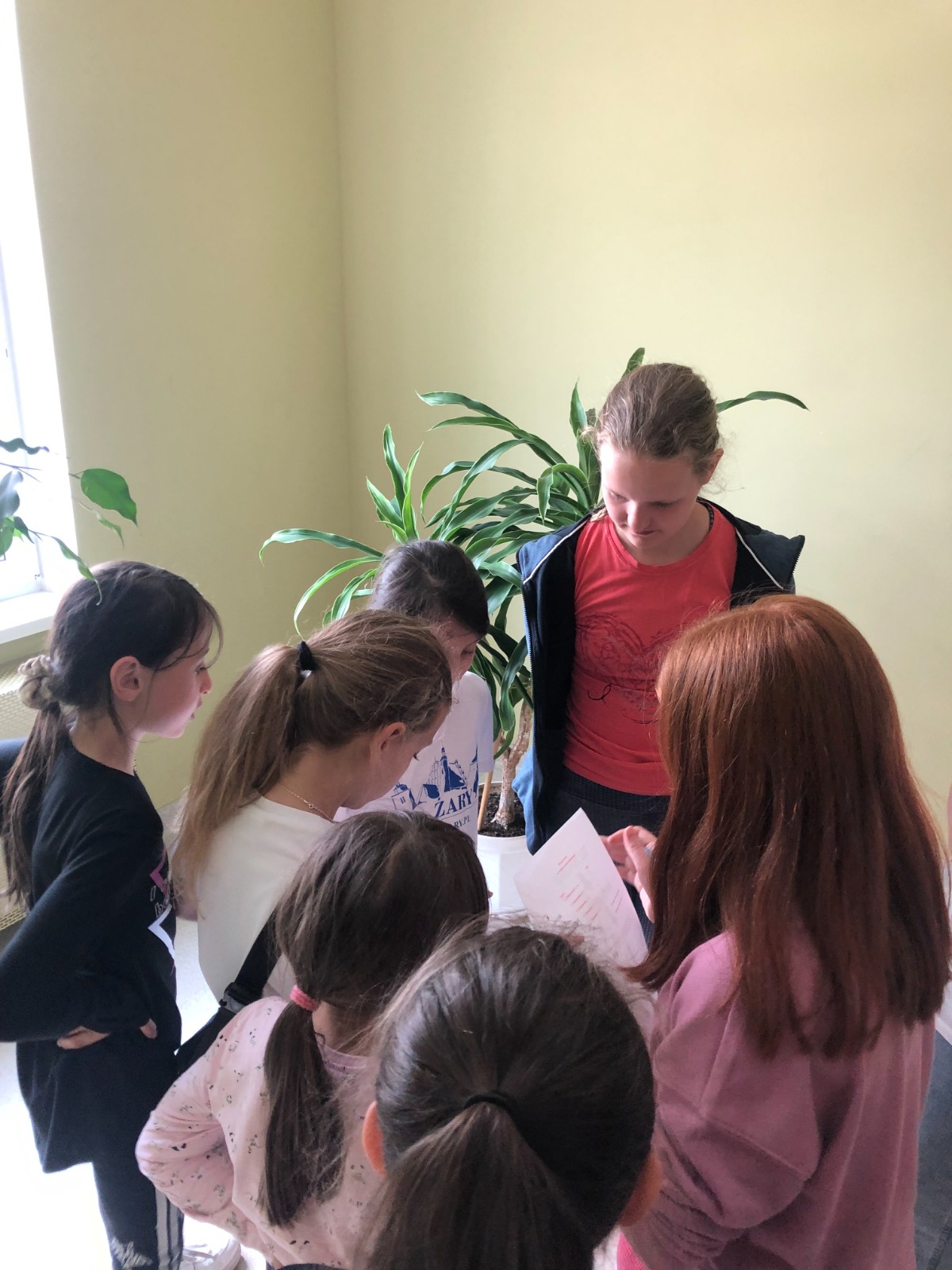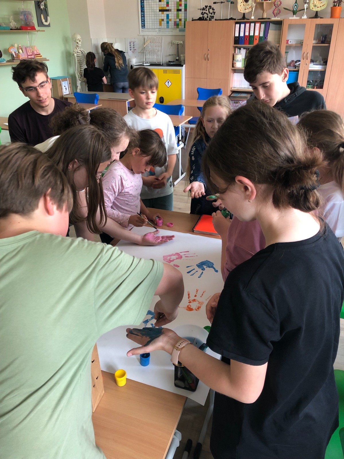 Na ostatnich zajęciach członkowie koła biologiczno- chemicznego bawili się w podchody? Ciekawe, ale i zabawne zadania oraz nagrody przygotowali najstarsi uczniowie- Michał Popko, Mateusz Buganik i Zuzia Strzałkowska? Było dużo śmiechu i zabawy, ale też wesoła rywalizacja? Na koniec uczniowie na pamiątkę wspólnej zabawy odcisnęli swoje dłonie na plakacie, który oczywiście zawiśnie w naszym biologiczno- chemicznym gabinecie?