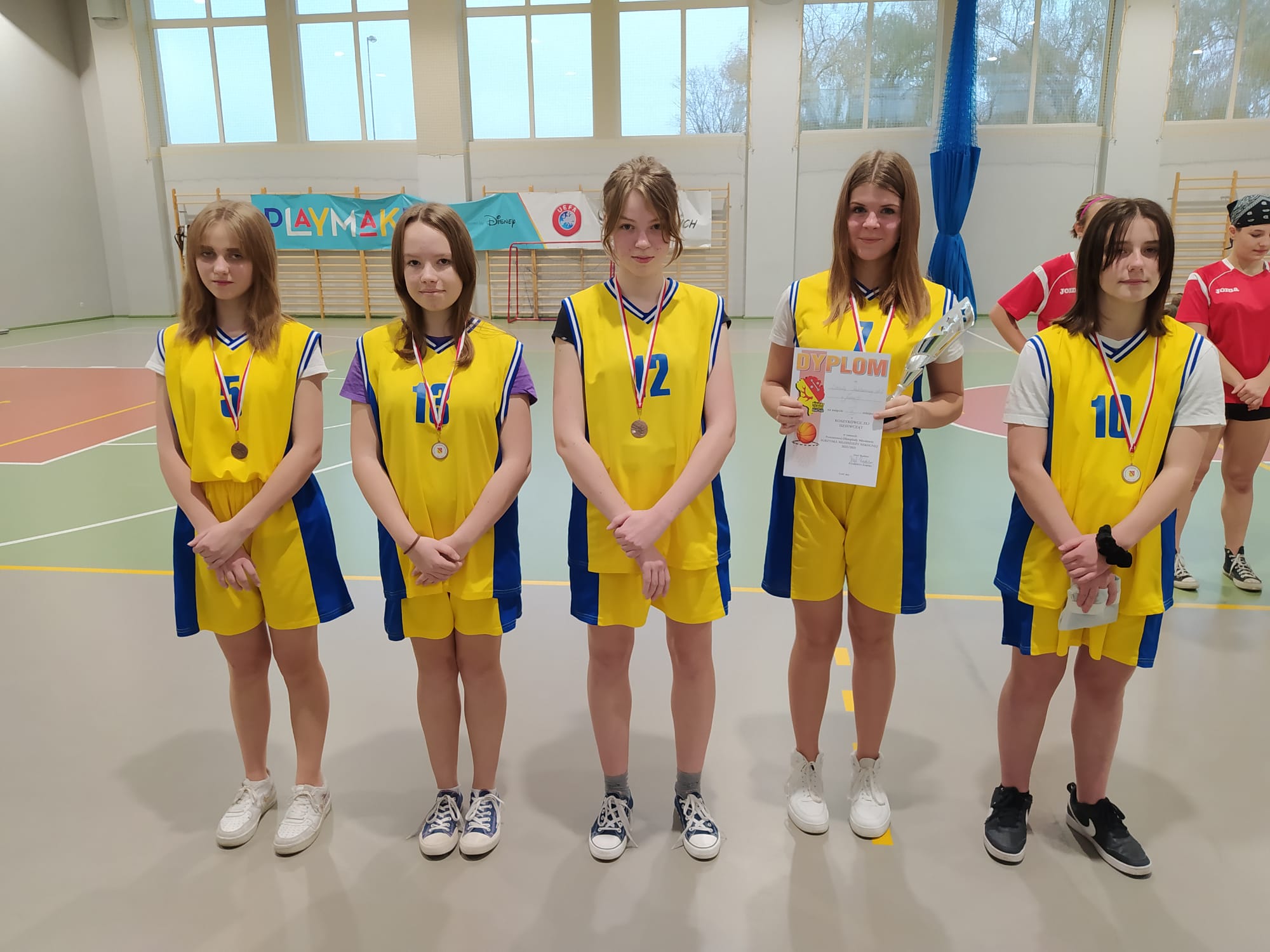 Tym razem nasze dziewczęta zdobyły brązowe medale Powiatowej Olimpiady Młodzieży w koszykówce 3×3 w kategorii Igrzyska Młodzieży. Reprezentowały nas: Iwona Żebrowska, Martyna Jarczewska, Amelia Klimczak, Aleksandra Kamińska i Nikola Czertarska.