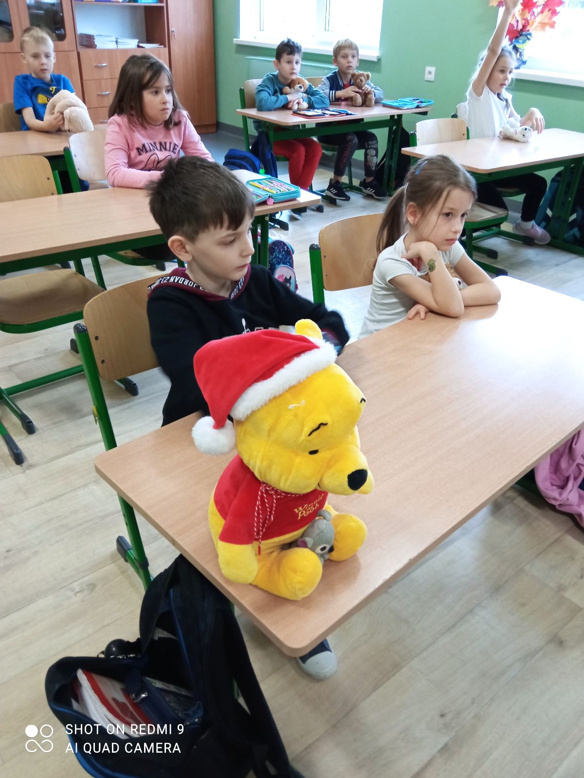 W dniach 24-25 listopada odbyły się w klasach I zajęcia z okazji Dnia Pluszowego Misia. Zajęcia poprowadziły Wioletta Suchan i Izabela Pajdowska. Uczestnicy dowiedzieli się ciekawostek o historii pluszowego misia. Następnie wysłuchali fragmentu książki „Kubuś Puchatek”. Dzieci rozwiązywały zagadki i rozpoznawały na ilustracjach inne misie – bohaterów bajek. Zajęcia urozmaiciła zabawa ruchowa połączona ze śpiewaniem piosenki, rysowanie i kolorowanie misiów oraz mini konkurs „ na wesoło” z pytaniami dotyczącymi różnych niedźwiedzi. Podczas zajęć dzieciom towarzyszyły ich pluszowe misie przyniesione z domu. Impreza odbyła się w związku z realizacją Narodowego Programu Rozwoju Czytelnictwa 2.0 na lata 2021-2025.