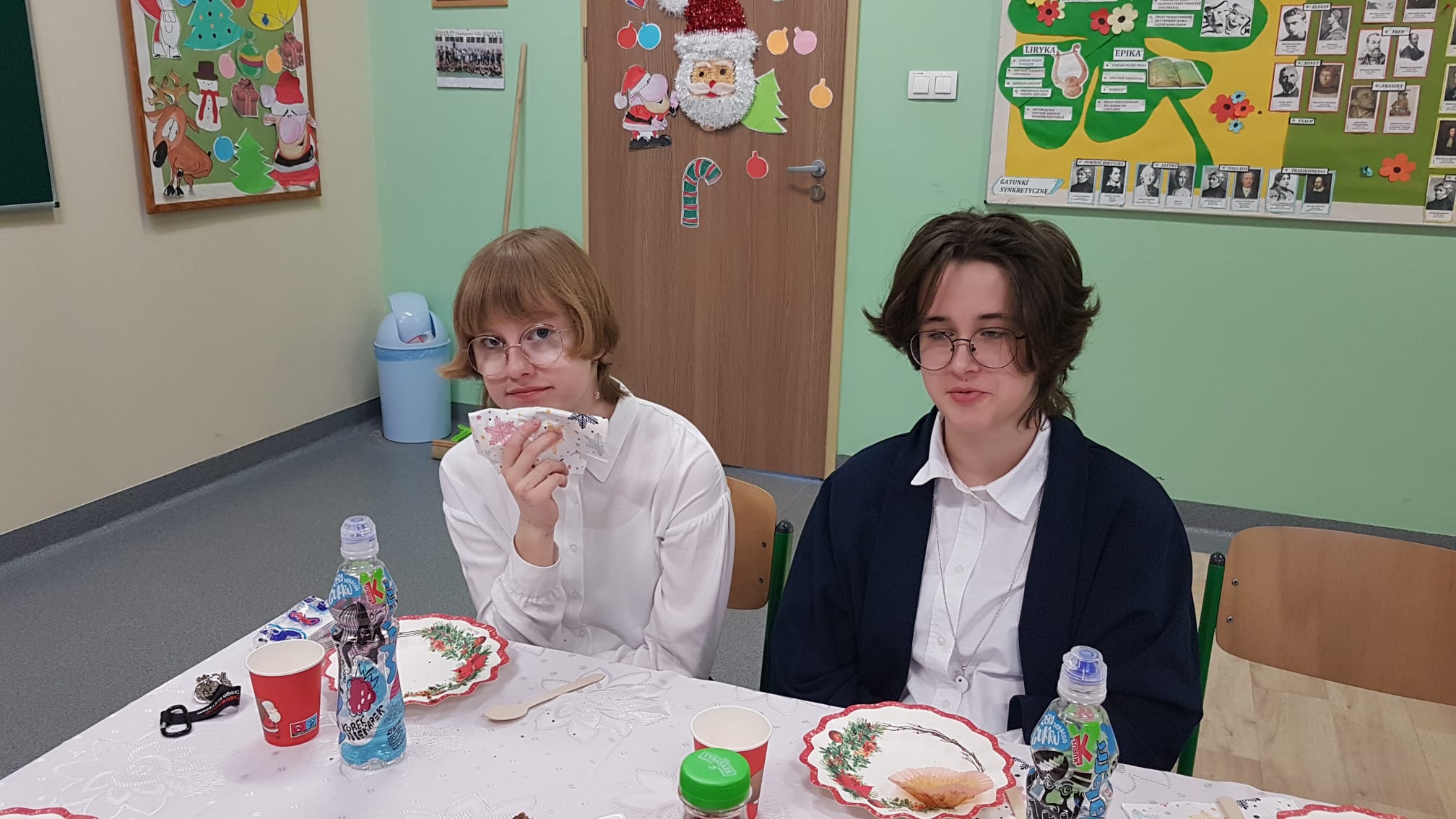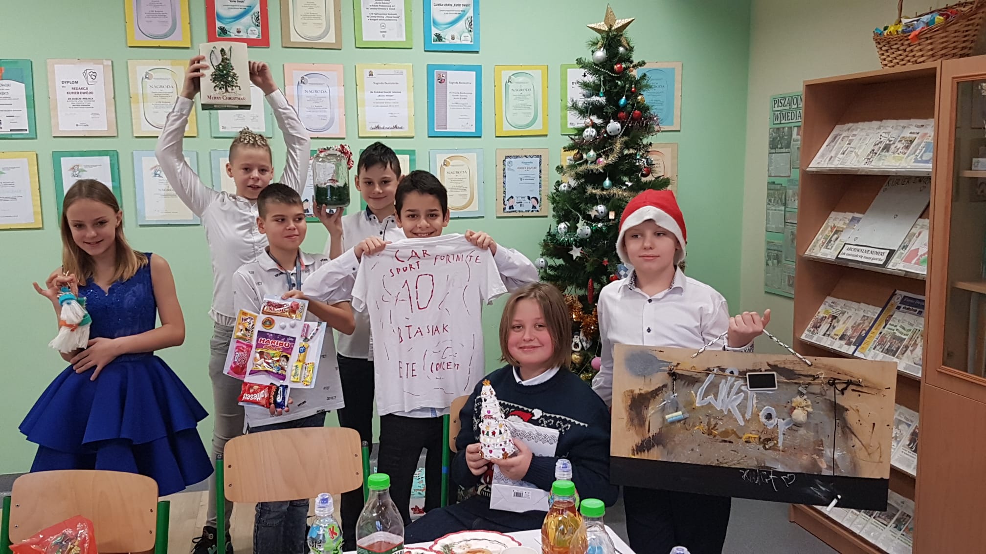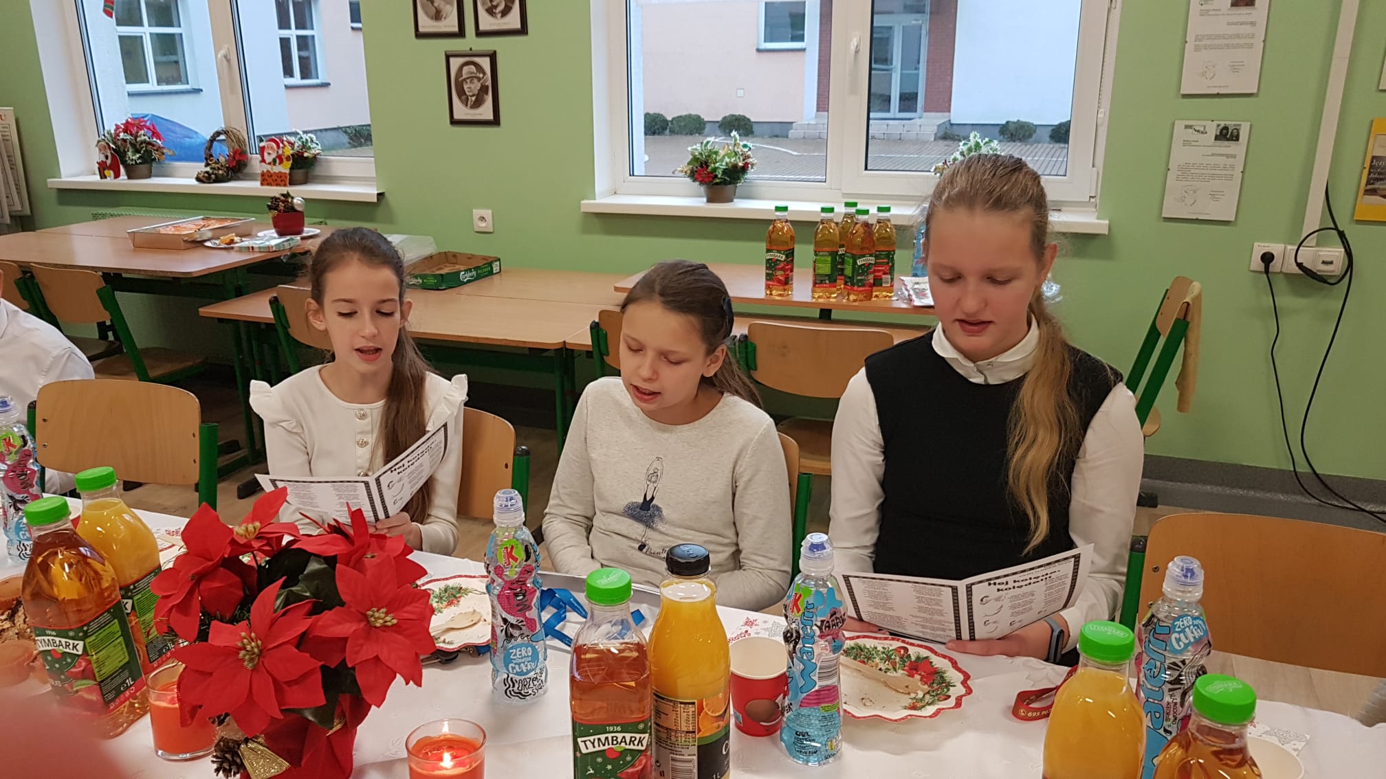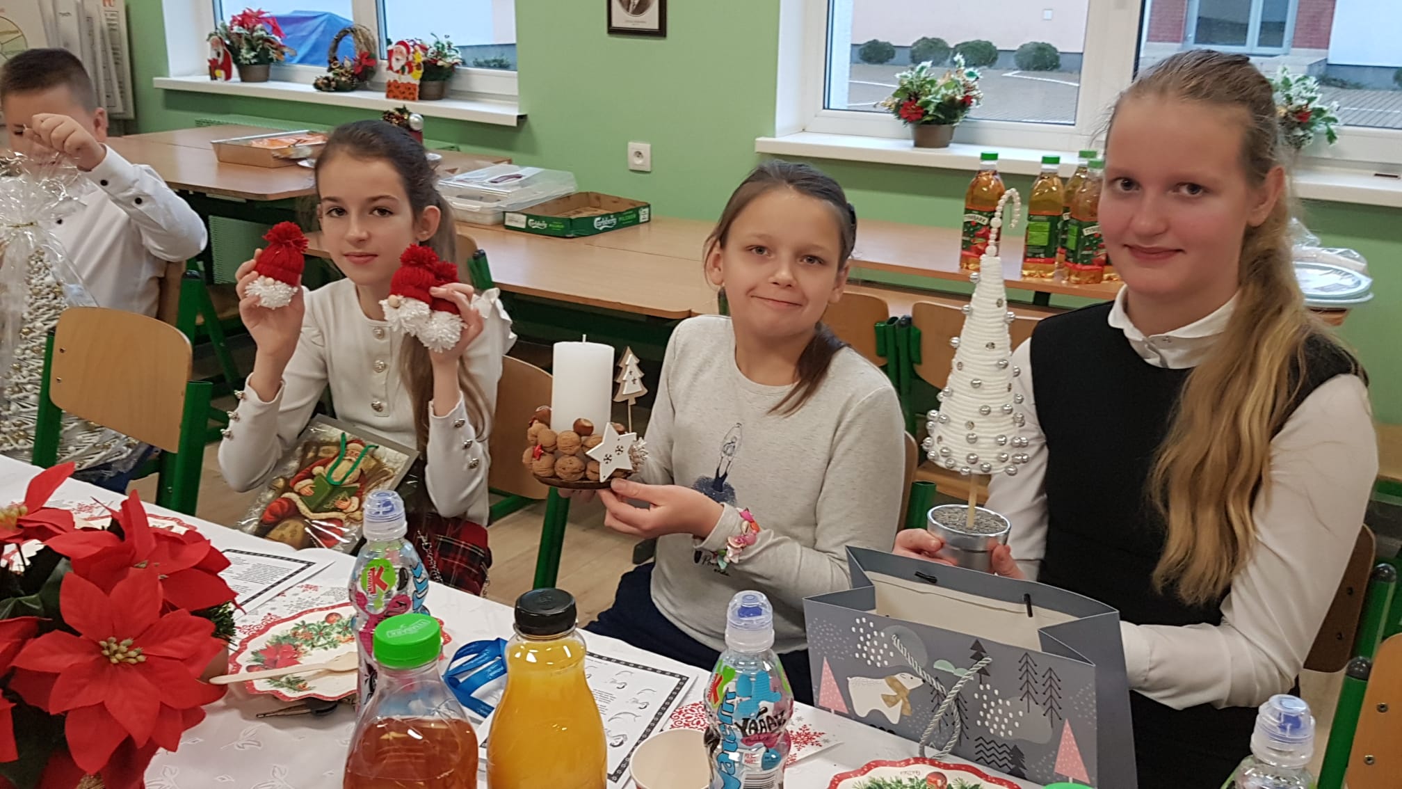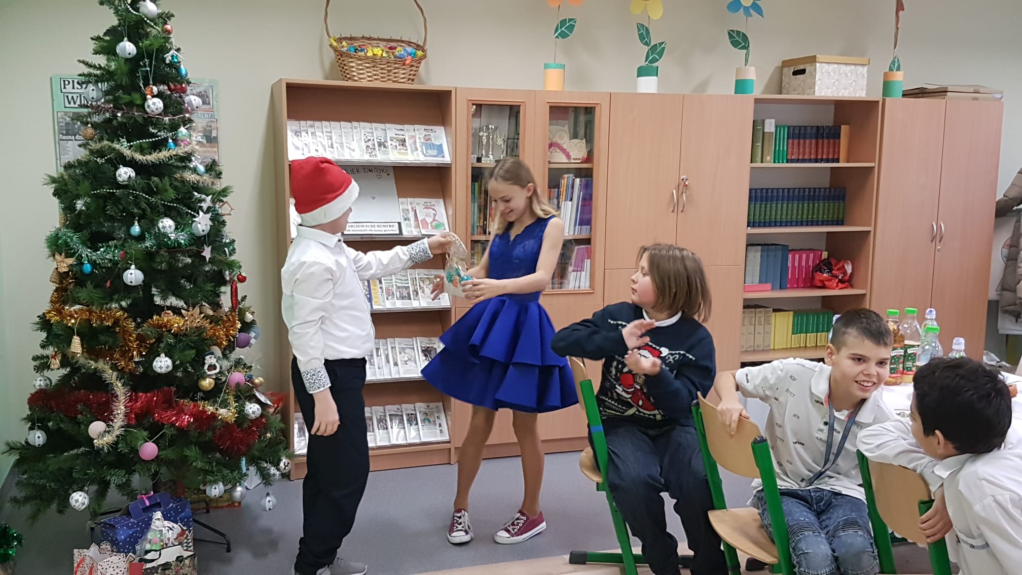 22 grudnia w klasie 6b odbyła się wigilia klasowa. Pięknie udekorowany stół, choinka, świąteczna muzyka wprowadziła wszystkich w podniosły nastrój. Uroczystość rozpoczęła się od dzielenia się opłatkiem i złożenia sobie świątecznych życzeń. Następnie uczniowie zasiedli przy wspólnym stole i zajadali słodkości przygotowane przez rodziców. Był też czas na wspólne śpiewanie kolęd i prezenty, które szóstoklasiści przygotowywali sobie własnoręcznie. Upominki były niezwykle kreatywne i wszystkim się podobały. Uczniowie tego dnia przygotowali również urodzinową niespodziankę dla wychowawczyni. Jakież było zdziwienie i ogromne zaskoczenie pani, gdy nagle weszli do klasy z prezentem, śpiewając „Sto lat! Sto lat!”. Widząc swoich wspaniałych i kochanych podopiecznych, pani Jola wzruszyła się ze szczęścia. Spotkanie upłynęło w bardzo miłej i rodzinnej atmosferze.