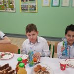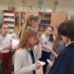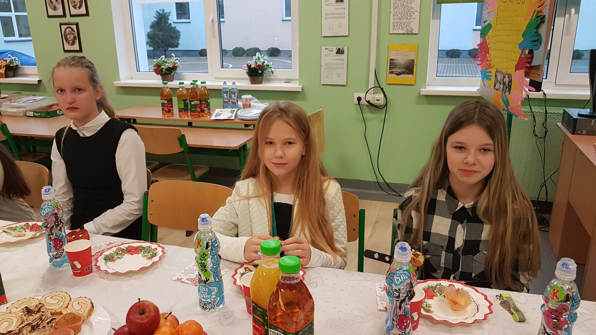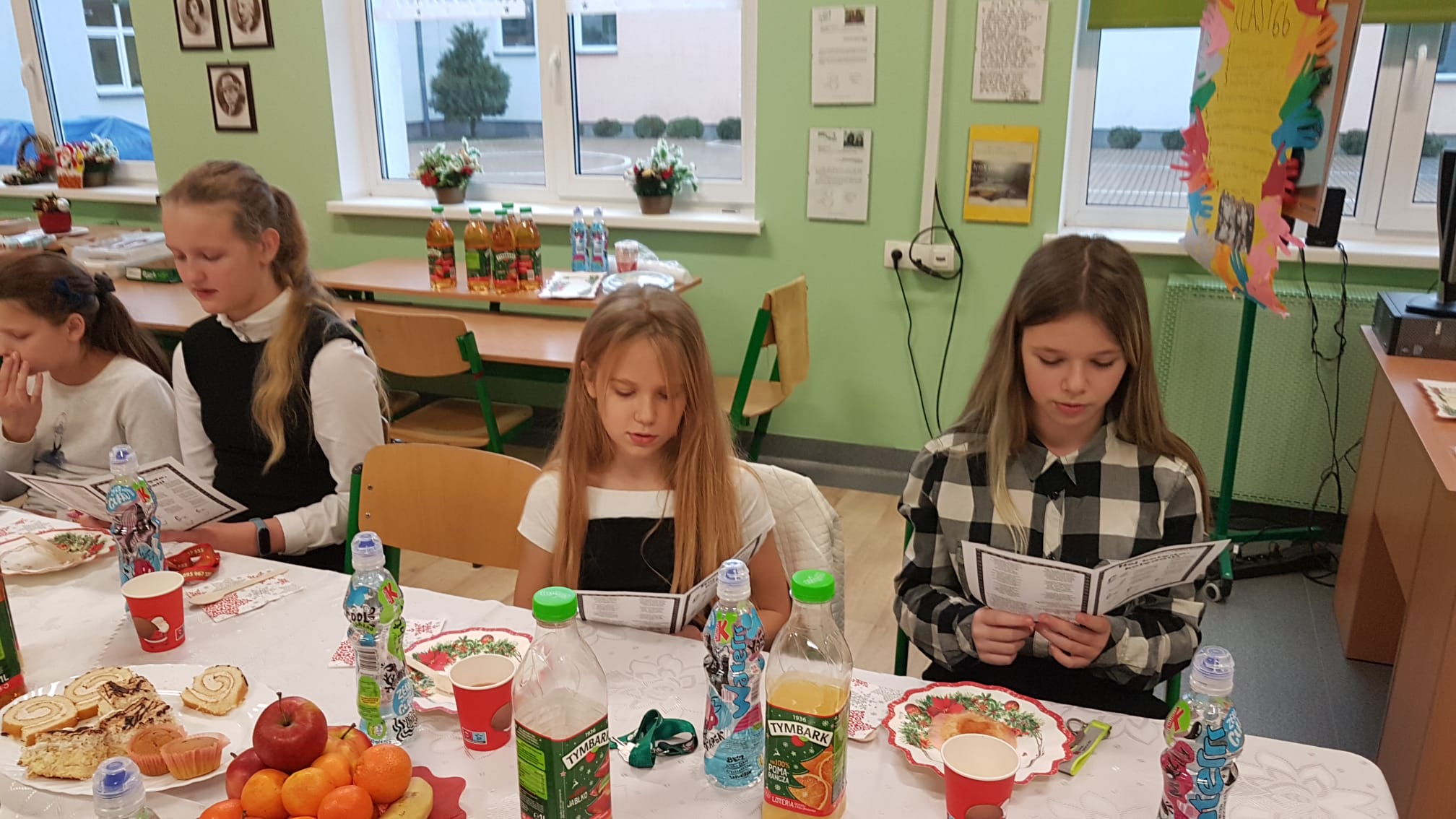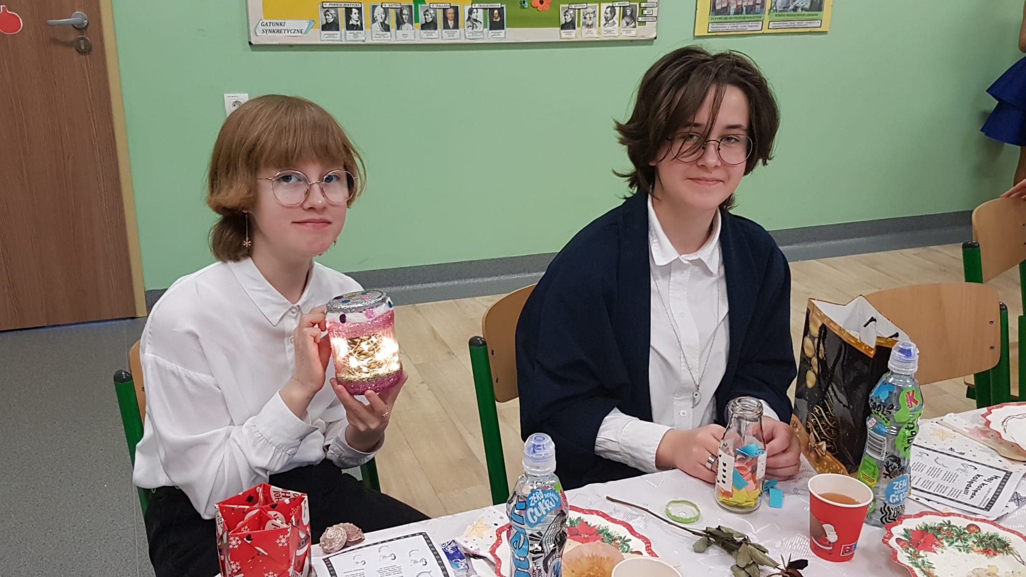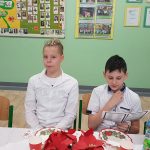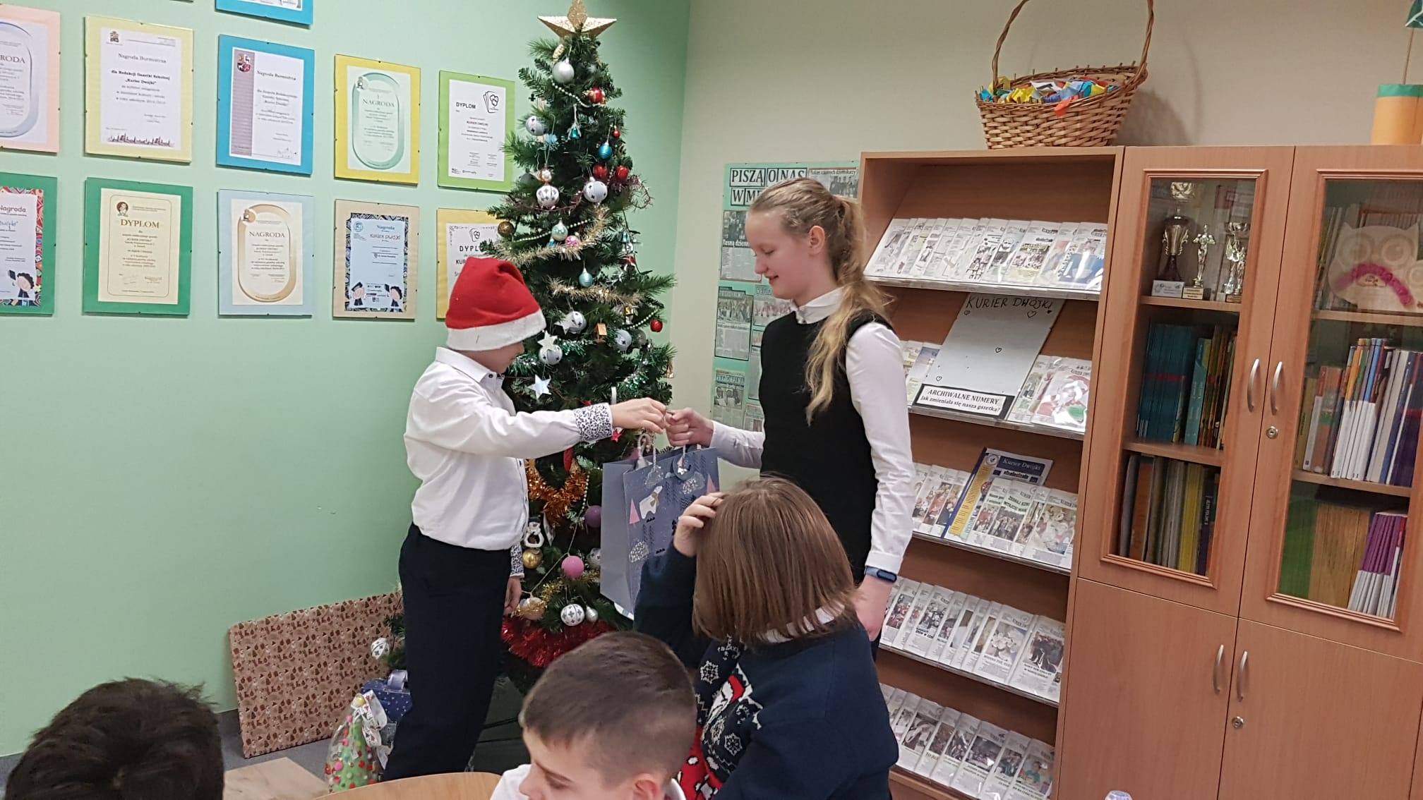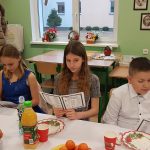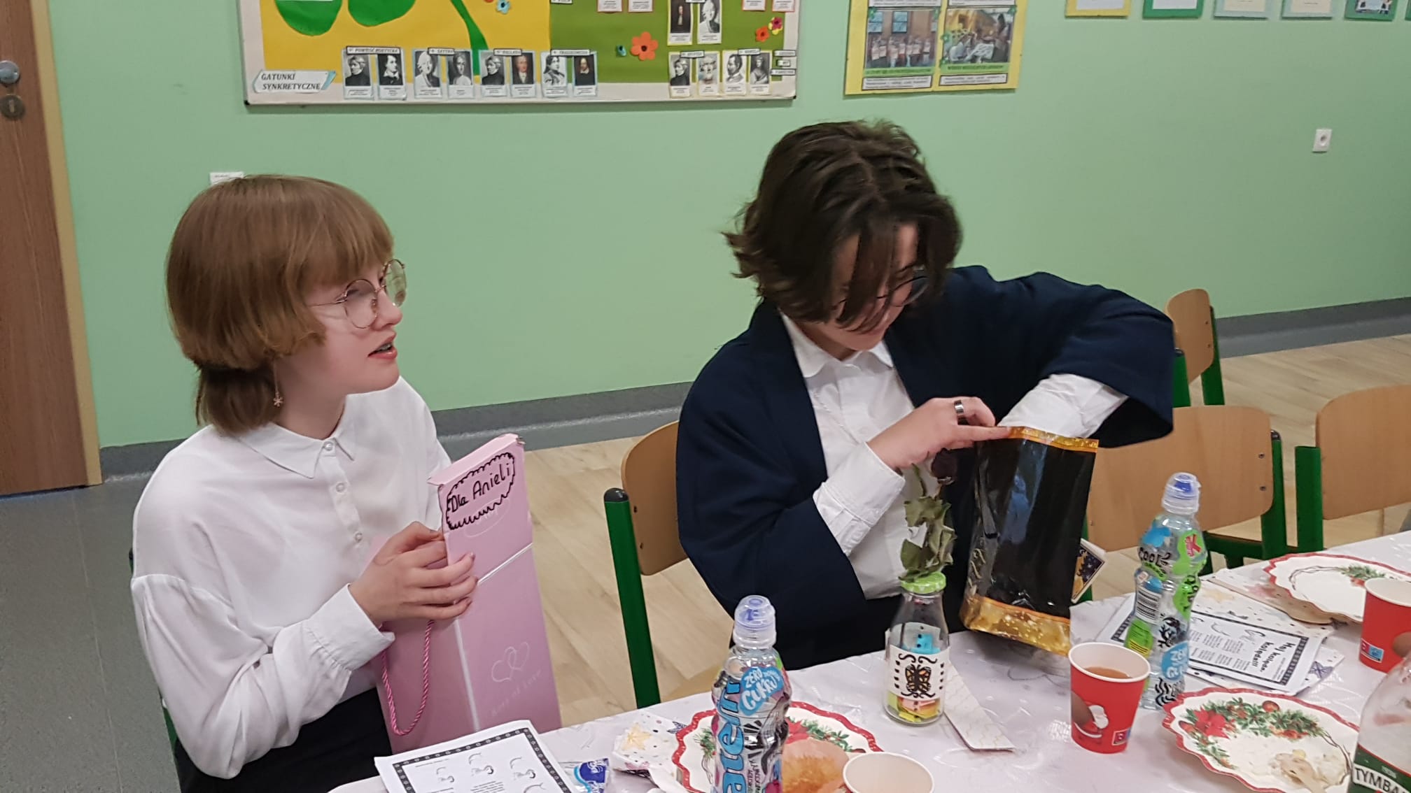 22 grudnia w klasie 6b odbyła się wigilia klasowa. Pięknie udekorowany stół, choinka, świąteczna muzyka wprowadziła wszystkich w podniosły nastrój. Uroczystość rozpoczęła się od dzielenia się opłatkiem i złożenia sobie świątecznych życzeń. Następnie uczniowie zasiedli przy wspólnym stole i zajadali słodkości przygotowane przez rodziców. Był też czas na wspólne śpiewanie kolęd i prezenty, które szóstoklasiści przygotowywali sobie własnoręcznie. Upominki były niezwykle kreatywne i wszystkim się podobały. Uczniowie tego dnia przygotowali również urodzinową niespodziankę dla wychowawczyni. Jakież było zdziwienie i ogromne zaskoczenie pani, gdy nagle weszli do klasy z prezentem, śpiewając „Sto lat! Sto lat!”. Widząc swoich wspaniałych i kochanych podopiecznych, pani Jola wzruszyła się ze szczęścia. Spotkanie upłynęło w bardzo miłej i rodzinnej atmosferze.