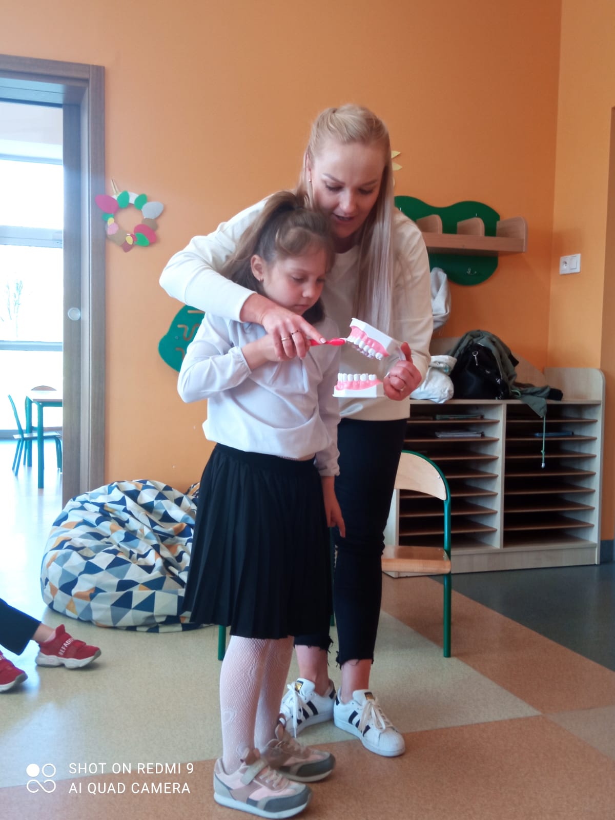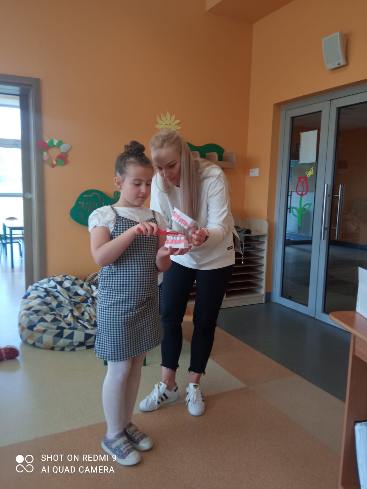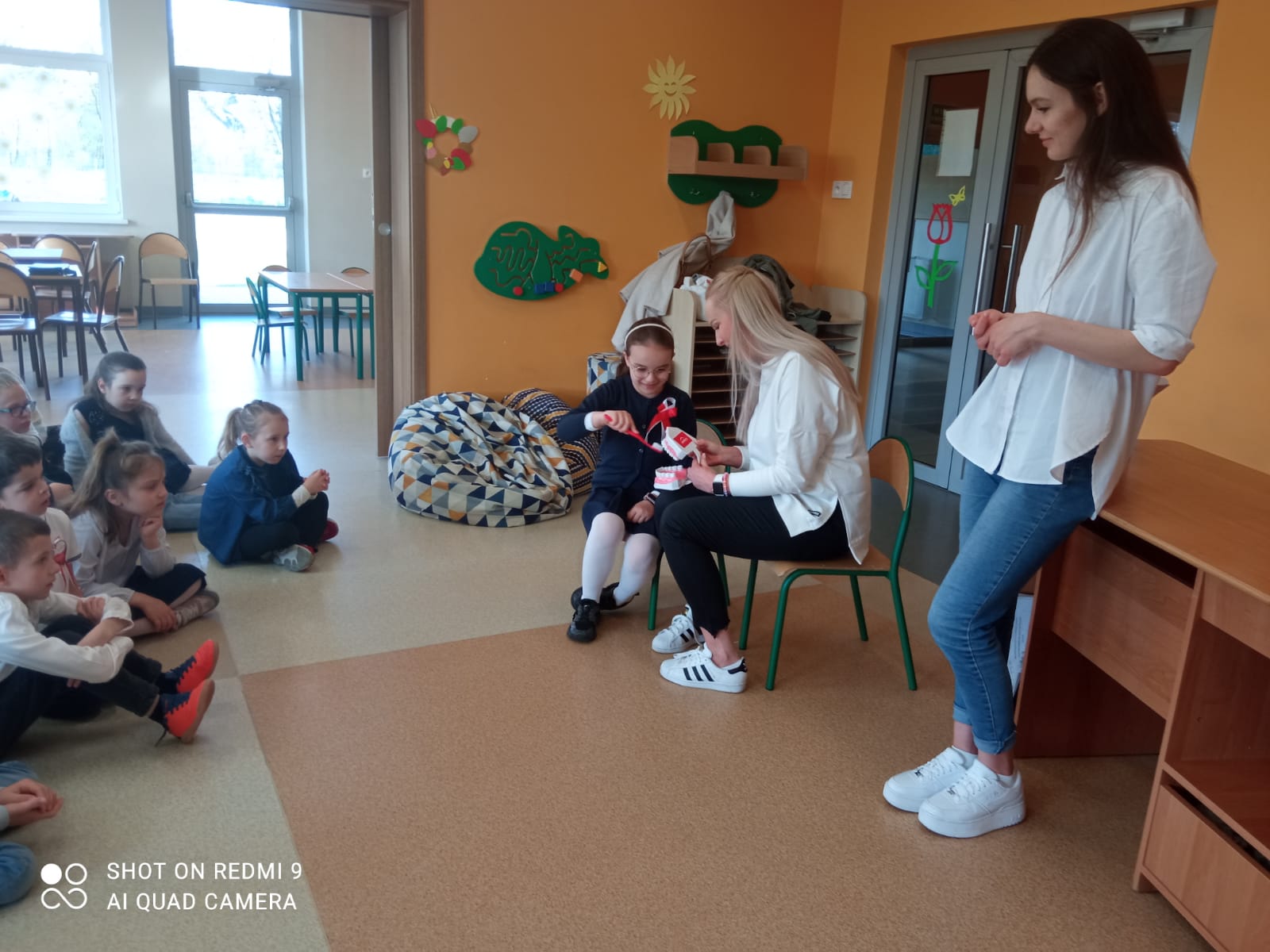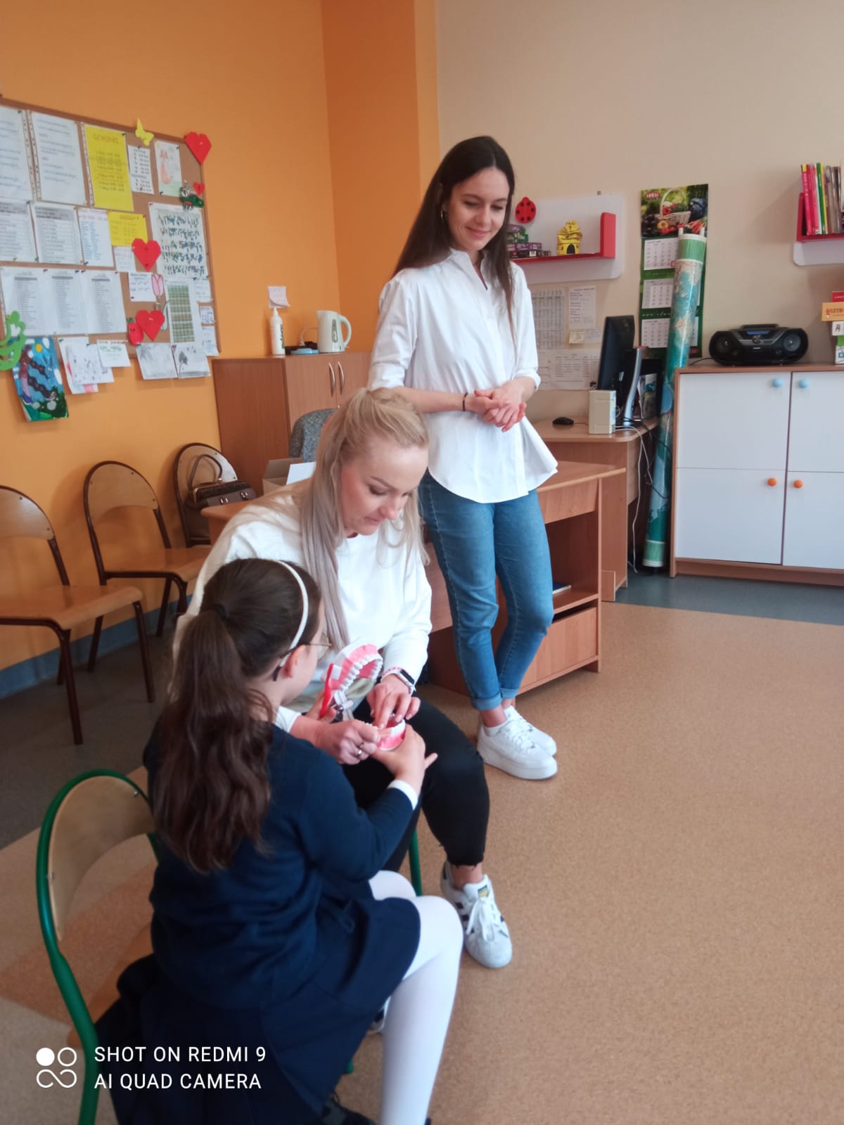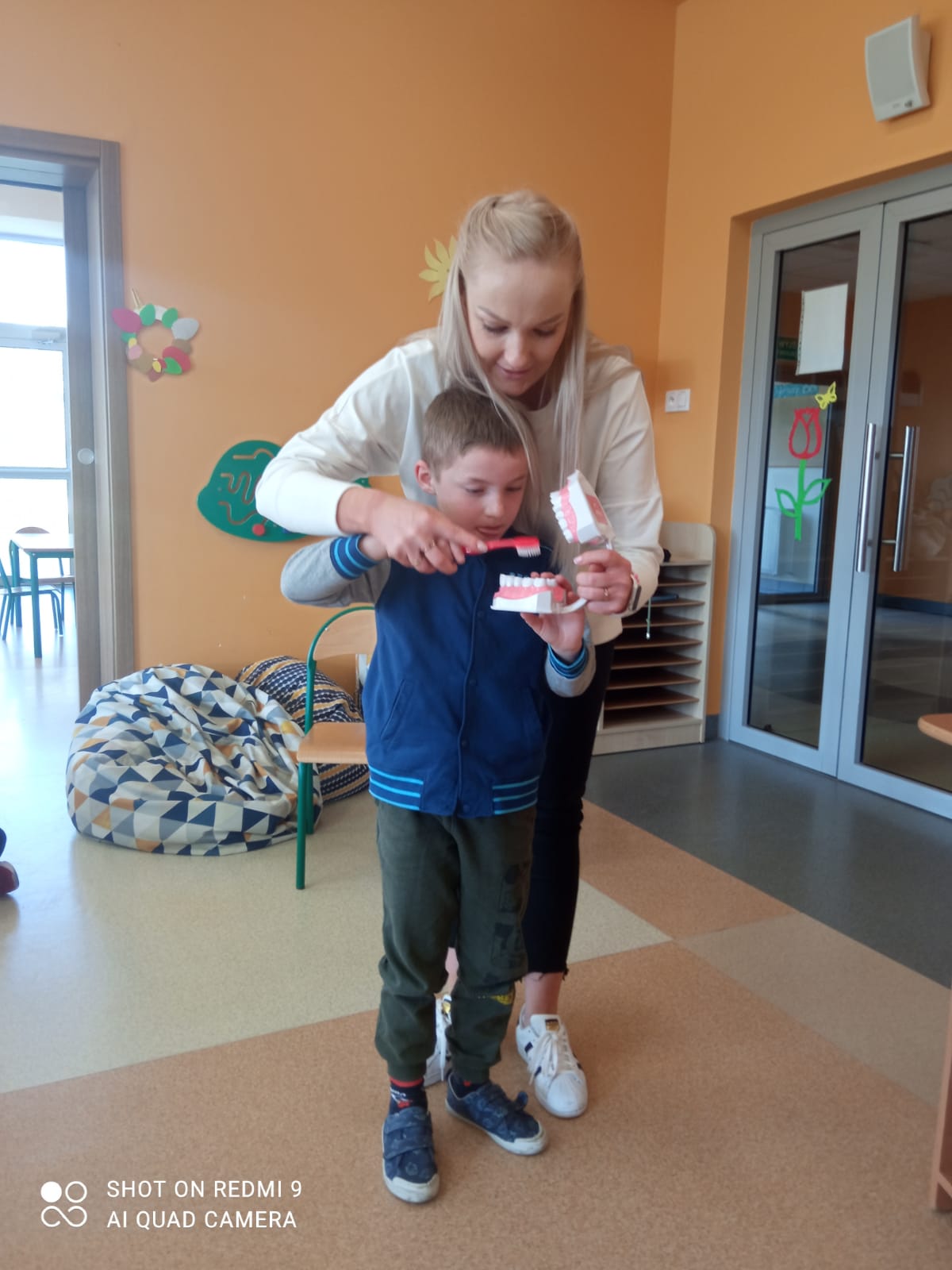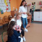 W piątek 28 kwietnia odbyło się w świetlicy szkolnej spotkanie ze stomatologiem, Panią Martą Bieńkowską i higienistką Panią Małgorzata Ferdynus. Głównym celem spotkania było uświadomienie uczniom konieczności dbania o higienę jamy ustnej oraz zmniejszenie lęku przed wizytą w gabinecie stomatologicznym. Dzieci z zaciekawieniem wysłuchały pogadanki na temat higieny jamy ustnej. Dowiedziały się, co to jest próchnica, dlaczego psują się zęby oraz jak należy prawidłowo je czyścić. Atrakcją były również ćwiczenia na modelu sztucznej szczęki. Pani dentystka przypomniała o konieczności właściwego odżywiania się oraz o potrzebie wizyt kontrolnych u stomatologa. Ważne jest spożywanie warzyw, owoców, produktów mlecznych, które są zdrowe dla zębów, a także unikanie słodyczy, które powodują próchnicę. Na zakończenie dzieci serdecznie podziękowały Paniom za wizytę.