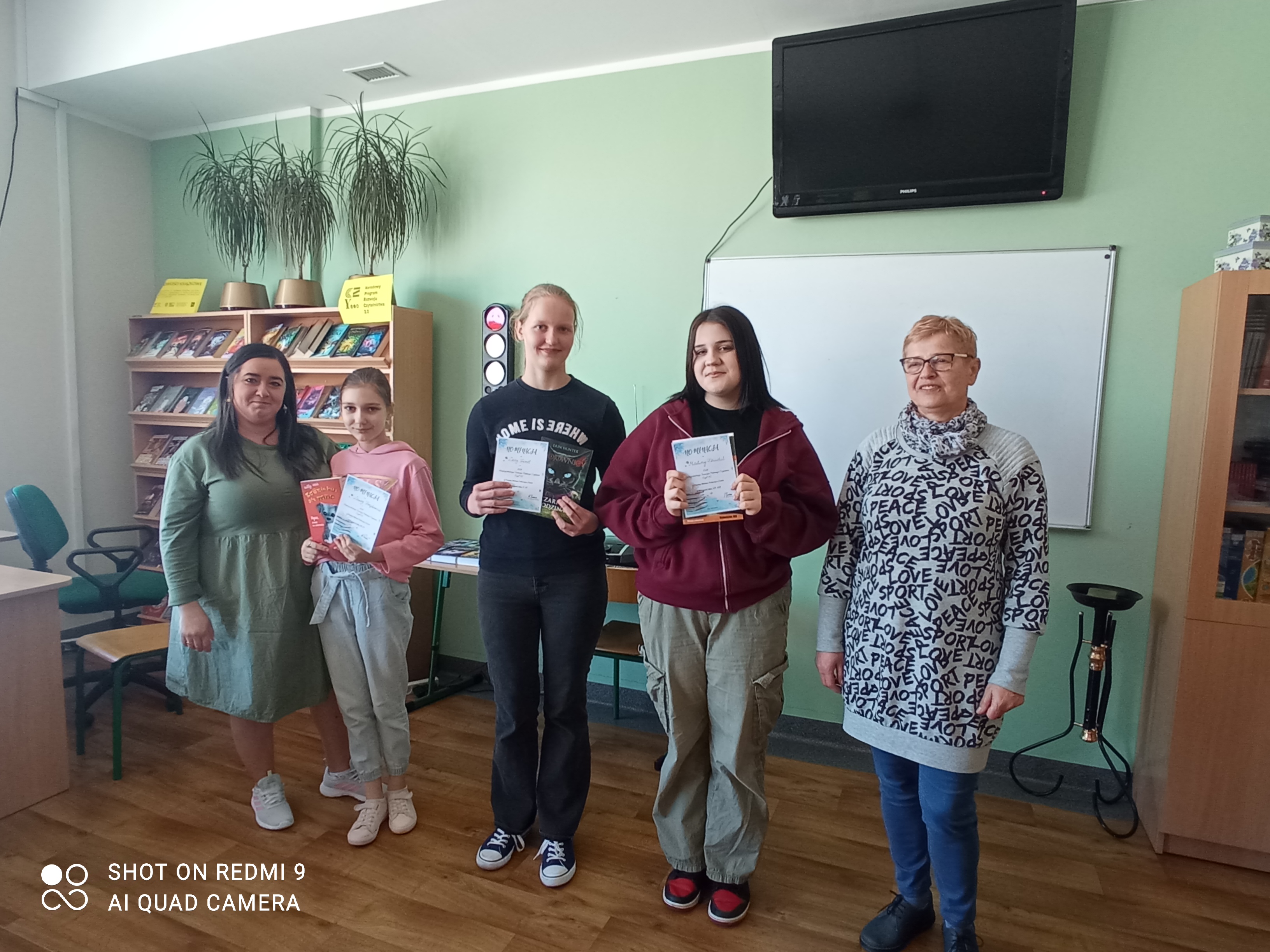 9 maja odbył się w bibliotece Szkolny Turniej Pięknego Czytania. Pierwszy etap polegał na przeczytaniu wybranego samodzielnie tekstu, przygotowanego przez ucznia przed eliminacjami. W drugim etapie zakwalifikowani uczestnicy otrzymali od organizatorów do przeczytania nieznany fragment prozy. Nominacje do Międzyszkolnego Turnieju Pięknego Czytania, który odbędzie się 26 maja w Miejskiej Bibliotece Publicznej w Żarach otrzymali: w kategorii klas III-IV – Laura Frąckowiak z klasy IIIa, w kategorii klas V-VI – Lena Feret z VIb, w kategorii klas VII-VIII – Malina Dziadul z VIIIa. Nagrody sfinansowano ze środków Ministra Kultury i Dziedzictwa Narodowego w ramach realizacji Narodowego Programu Rozwoju Czytelnictwa 2.0 na lata 2021-2025.