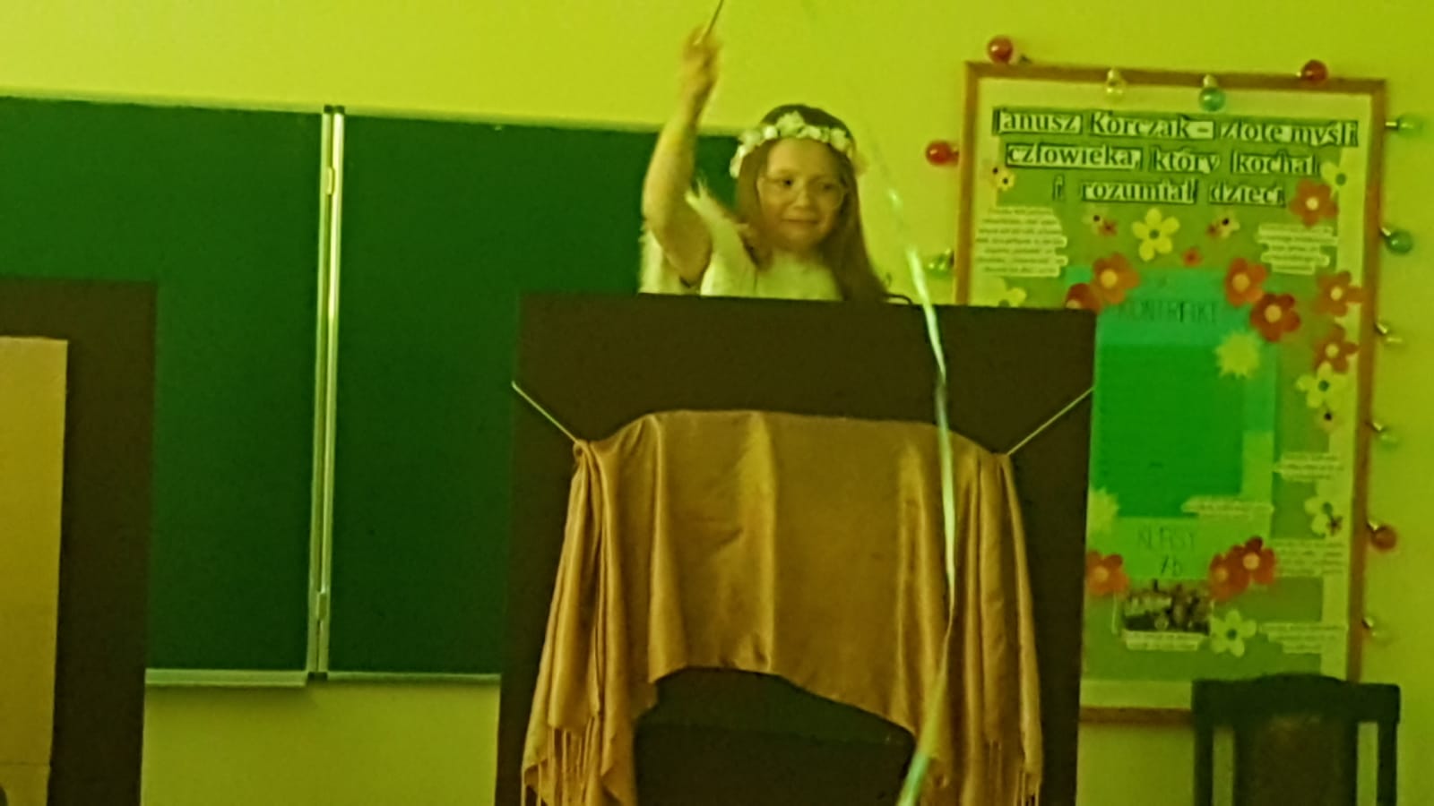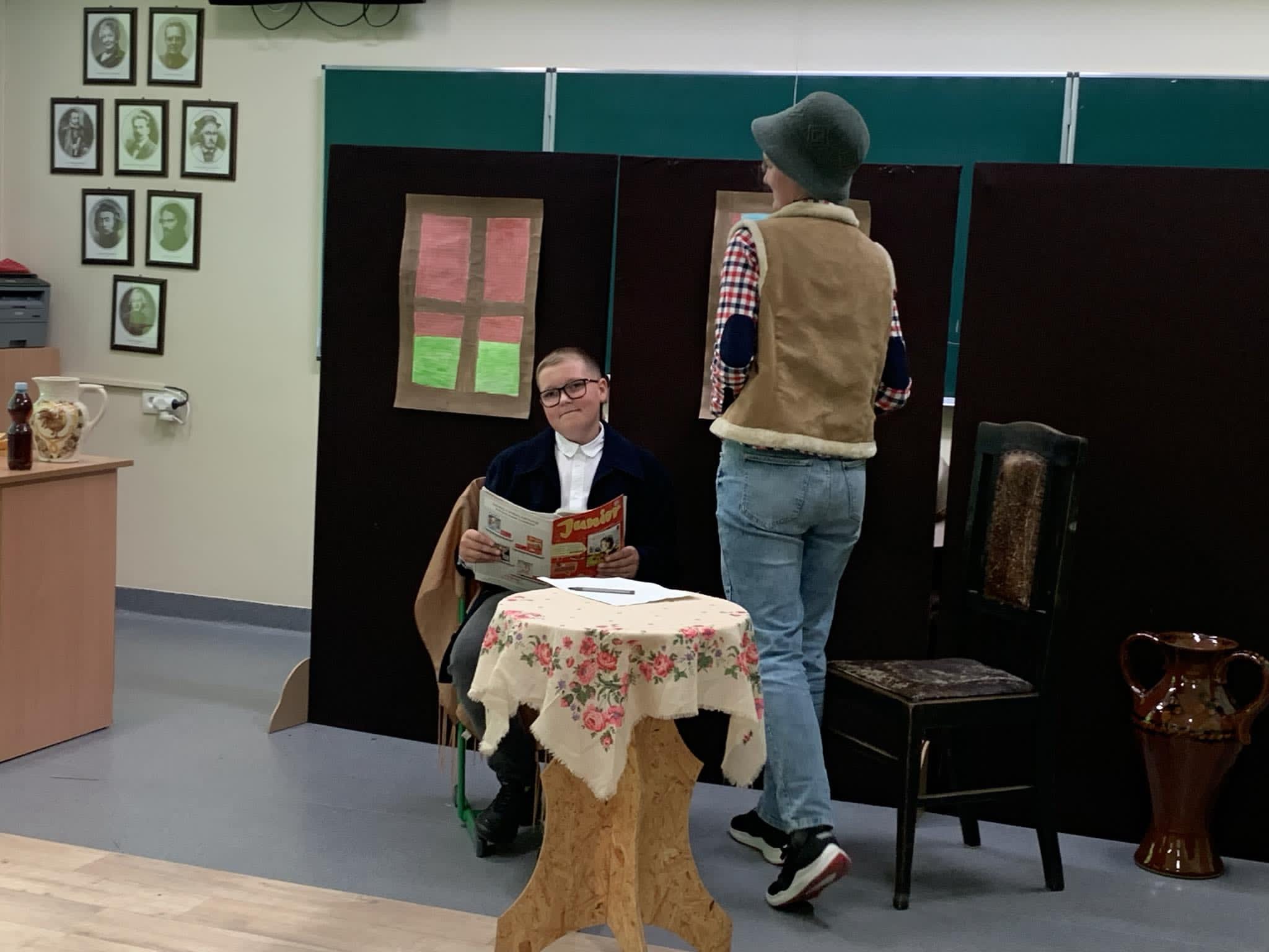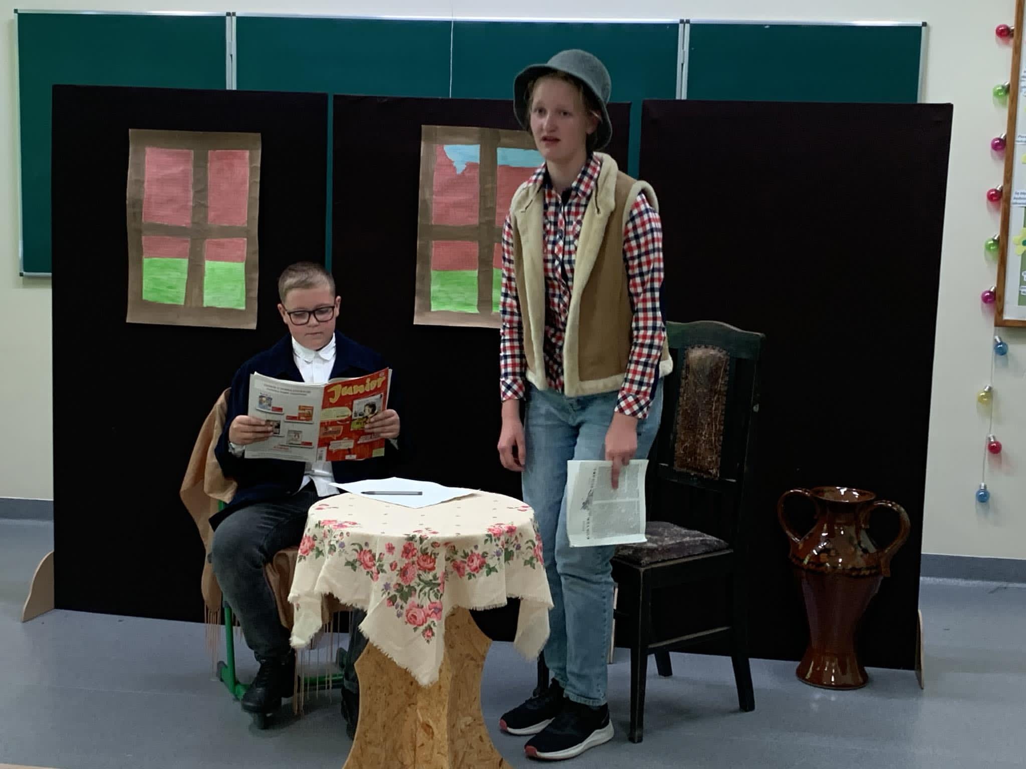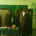 Uczniowie klasy 7b na lekcji języka polskiego próbowali swoich sił aktorskich. Wystawiali przedstawienia teatralne na podstawie lektur szkolnych: „Zemsta”, „Balladyna”, „Dziady cz.II”. Siódmoklasiści podzieleni na zespoły przygotowywali się do zaprezentowania swoich sztuk kilka tygodni. Podeszli do zadania bardzo odpowiedzialnie: zadbali o stosowne stroje, przygotowali rekwizyty, scenografię, muzykę, oświetlenie. Efekt był zaskakujący. 12 czerwca gabinet 42 zamienił się w prawdziwą salę teatralną. Młodzi aktorzy w barwny i oryginalny sposób ukazali tradycję odprawiania dziadów. Skłonili oglądających do refleksji dotyczących władzy, ambicji, przemyśleń na temat relacji międzyludzkich na podstawie losów Balladyny. Na koniec wywołali śmiech oglądających, prezentując zabawne historie z życia bohaterów „Zemsty”. Zaangażowanie uczniów klasy w przygotowanie inscenizacji było świetną okazją do integracji zespołu klasowego. Taka metoda lekcji języka polskiego to świetna forma zapamiętywania treści lektur szkolnych.