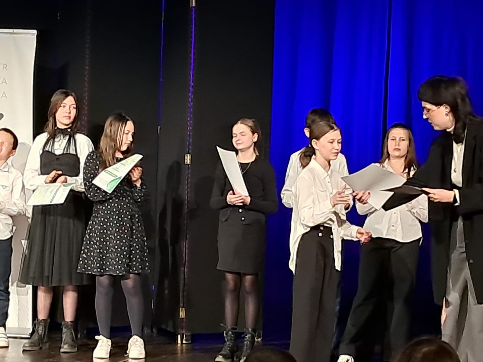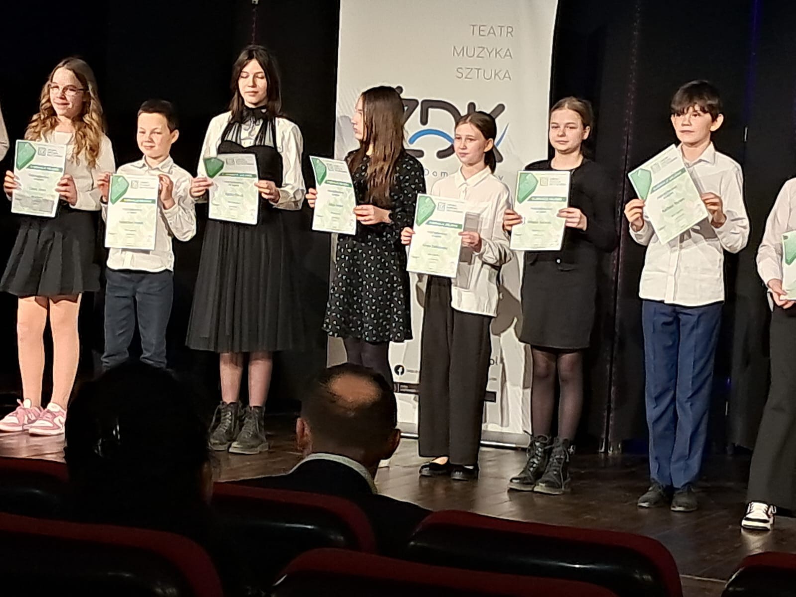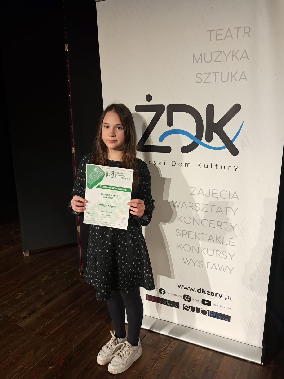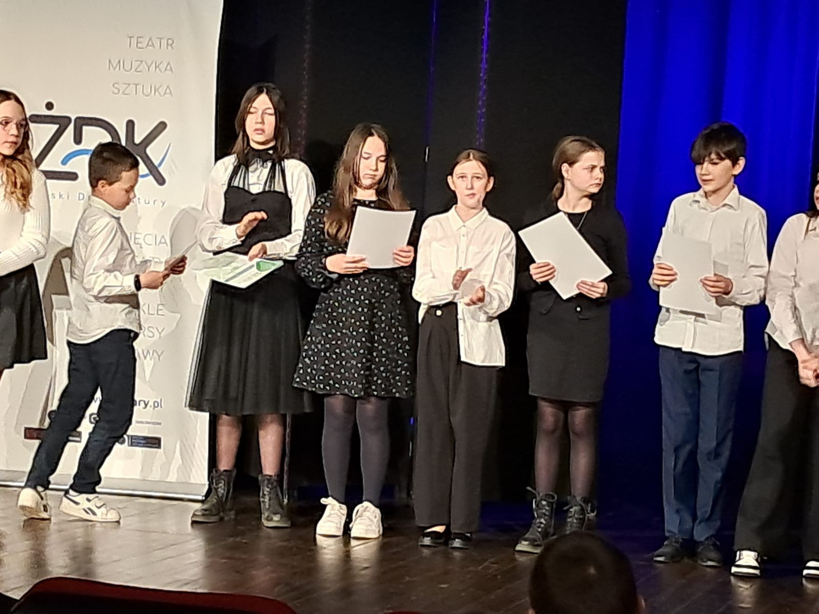 7 marca to kolejny dzień zmagań recytatorów na eliminacjach miejskich Lubuskiego Konkursu Recytatorskiego. Tym razem przedstawiciele klas IV-VI stanęli na scenie żarskiej Luny. Były to: Alicja Kogut, Kinga Dalkowska, Helena Mikoś oraz Nikola Suśniak. Wszystkie dziewczęta zaprezentowały się bardzo dobrze, a Helena Mikoś uzyskała tytuł laureata i weźmie udział w eliminacjach powiatowych. Gratulujemy.