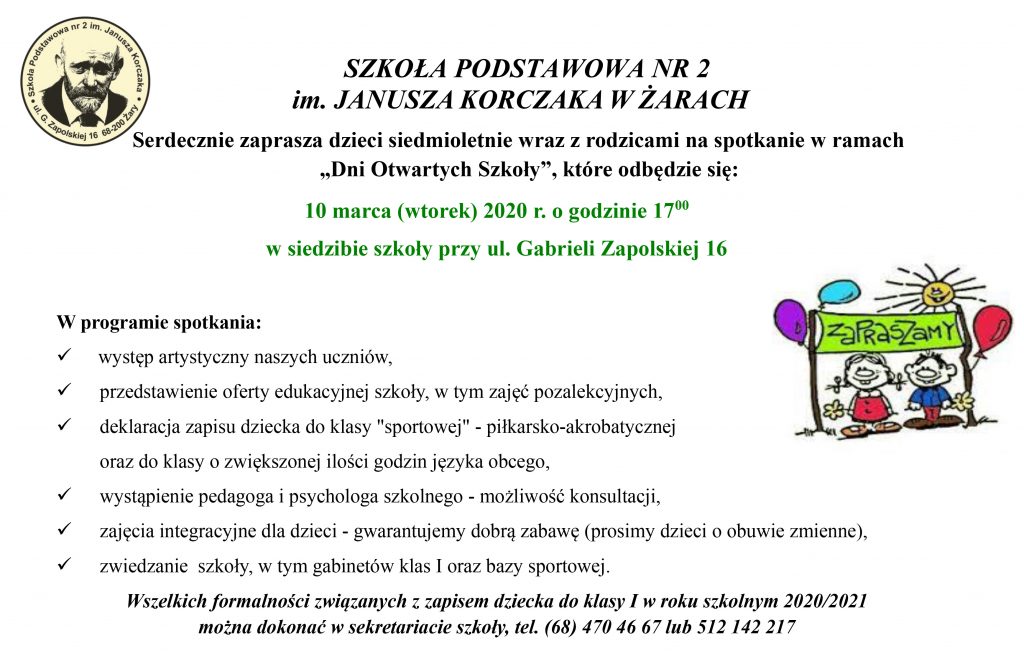 Lista dzieci przyjętych do klasy I do Szkoły Podstawowej nr 2 w Żarach na rok szkolny 2020/2021