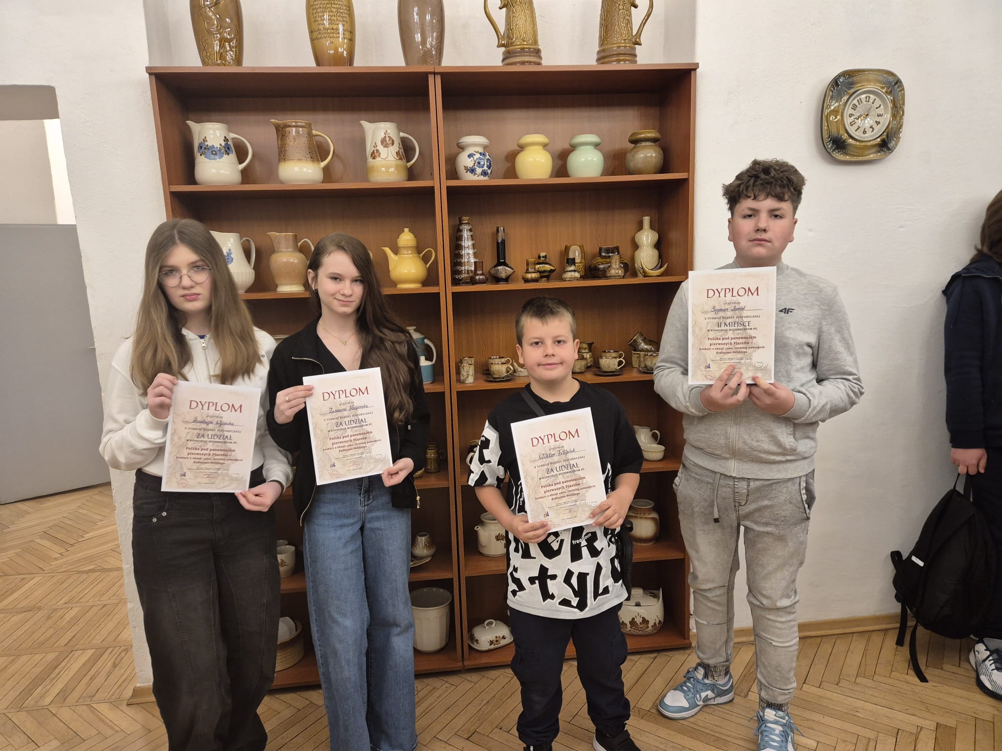25.04.2024r. uczniowie SP2 z Żar kolejny raz ( ostatni w tym roku szkolnym)wzięli udział w IX Turnieju Wiedzy Historycznej organizowanym przez Muzeum Pogranicza Śląsko-Łużyckiego. Szymon Zaród z kl. 7b, Patrycja Buganik z kl. 6b, Maksymilian Drozdowski z kl.5b oraz Zuzanna Kacperska z kl. 6a pisali test pt. „Kultura i sztuka II Rzeczpospolitej „. Nasi uczestnicy po nierozstrzygniętej dogrywce zajęli ex aequo 3 miejsce. Uczestnikom konkursu życzymy sukcesów.