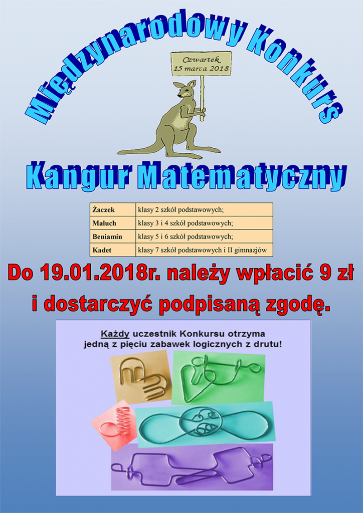 12 marca obchodzimy w naszej szkole Ogólnopolski Dzień Matematyki. W tym dniu uczniowie klas młodszych będą na lekcjach przygotowywać plakaty pt.” Matematyka na wesoło” lub ” Liczba Pi na wesoło”. Podczas dużej przerwy zachęcamy do udziału w łamigłówkach matematycznych w gabinecie 129. W tym dniu uczniowie posiadający przypięty do ubrania kolorowy napis „MATEMATYKA” są zwolnieni z pytania na lekcjach matematyki.