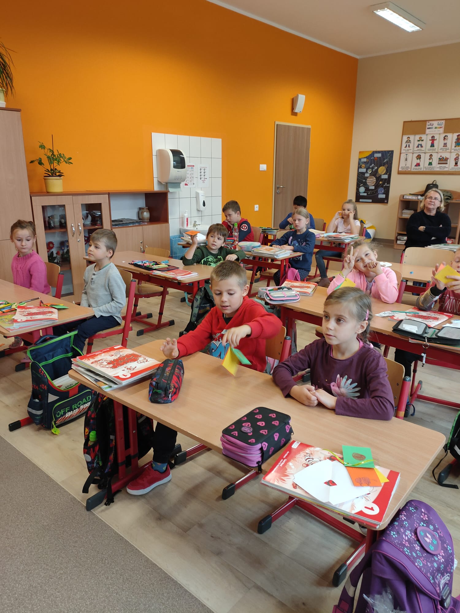 W środę klasa I a kontynuowała tematykę zdrowego odżywiania i wzięła aktywny udział w zajęciach przeprowadzonych przez policję w ramach programu Lupo. Dzieci bardzo dużo dowiedziały się o bezpieczeństwie uczestników ruchu drogowego, przećwiczyły bezpieczne przechodzenie przez jezdnię, rozmawiały także o zagrożeniach jakie może nieść Internet i o cyberprzemocy, a także o bezpieczeństwie w kontaktach z obcymi. Na zakończenie zajęć dzieci otrzymały elementy odblaskowe.