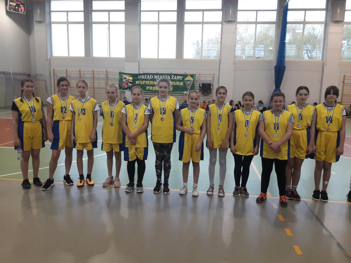 25.11 w naszej szkole odbyły się zawody w koszykówce dziewcząt w ramach Żarskich Igrzysk Młodzieży Szkolnej. W rozgrywkach wystartowały reprezentacje SP nr 1, SP nr 2, SP nr 5 i SP nr 8. Nasze dziewczęta nie dały szans przeciwniczkom wygrywając wszystkie mecze, zajęły I miejsce i zdobyły złote medale. Wywalczyły awans do zawodów powiatowych, które również odbędą się w naszej szkole 11.12.2019.